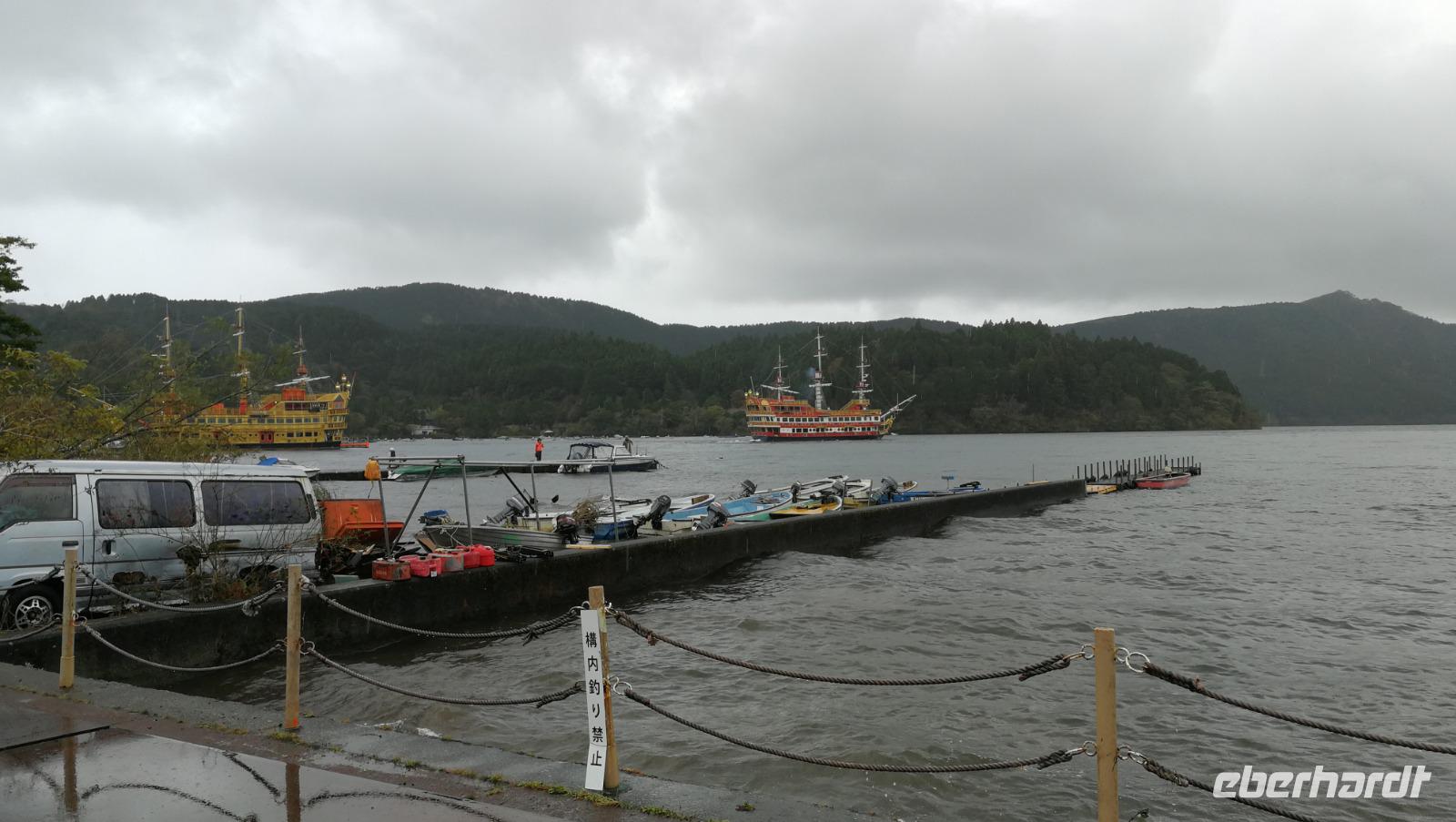 Wir tauchen heute nochmals weiter ein in Japans alte Geschichte und besuchen Nara. Bereits im 8. Jahrhundert fungierte Nara bereits als erste richtige Hauptstadt Japans, bevor es diesen Titel an das nahe gelegene Kyoto verlor. In der Stadt finden sich jedoch heute noch die Zeugen der Machtposition sodass ein Besuch der Anlagen zu einem Besuch in Japan dazu gehört. Erster Halt ist der Todaiji - der größte Holzbau der Welt, der zugleich die weltweit größte Buddha Statue aus Bronze beherbergt. Um den Bau zu erreichen bahnen wir uns unseren Weg durch die hier ebenfalls vertretenen zahmen Rehe, die sich auf der ganzen Anlage frei bewegen können und sich von den Besuchern streicheln und füttern lassen. Nachdem wir das beeindruckende Süd-Tor aus dem 12. Jahrhundert durchschritten haben eröffnet sich uns allmählich der Blick auf den riesigen Bau und wir bestaunen beim betreten des Tempels die riesige Buddha Statue die sich erhaben über die Gläubigen erhebt. Neben dem buddhistischen Tempel befindet sich auch ein Schintoistisches Heiligtum unweit der Tempelanlage welches wir danach besuchen gehen. Nach einem kleinen Spaziergang durch einen künstlich angelegten Kiefernwald - stets begleitet durch die Rehe - kommen wir schließlich zum Eingangstor des Schreins. Viele alte Steinlaternen zeugen von großzügigen Spenden der japanischen Bevölkerung die sich auf diesem Weg die Gunst der Götter erkaufen wollten. Heute bieten sie uns einen vorzüglichen Anblick während wir hinauf zum Schrein schlendern und das wie immer beim Schintoismus wichtige Zusammenspiel von Architektur und Natur bewundern. Hier begegnen uns auch kleine Kinder in traditionellen Kimonos gekleidet - auf Nachfrage erklärt uns Angelika, dass hier das „drei, fünf, sieben" Fest gefeiert wird. Mädchen und Jungen werden an ihrem 3., 5., und 7. Geburtstag in traditioneller Kleidung zum Tempel begleitet, wo Sie für eine gute Zukunft beten und von den Bediensteten des Tempels kleine Geschenke erhalten. Nach einer kleinen Pause erreichen wir wieder den Bahnhof und fahren zurück nach Kyoto, wo wir in den Shinkansen nach Odawara steigen. Dort am Fuße des Berges Fuji im Hakone Nationalpark begrüßen wir wieder unseren steten Begleiter den japanischen Regen, von dem wir uns nicht unterkriegen lassen. Außerdem endet unsere Tagestour und wir erreichen das Hotel mit Blick auf die Sagami-Bucht, den wir am nächsten morgen bei Sonnenaufgang richtig genießen können.
