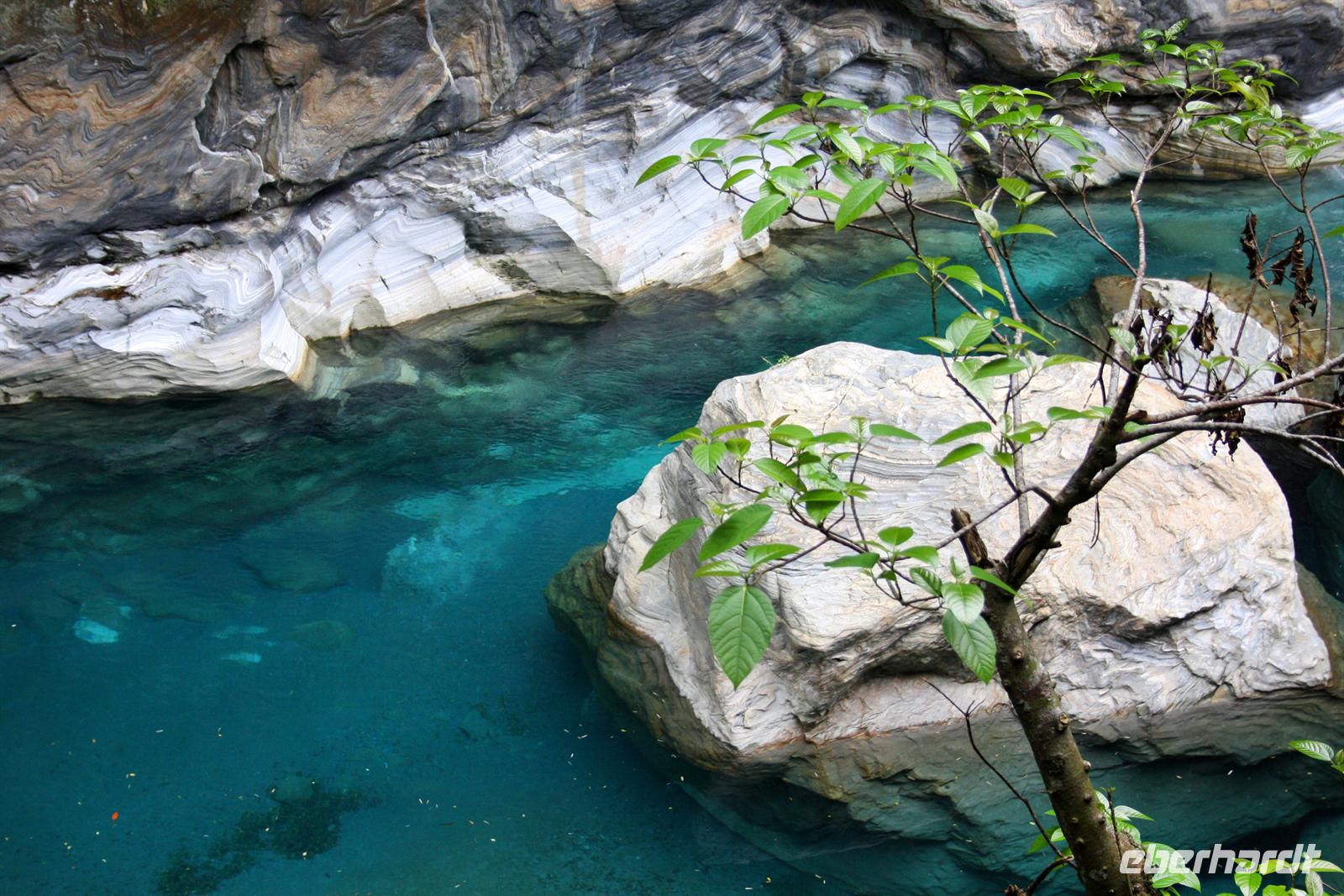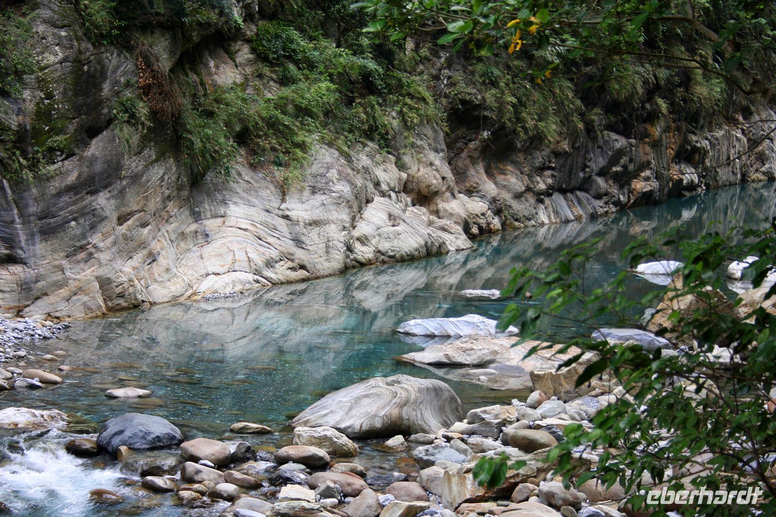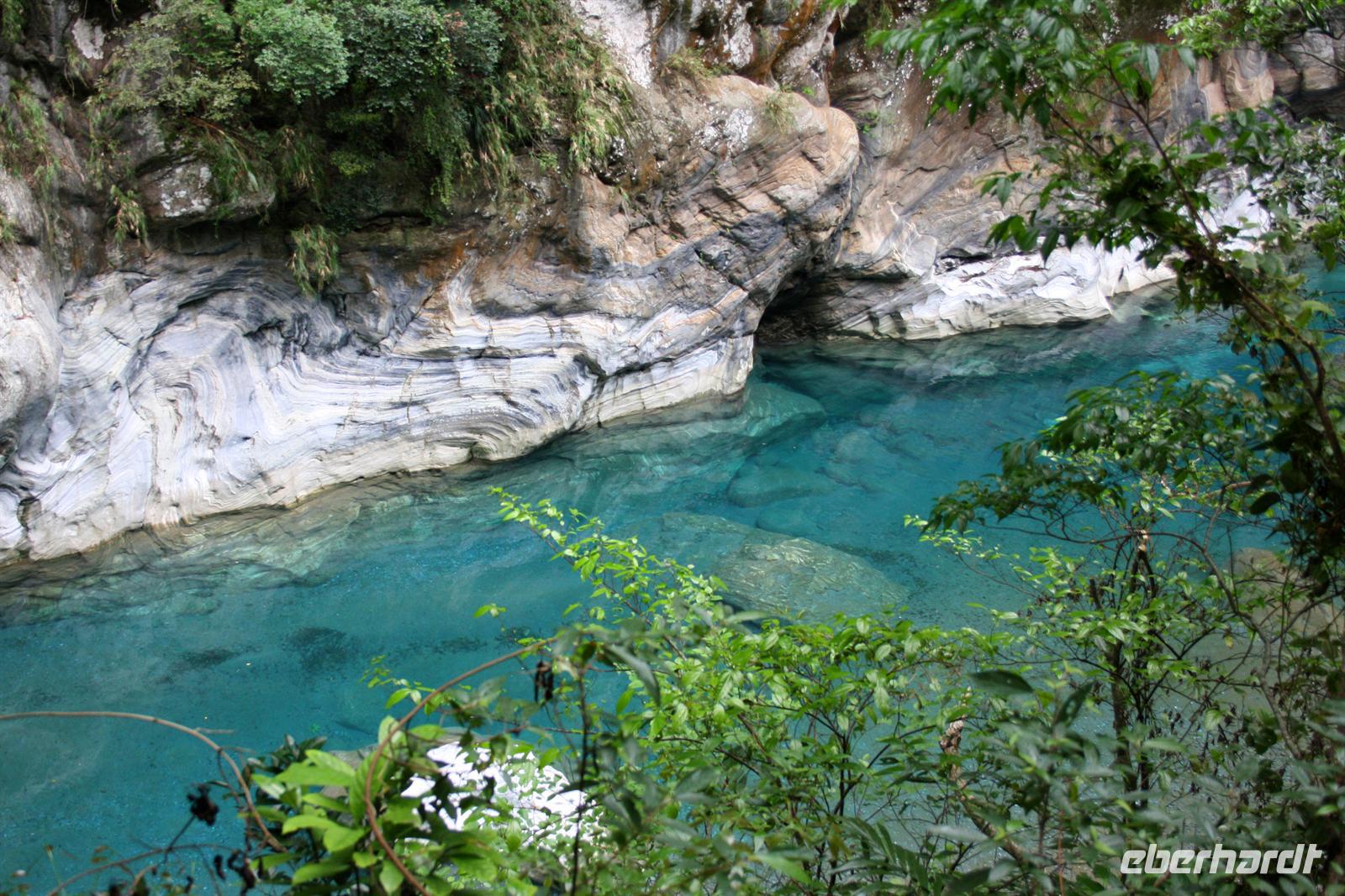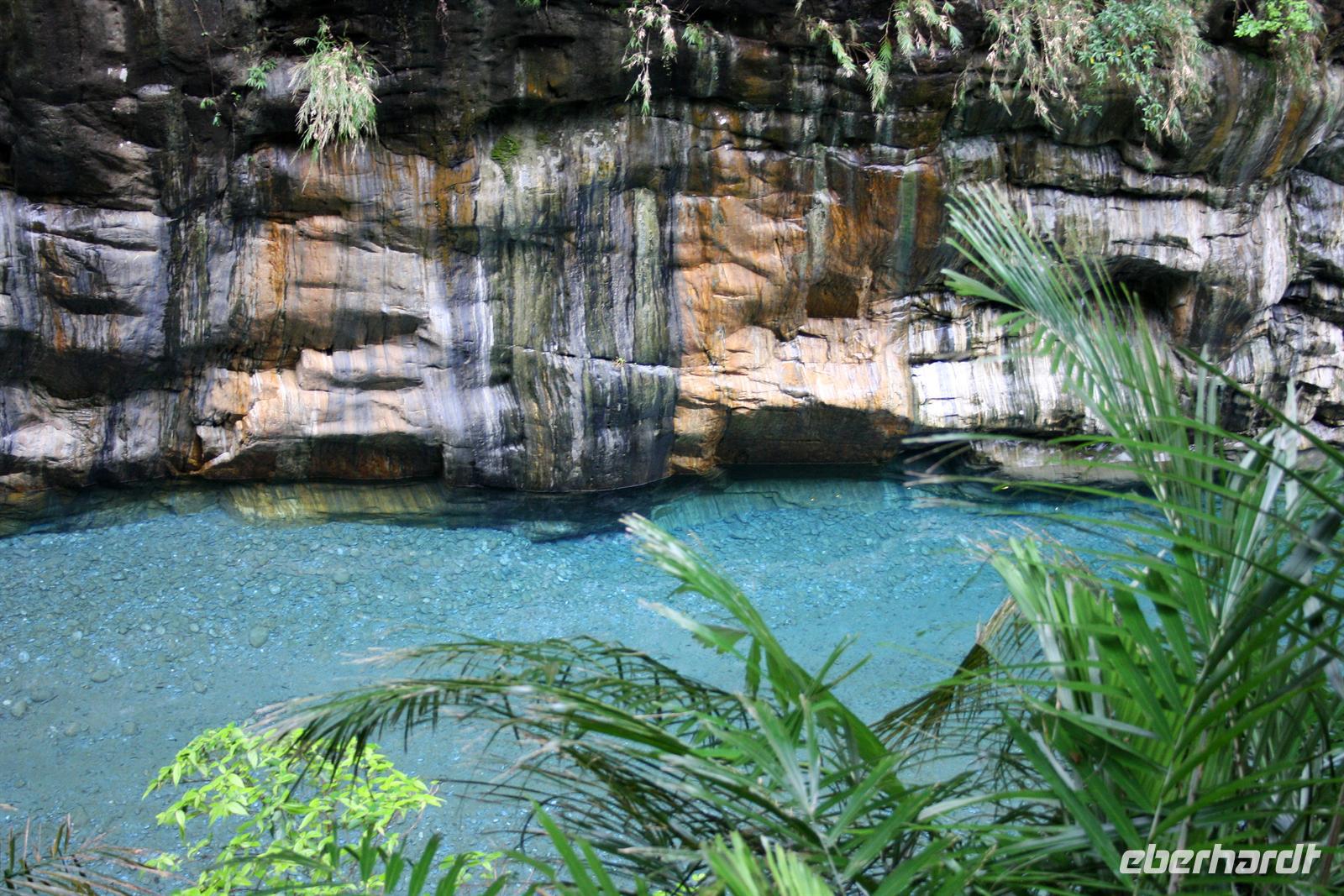 Danach besuchten wir die Schwalbengrotte, den Tunnel der Neun Kurven und den Schrein des Ewigen Frühlings. In der Shakdang-Schlucht gingen wir etwas länger spazieren, um die tollen Farben der Gesteine und des Wassers zu entdecken. Nach einem Strandbesuch flogen wir vom provinziellen Flughafen in Hualin im kleinen Flieger zurück nach Taipei.