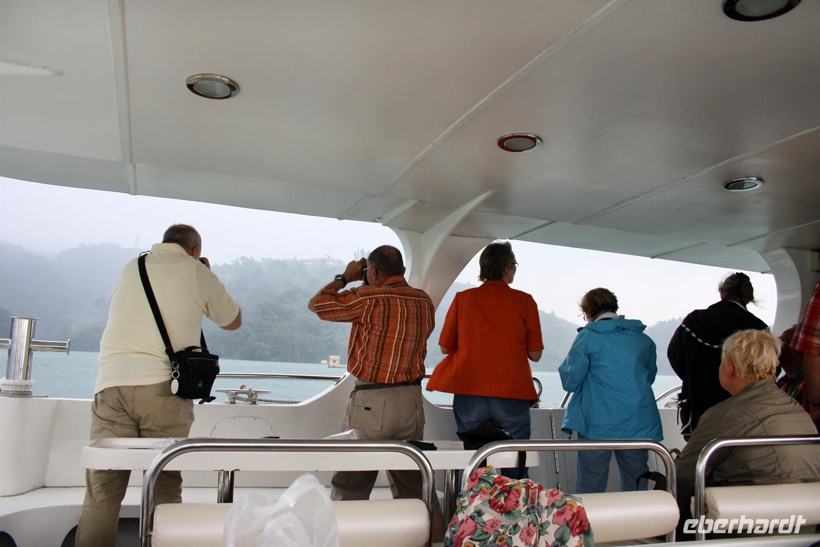 Der nächste Tag stand ganz im Zeichen des Sonne-Mond-Sees, zunächst besuchten wir jedoch noch das Erdbeben-Museum. Die Simulation des Erdbebens vom 21.09.1999 machte uns alle sehr nachdenklich. Das war schon ein erschütterndes Erlebnis, im wahrsten Sinne des Wortes. Der See erwartete uns leider im Nebel und Regen, die Bootsfahrt wurde etwas ungemütlich. Unser Hotel Crystal Resort lag diesmal etwas außerhalb mitten in einem Park mit einem großen Poolbereich. Da der nächste Tag Sonnenschein brachte, entschieden wir, nochmals an den See zu fahren und das lohnte sich dann auch. Weiter ging es nach Lugang, wo wir den Tienho-Tempel besuchten und danach Freizeit hatten. Süßes für alle im Bus! Weiter ging es Richtung Dasi. Wir besuchten den Cihu Sculpture Park mit Statuen von Chiang Kai Shek und bummelten durch die Einkaufstraße von Dasi, die Hoping Old Street. Wir schliefen in einem Hotel ganz nah am Flughafen, um nicht so zeitig aufstehen zu müssen. Mit einem Frühstückspaket auf dem Schoß warteten wir auf unseren Flug zur zweiten Station der Reise - nach Südkorea, in die Hauptstadt Seoul.