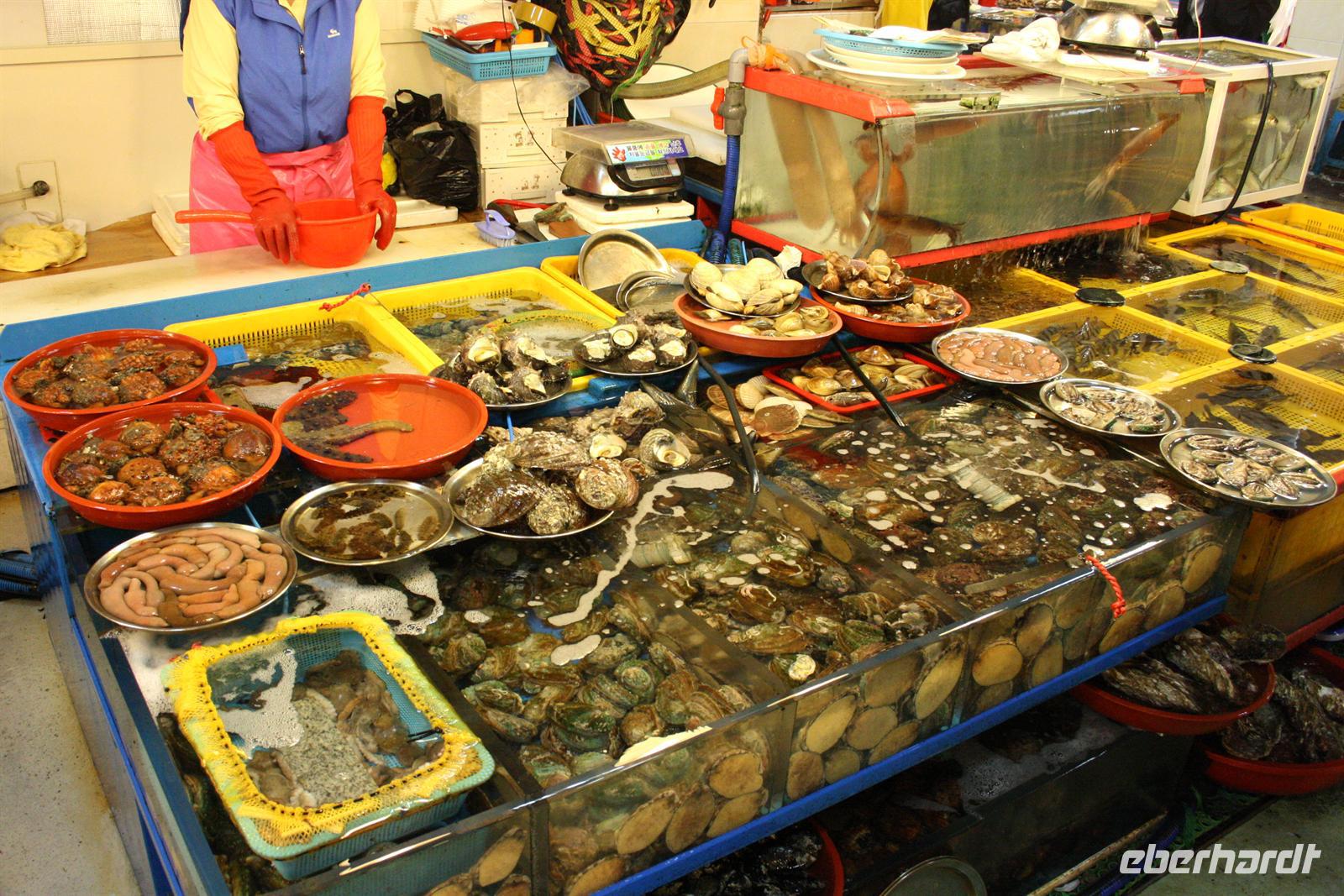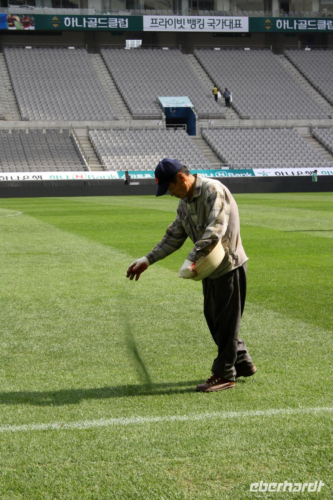 Wir machten einen ersten Zwischenstopp am WM-Stadion, bevor wir in der Innenstadt von Seoul ankamen. Wir merkten schnell, dass es eine Ausnahme war, dass wir rein durften, da abends ein großes Freundschaftsspiel zwischen Südkorea und Japan stattfand, das landesweit übertragen wurde. Überall wurde aufgebaut, der Rasen wurde getunt und die Ü-Wagen standen bereit. Wir besichtigten die Spielerräume und ein kleines Museum von der WM 2002. Gleich neben dem Stadion lag ein Einkaufszentrum, Maria zeigte uns, was Koreaner so einkaufen und essen. Wir fuhren weiter in die Innenstadt zum Hotel, das sehr zentral lag. Nachmittags besuchten wir eine christlich-anglikanische Kirche und bummelten über den Gwanghwamun-Platz, besichtigten die König-Sejong- und General Lee-Statuen und ein Museum im Untergrund, wo wir Kalligraphie ausprobieren durften. 19.00 Uhr gab es Abendessen in einem typisch koreanischen Restaurant, wo man am Boden oder am Tisch sitzen kann, wir haben aber den Tisch genommen J Sehr gutes Essen erwartete uns, vielleicht das beste in Südkorea, denn kulinarisch hielt das Land noch einiges Überraschendes für uns bereit.