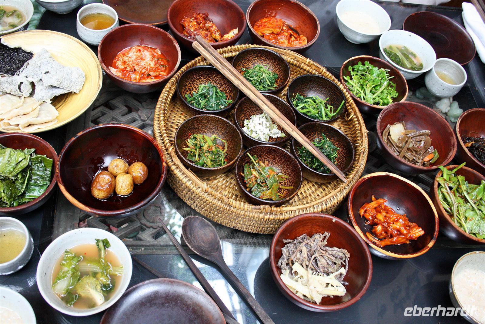 Das Nationalmuseum schauten wir uns auch an und danach machten wir noch einen zusätzlichen Ausflug zum Haeinsa-Tempel, der zum UNESCO-Weltkulturerbe zählt. Die sehr schöne Anlage begeisterte uns. Dort hatten wir auch gleich die Möglichkeit mit bei den Mönchen zu essen. Man bekommt eine Blechschüssel mit Reise, Gemüse und extra Suppe. Eigentlich darf man nicht sprechen, aber da so viele Touristen dort waren, herrschte lautes Volksgemurmel.