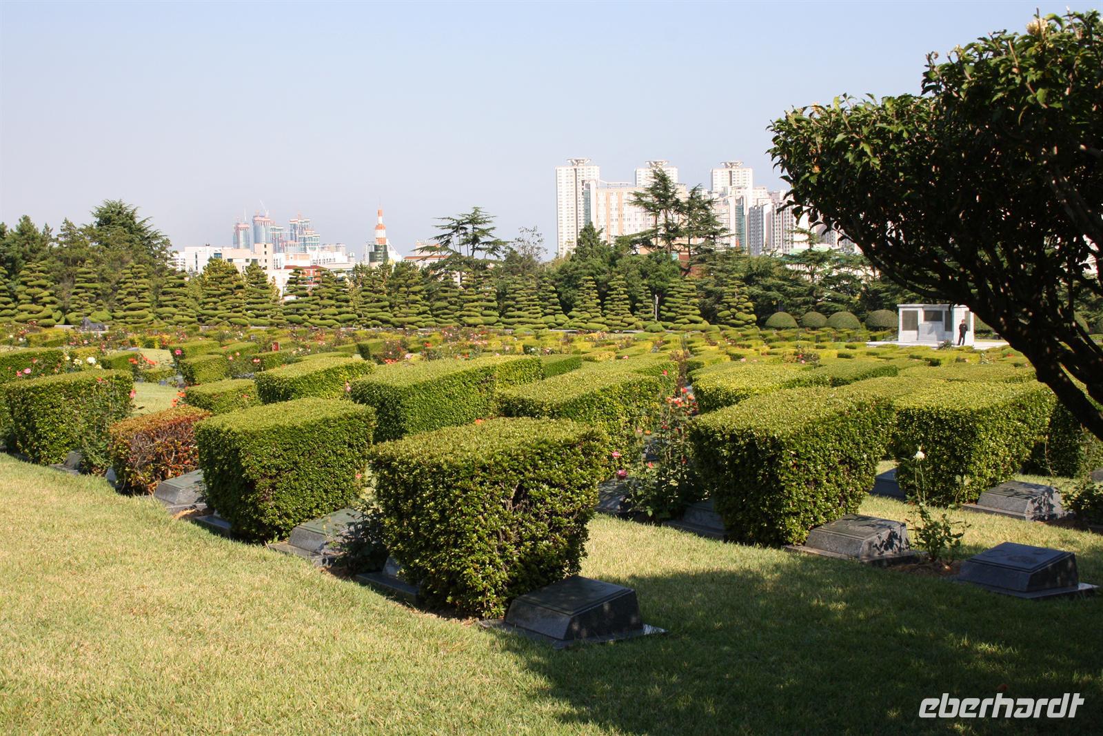 Wir fuhren weiter zum UN-Gedächtnis-Friedhof und erlebten eine Zeremonie mit Orchester und Danksagungen an die Dänemark-Veteranen. Danach stand noch ein Besuch des Taejongdae- und Yongdusan-Parks an. Unser Hotel „Nongshim" gehört zur Lotte-Konzernkette, die nach Charlotte aus „Die Leiden des jungen Werther" benannt ist.