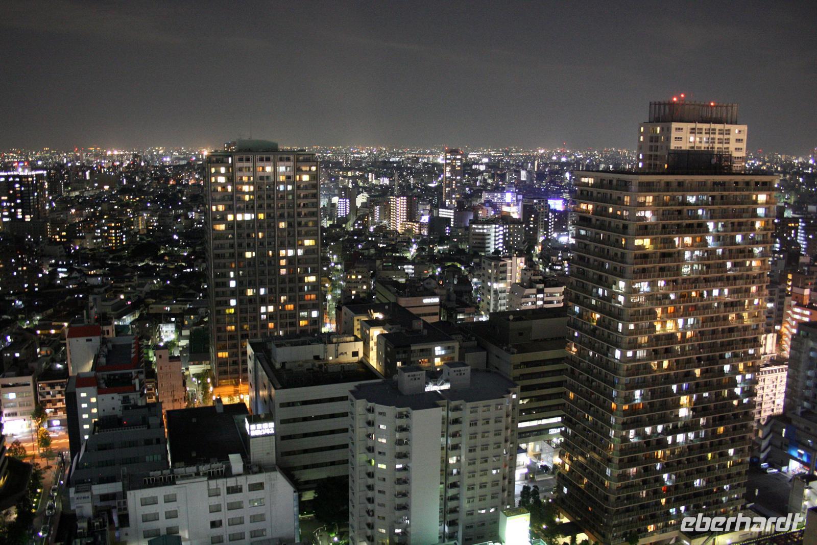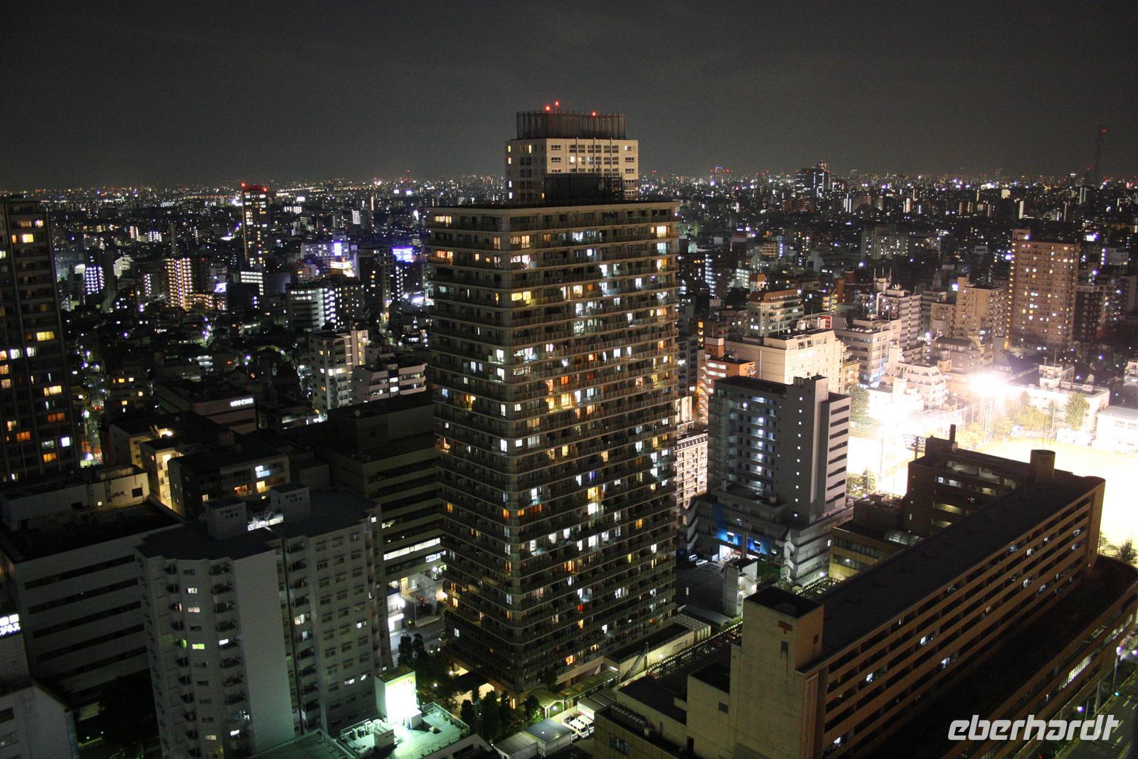 Wir trafen uns mit dem Reiseleiter Herrn Kamei und fuhren 70 Minuten ins Hotel, Achtung: Linksverkehr! Im 28. und 30. Stock des Hochhauses hatten wir aus unseren Zimmern einen unglaublichen Blick auf die Riesen-Stadt. Nachts besonders reizvoll und Häuser so weit das Auge reicht.