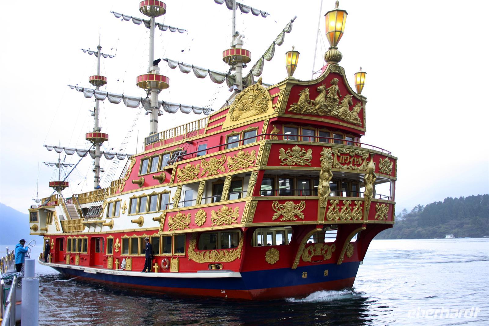 Wir fuhren weiter zum Ashisee und gingen an Bord eines toll aussehenden Piratenschiffes. Eine echt witzige Idee! Das Wetter war mal wieder nicht so gut, sehr diesig, aber das waren wir ja schon irgendwie gewohnt, jedes Mal, wenn wir am Wasser waren. Das tat der guten Stimmung aber keinen Abbruch.