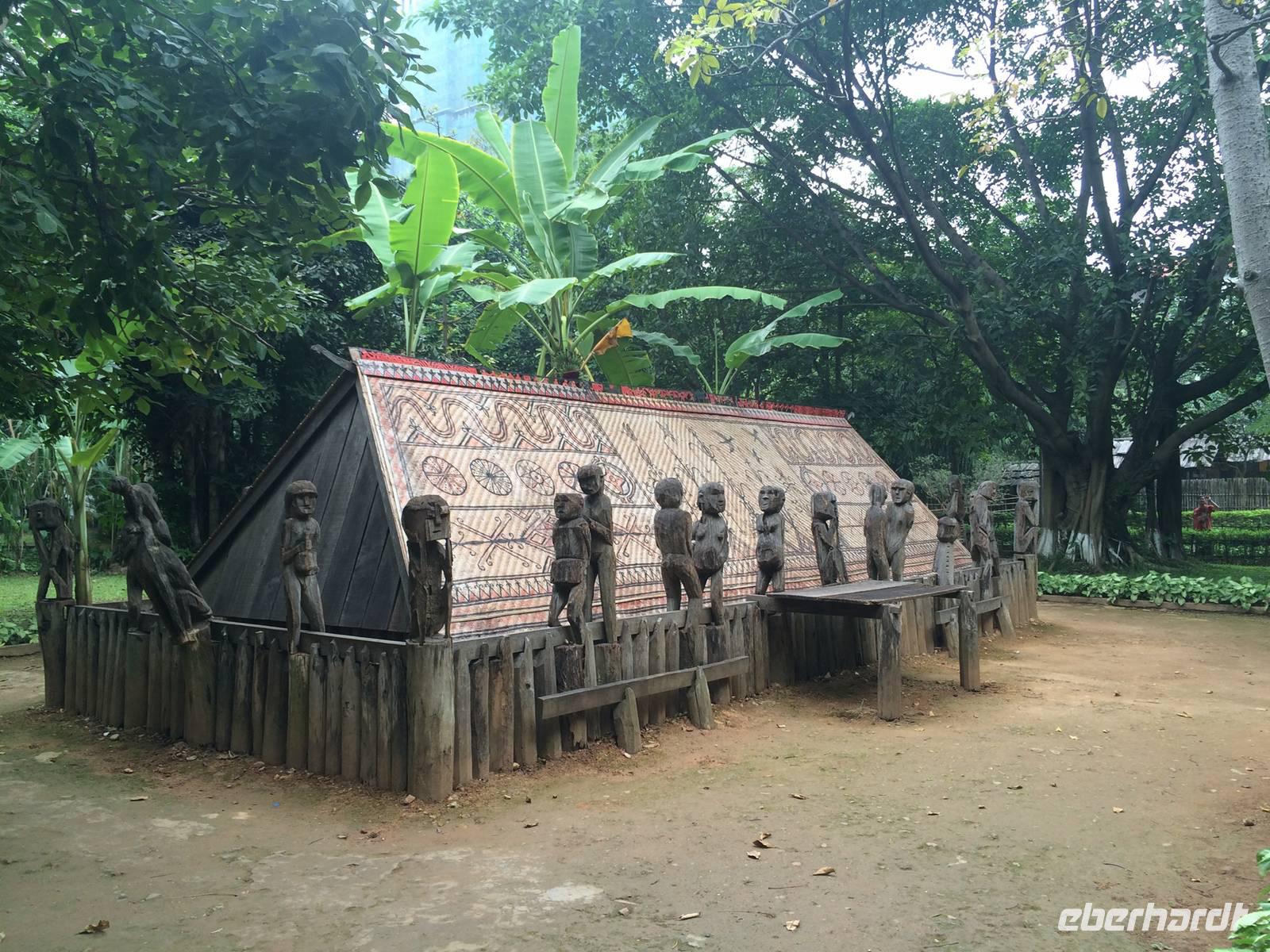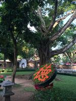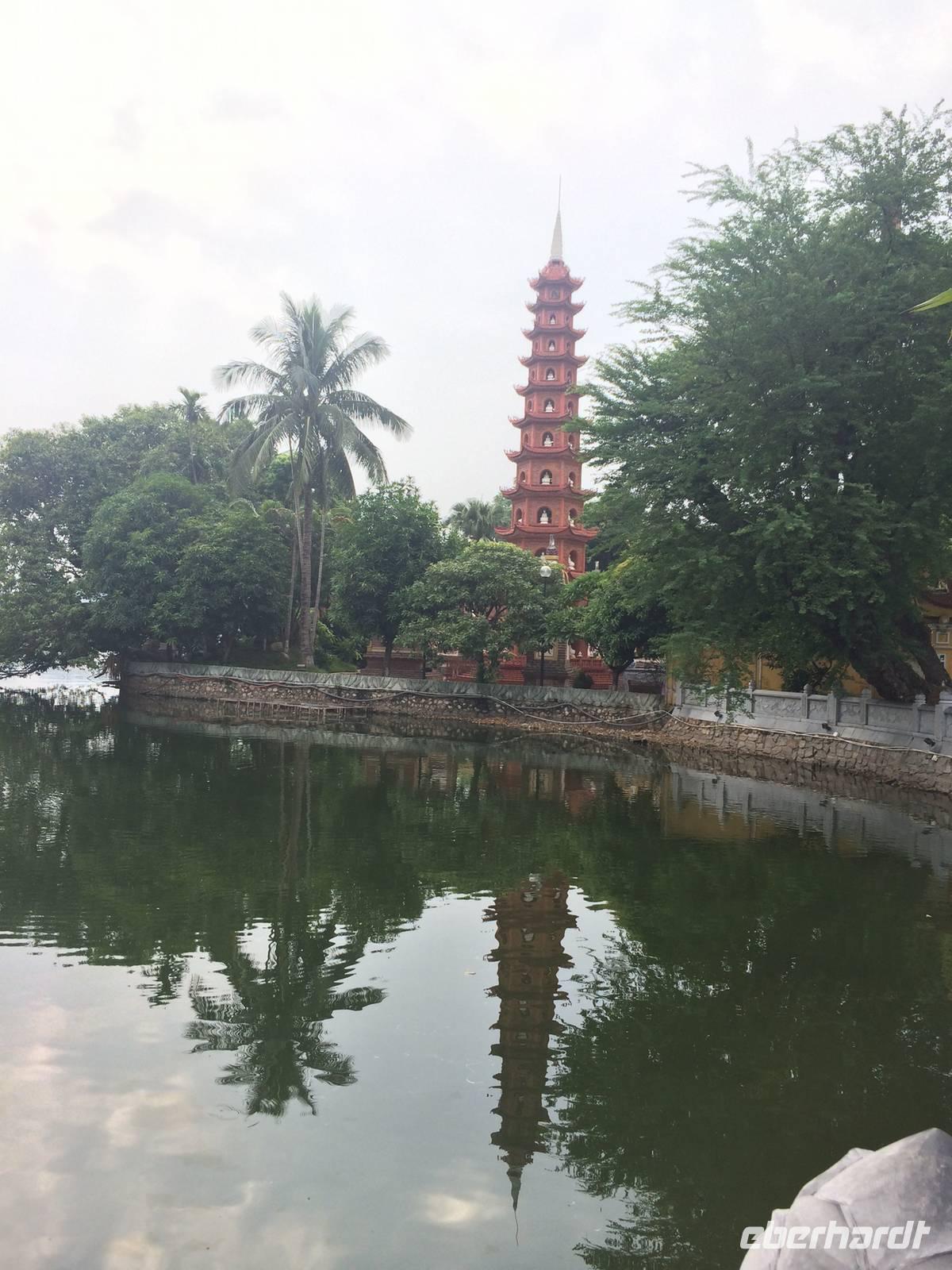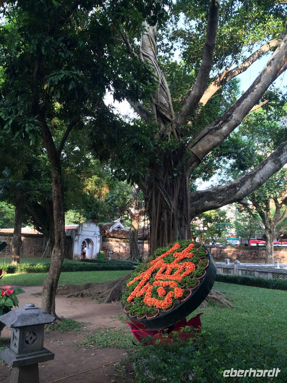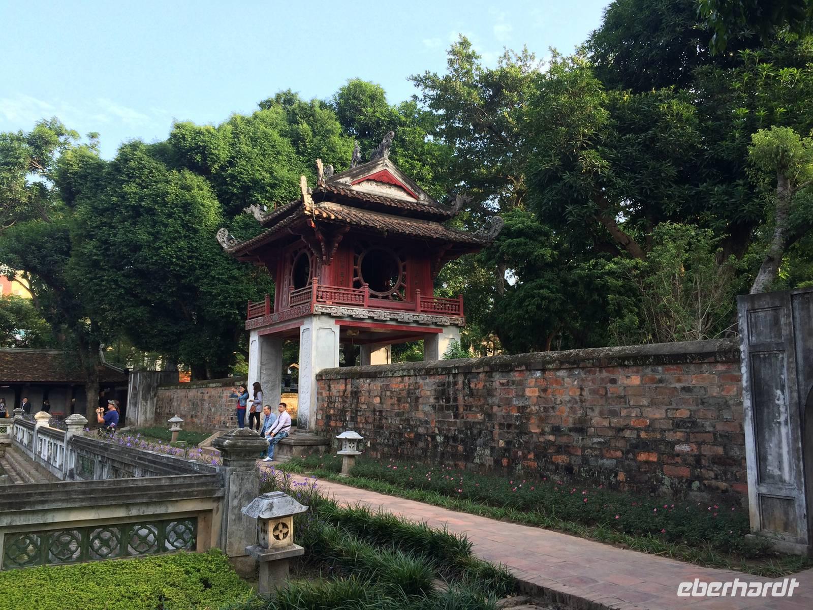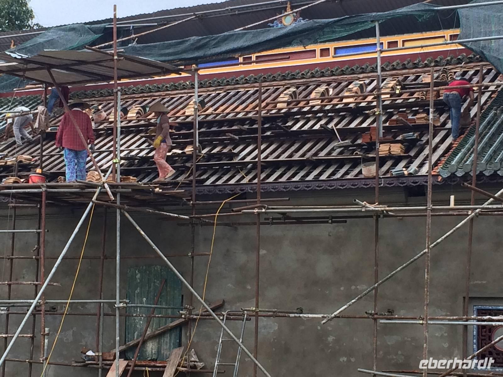 Am Heutigen Tag steht das Ethnologische Museum auf dem Programm. Das Museum gibt uns einen Einblick in die 54 verschiedenen ethnischen Gruppen, welche sich in Vietnam angesiedelt haben. Die Mehrheit mit 86 % der Gesamtbevölkerung machen die Kinh Viet aus. Das sind alle, die in den Städten wohnen. Kleinere Gruppen wurden über die Jahrhunderte in die Bergregionen verdrängt. Sie leben heute weiterhin vom Jagen, Reisanbau und ihren Handarbeiten wie das Weben etc. Auf dem Gelände um das Museum herum befinden sich traditionelle Häuser der ethnischen Minderheiten, wie beispielsweise Rong-Haus der Volksgruppen im Hochland Tay Nguyen, das Tonhaus der ethnischen Minderheit Ha Nhi oder das Hochhaus der Bhanar-Minderheiten, auf dessen Treppen wir ein lustiges Gruppenfoto von uns schießen lassen.Weiter erreichen wir den Tempel der Literatur. Er war das konfuzianische Hauptheiligtum und die erste Universität von Vietnam. Vor fast 1000 Jahren (1070) ließ Kaiser Ly Thanh Tong diese Van Mieu-Pagode erbauen. In der Ly-Dynastie begann die konfuzianische Glaubenslehre den Buddhismus zu verdrängen und Van Mieu entwickelte sich zum intellektuellen sowie spirituellen Zentrum des Königreiches. Im Stehlenhof finden wir die 82 verbliebenen Steinstehlen, getragen auf den Panzern von steinernen Riesenschildkröten. Schildkröten symbolisieren ein langes Leben. Auf den Steintafeln sind die Examina, die Namen der 1036 erfolgreichen Absolventen und deren Lebenslauf eingemeißelt. Es ist nicht verwunderlich, dass dieser Platz ein würdiger Ort ist, den man zu besonderen Anlässen aufsucht. Und so werden wir Zeugen eines farbenfrohen Ereignisses: Eine Gruppe von Absolventen feiern den Abschluss ihrer Abiturausbildung in der festlichen Kleidung Ao Dai (Zu Deutsch lange Bluse). Zur Anerkennung werden sie auch von uns x-Mal fotografiert.Nach der Mittagspause bei einer bürgerlichen Garküche gibt es Pho-Nudeln in allen Varianten: gebraten, gerollt, frittiert oder gedämpft. Der letzte Punkt in Hanoi ist das älteste Heiligtum von Hanoi. Die Tran Quoc-Pagode liegt auf einer kleinen Insel auf dem West-See, der größte See von über zwanzig Seen der Stadt. Es wird angenommen, dass die Pagode bereits im 6. Jahrhundert errichtet wurde. Am Eingang wird auf einer steinernen Platte festgehalten, dass sie im frühen 17. Jahrhundert vom Roten Fluss hierher verlegt wurde.Wir fliegen am Nachmittag mit einer leichten Verspätung nach Hue. Gerade im Hotel angekommen, bekommen wir den heftigen Tropenregen zu hören. Beim Abendessen auf der Dachterrasse, zum Glück überdacht, sehen wir die riesigen Wassermassen hinunterstürzen... Ja, herzlich Willkommen in Asien!
