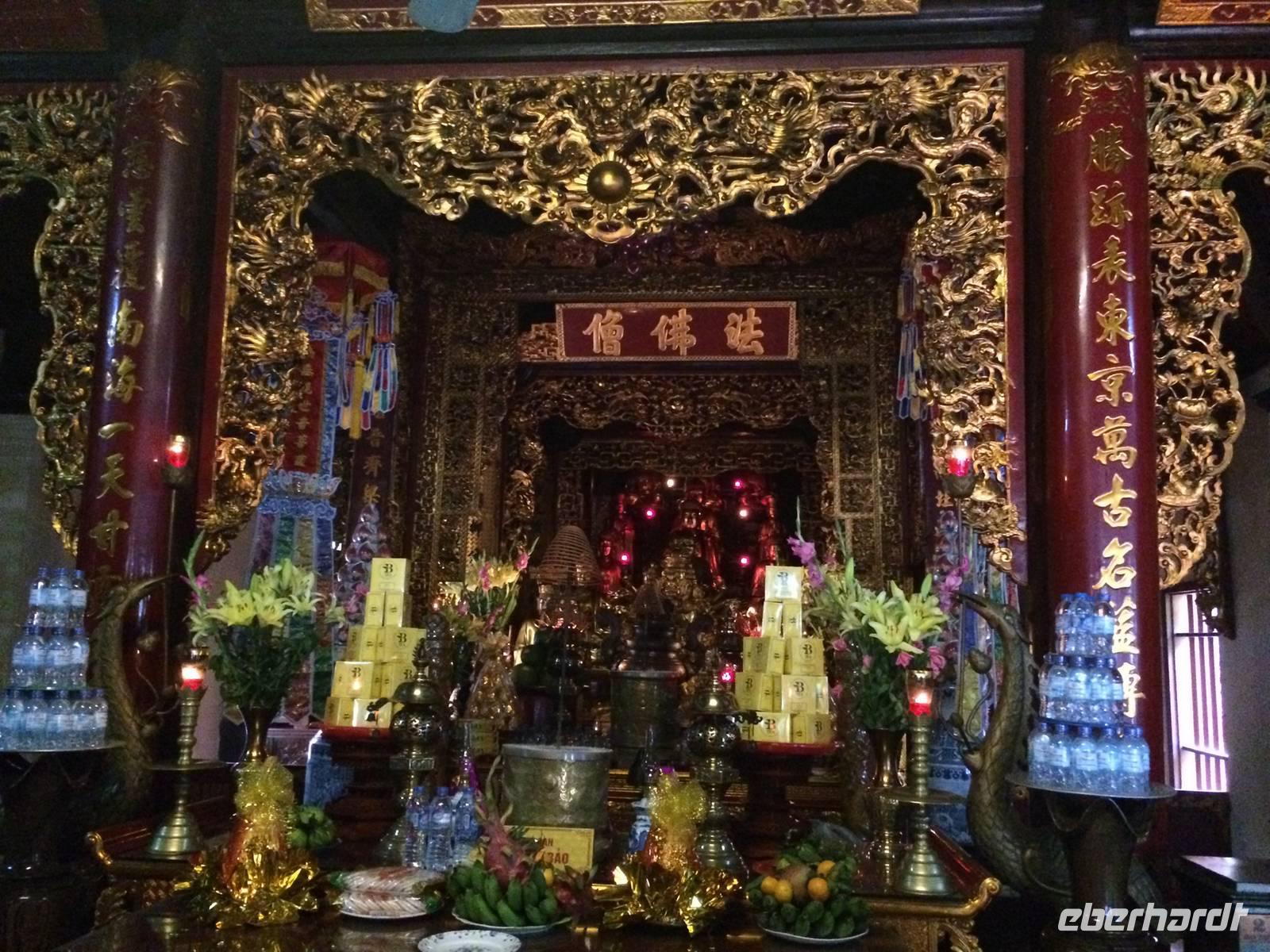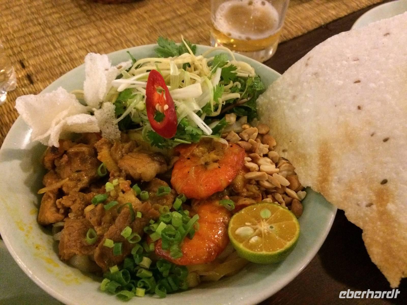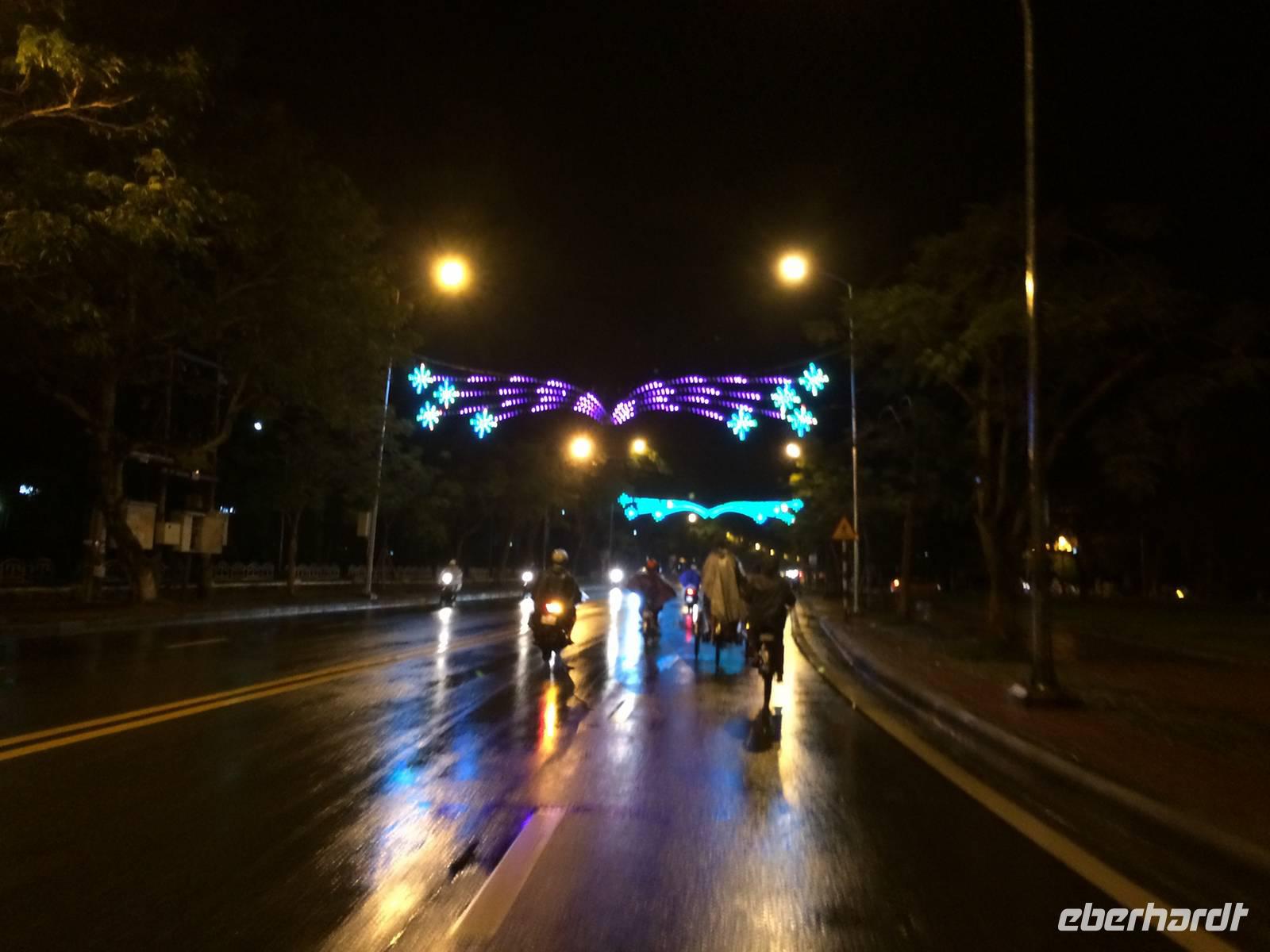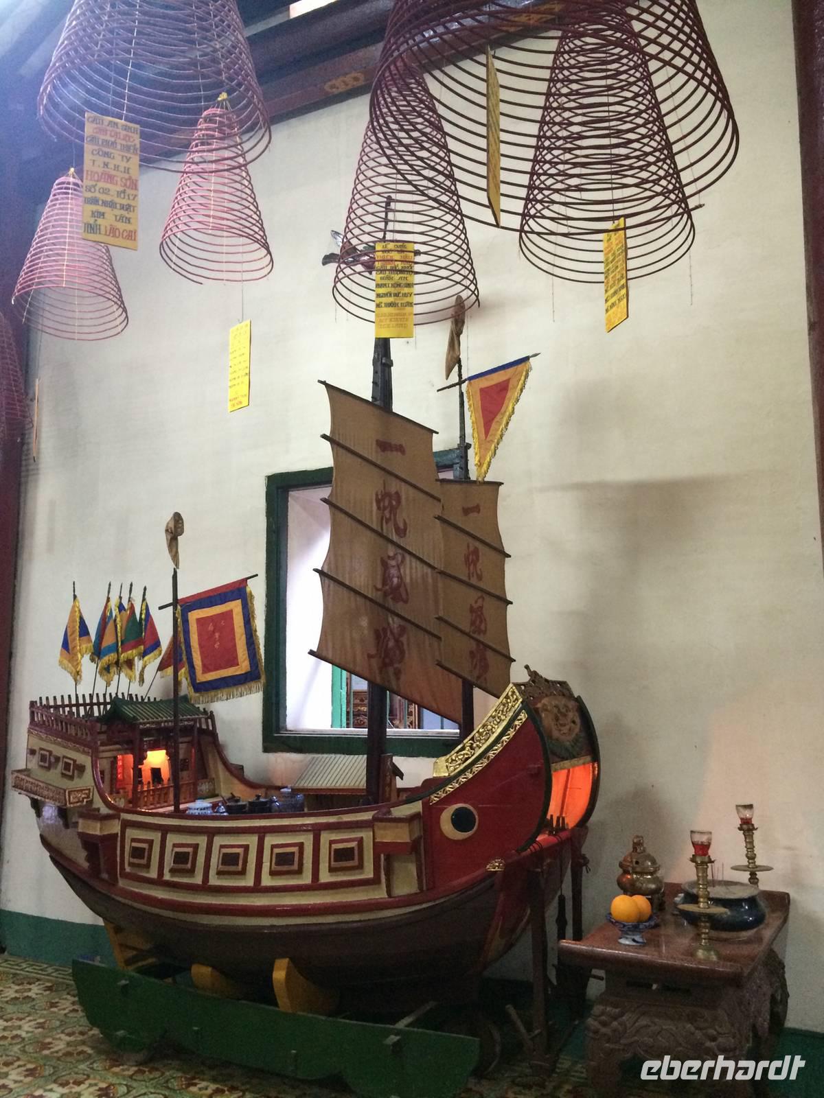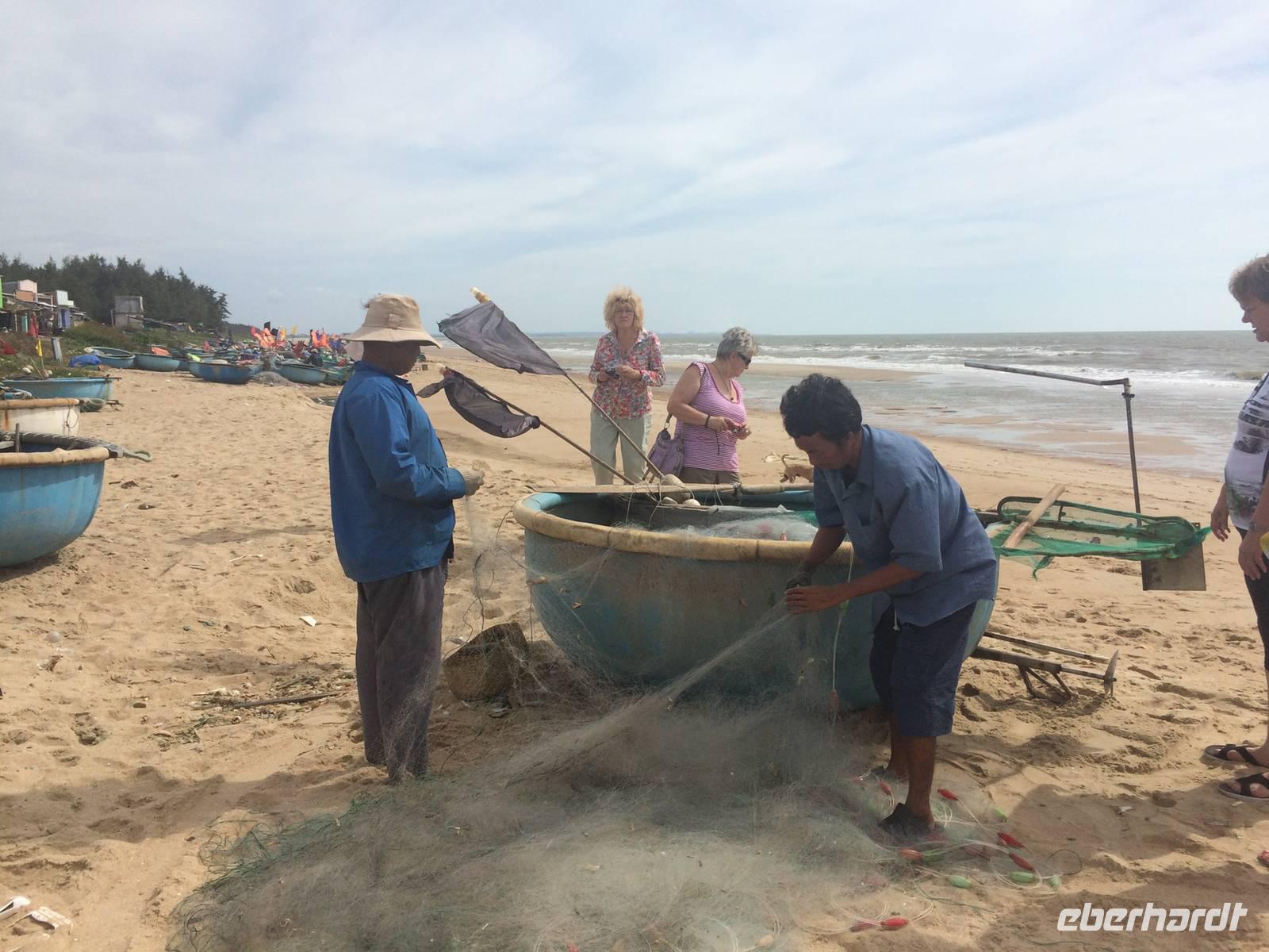 Auf unserer Agenda steht für heute die Hafenstadt Hoi An. Auf der Nationalstraße 1 fahren wir in Richtung Süden. Der Wolkenpass, Da Nang und die mittelalterliche Stadt Hoi An sind die Etappen. Der Wasser-Wolkenpass Hai Van bildet die natürliche Grenze und Wetterscheide zwischen Nord- und Süd-Vietnam. Er ist etwa 20 Kilometer lang und erreicht 496 Meter Höhe. Auf der Passhöhe angekommen, gibt es natürlich einen Halt für dies und jenes. Foto, Vietnamesischer Allzweckbalsam, Eukalyptusöl, Perlenschmuck...Wir kommen wieder in die Ebene und erreichen Da Nang. Wie umgewandelt erscheint uns hier die Gegend: die Küste, gepflegte Straßen und Promenaden mit verzierten Bäumchen am Straßenrand. Da Nang ist die viertgrößte Stadt Vietnams und durch seinen Naturhafen zum Pazifischen Ozean auch eine wichtige Handelsstadt. Am schönen Lang Co Strand pausieren wir zum Mittag und lassen unsere Füße noch kurz das Wasser den feinen Sand sowie das warme Südchinesischen Meeres spüren.In Hoi An angekommen verabschieden wir uns von unserem Bus und laufen zu Fuß durch das kleine Hafenstädtchen. Hoi An wurde im 4. Jahrhundert von den Cham als Hafenstadt am Südchinesischen Meer gegründet. Allerdings haben wir gelernt, dass wir nicht (mehr) in China sind. Obwohl offiziell in allen aktuellen europäischen Karten (und sogar auf dem Smartphone-Navi so bezeichnet) ist es hier nicht das Südchinesische Meer, sondern das Ost-Meer. Und richtig: auf der original vietnamesischen Karte steht „Bien Ðông" und das heißt übersetzt „Ost-Meer". Die gesamte Altstadt gehört inzwischen zum Weltkulturerbe. Sofort zieht uns das liebliche, bunte Städtchen in seinen Bann. Wir schlendern durch die kleinen Gassen mit ihren gemütlichen Läden, die allesamt mit bunten Lampions geschmückt sind. An der Japanischen Brücke berichtet uns Tuan über die Teilung der Stadt in einen japanischen und einen chinesischen Teil im 16. Jahrhundert. Der Legende nach baute man die Brücke, als Japan mehrfach von verheerenden Erdbeben heimgesucht wurde, für die man ein Ungeheuer verantwortlich machte. Man glaubte, dass dessen Kopf in Indien, dessen Schwanz in Japan und dessen Herz in Hoi An lag. Mit dem Bau einer Brücke bezweckte man, dass sich Steinpfeiler wie ein "Schwert" in das Herz rammen sollten und so das Ungeheuer bezwingen. Wir spazieren am Ufer des Thu Bon Flusses entlang, bis wir unser Ausflugsboot erreichen. Gemütlich schippern wir über den Fluss, um am kühlen Wasser der Hitze zu entfliehen. Zurück an Land besuchen wir die Versammlungshalle der Chinesen aus Kanton. Ursprünglich diente diese Anlage als Treffpunkt der eingewanderten Chinesen und manchmal auch als religiöses Zentrum. Im Inneren steigt uns sofort Weihrauchduft in die Nasen. Viele Räucherspiralen mit Wunschzetteln hängen an der Decke der Pagode. Man glaubt, dass der Weihrauch die Wünsche hinauf zur Himmelsgöttin trägt und so in Erfüllung gehen. Am Nachmittag genießen wir die freie Zeit. Ob man am Fluss entlang schlendert, nach Souvenirs Ausschau hält, einen Kaffee schlürft oder den Markt besucht, hier es ist für jeden was dabei!