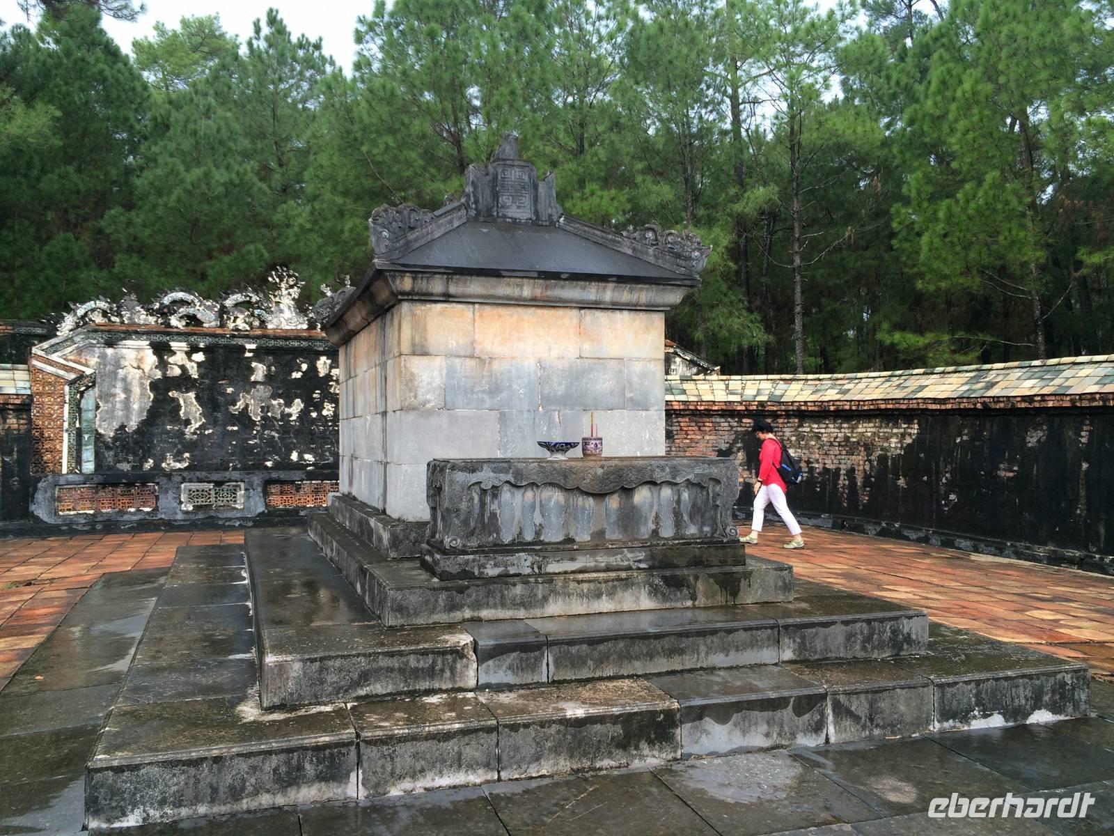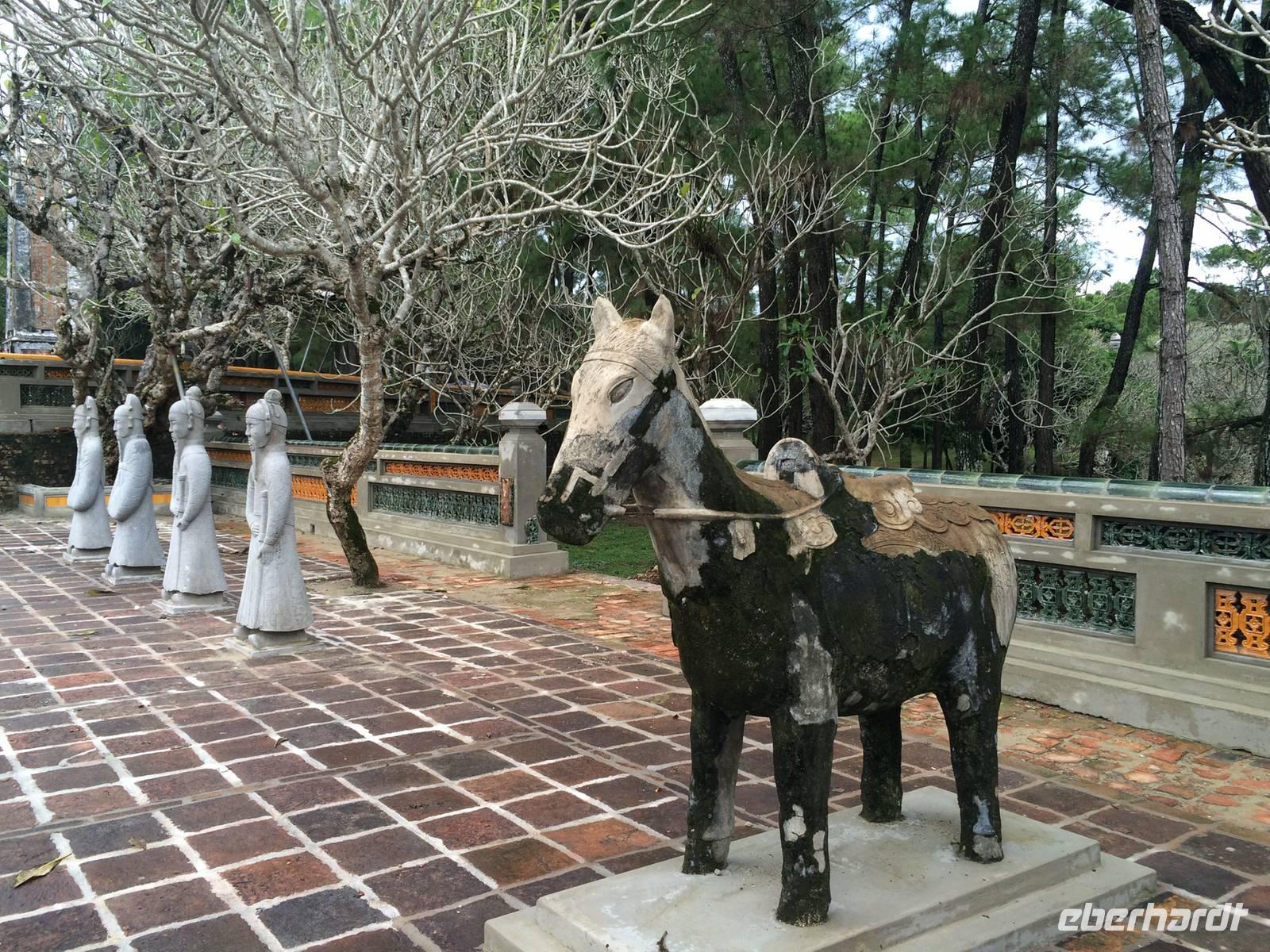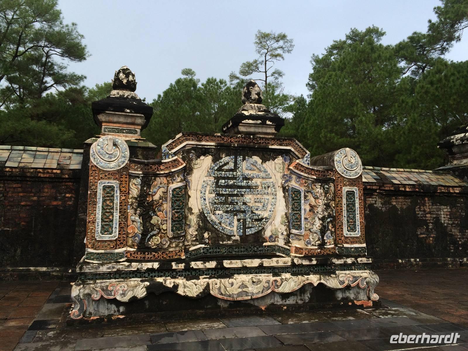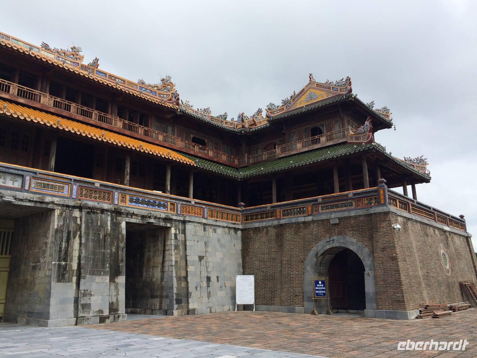 Wir wollen die erhabene alte Hauptstadt und Kaiserstadt Hue erkunden. Ein neuer Reiseleiter begrüßt uns: Herr Tuan kümmert sich professionell um alles. Unser erster Anlaufpunkt ist der Königspalast. Vor dem Palast steht der Flaggenturm mit der Königsflagge, die auf drei Stufen steht. Die Stufen symbolisieren die drei wichtigen Bedingungen für ein König: Volk, Erde und Himmel.Hue erlebte eine der blutigsten und längsten Schlachten im letzten Vietnamkrieg, der kaum vorstellbar aber bekanntermaßen länger als der 2. Weltkrieg andauerte. Wenigstens aufgrund des religiösen und kulturhistorischen Status verbot es sich für die Amerikaner, die Stadt zu bombardierenden, so wurde im Häuserkampf vorgegangen. Die Zitadelle konnte jedoch nicht eingenommen werden; nun setzten sie doch gezielte Bomben-und Napalm-Abwürfe gegen Zitadelle und Kaiserpalast ein.Die Zitadelle sollte nicht nur eine Festung sein, sondern eine Stadt mit Wohnbereichen für die kaiserliche Familie und die Beamten. Achtzig der ehemals dreihundert Gebäude kann man heute noch sehen. Wir sehen nicht nur in den Ausmaßen überwältigende Anlagen, wir sind Zeugen des im Gange befindlichen und noch lang währenden Prozesses des Wiederaufbaus und der Restauration, mit staunenswerten Resultaten.... In den Anlagen des Palastes zeigt er uns die Charakteristiken des Baustils, die sich größtenteils an die Feng-Shui-Prinzipien richten und weiht uns in die interessanten Geschichten des Kaiserlebens ein. Es gibt viel zu hören, was kaum einer schriftlichen Lektüre nachzulesen ist. Mit dem Bau der Zitadelle 1802, veranlasst von Kaiser Gia Long, begannen die glorreichen Tage von Hue.Unsere Erkundungsfahrt setzten wir fort mit der Besichtigung der Thien Mu-Pagode aus dem Jahr 1601, das Gebäude in Gestalt eines überdimensionalen Kegelhutes annimmt. Die prächtige Pagode besteht aus sieben Etagen mit einer goldenen Buddhastatue auf der obersten Etage. Im Haupttempel sind drei Buddhafiguren zu finden, die für Wissen, Weisheit und Glück stehen. Fasziniert sind wir ebenfalls von der ca. 2 Tonnen schweren Bronzeglocke, deren Klang über 10 km weit zu hören sein soll. Die grimmig schauenden Wächter am Eingang bereiten uns keine Angst und so betreten wir die gepflegte Anlage mit anhängendem aktivem Kloster. Weiterhin entdecken wir ein altes Auto (es ist ein Austin). Dieser erinnert an den Mönch Thicj Quang Duc, der 1963 mit diesem Auto nach Saigon fuhr und sich dort öffentlich selbst verbrannte. Er protestierte damit gegen die Verfolgung der Buddhisten und fand, trauriger Weise, auch einige Nachfolger, die seinem Beispiel folgten. Zum Glück ist das alles lange her und wir können heute die Fahrt mit unserem schönen Drachenboot durch das romantische Flusstal in Frieden genießen.143 Jahre lang regierten dreizehn Kaiser der Nguyen-Dynastie in Hue, umgeben von einem feudalistischen Hofstaat chinesischer Prägung, zuerst in glanzvoller Pracht, dann in Dekadenz und letztendlich in Unterwerfung unter die Kolonialmacht Frankreichs. Tu Duc, der vierte Kaiser von Hue war kaum einen Meter fünfzig groß, von sanfter Art, hochgebildet, kränklich, kinderlos. Er hat viertausend Verse und sechshundert Prosastücke hinterlassen, ein guter Poet, aber ein schwacher Kaiser. Unter ihm nahmen sich die Franzosen das Land. Von großer Schuld geprägt, flüchtete sich der Kaiser in seine, schon vor seinem Tod angelegte, Grabanlage. Dort saß er dichtend und rezitierend in einem Pavillon am Lotusteich, über den er sich in Vollmondnächten rudern ließ. Aus Morgentau ließ er sich Tee bereiten. Musik und Poesie begleiteten opulente Bankette, die ihm jedoch nicht über seine Schwermut hinweg halfen. Für seine Mutter und seine 104 Konkubinen ließ er eigene Tempel und Quartiere bauen. Seine Grabanlage hat er selbst entworfen. Ein Vorhof mit steinernen Mandarinen befindet sich vor dem Stehlenpavillon, hinter dem sich das eigentliche Grab befindet.Nach so viel Geschichte haben wir uns heute einen schönen Abend verdient. Mit der Rikscha werden wir bis zum Eingang des Restaurant Y Thao Garden kutschiert. Unser kaiserliches Abendessen heute wird mit folkloristischer Livemusik untermalt und wir lernen traditionelle Instrumente kennen wie zweisaitige Gitarren, 16-Saiten Dan Tranh sowie das berühmte Instrument Dan Bau mit nur einer Saite.