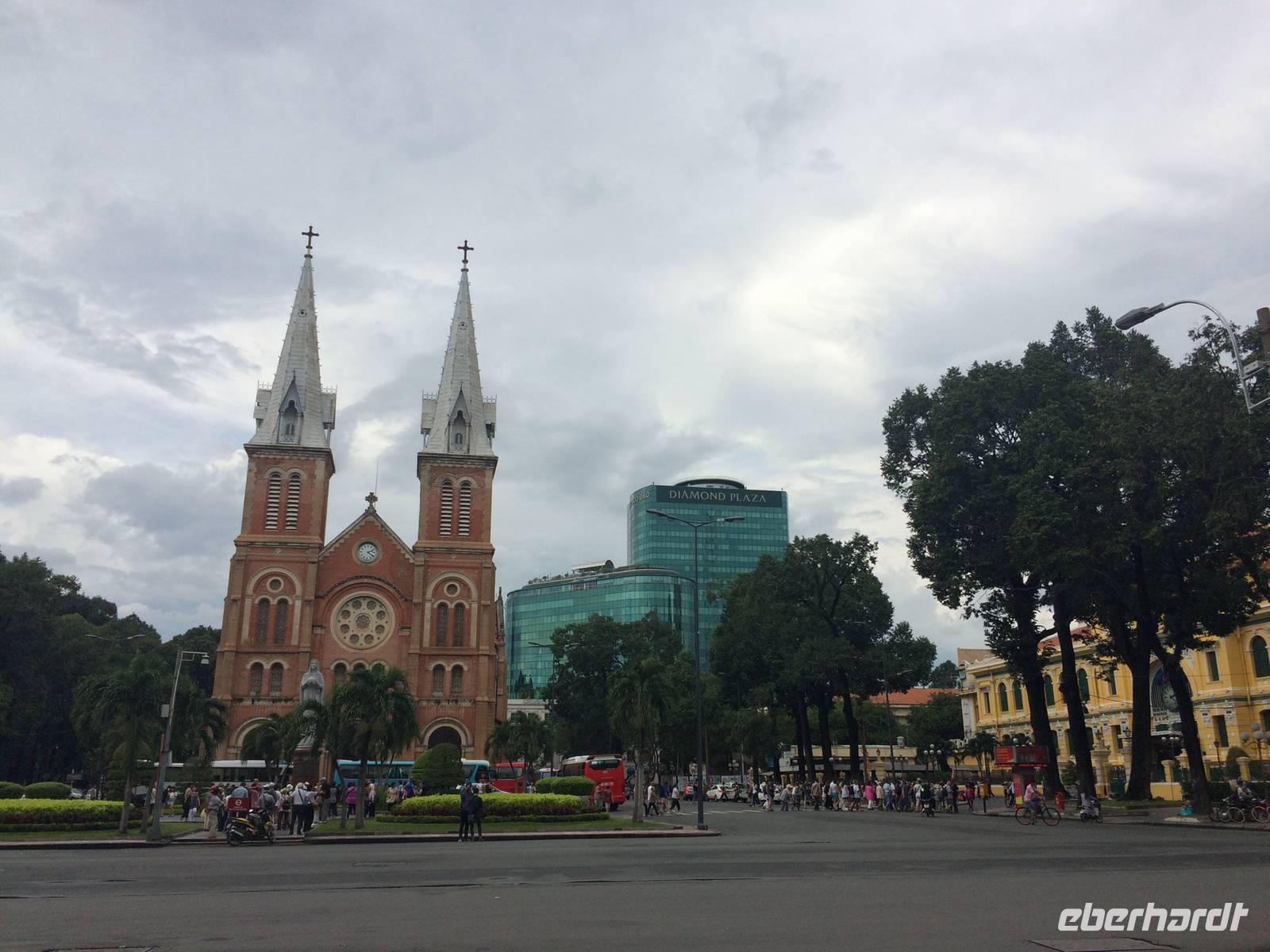 Der Wecker klingelt bereits in den frühen Morgenstunden. Nach dem zeitigen Frühstück fahren wir zurück nach Da Nang zum Flughafen. Herzlich verabschieden wir uns vom Reiseleiter Tuan. Nach ca. einer Stunde erreichen wir Saigon. Die Metropole Saigon mit ca. 10 Millionen Einwohnern trägt seit 1976 offiziell den Namen Ho-Chi-Minh-Stadt. Trotzdem ist der Name Saigon bis heute noch in aller Munde. Die größte Stadt Vietnams mit acht Millionen Einwohnern, davon ca. 500.000 Chinesen, ist die erste Stadt in Vietnam, in der eine U-Bahn gebaut wird. 2018 soll sie fertig sein, zuerst entsteht eine Nord-Süd-Verbindung und später eine Ost-West. Wir sind gespannt.Wir besichtigen die wichtigsten Sehenswürdigkeiten der Stadt. Zuerst halten wir am ehemaligen Präsidentenpalast. Anschließend besichtigen wir die Kathedrale "Notre Dame" und das Hauptpostamt. Hier tobt das Leben. Es gibt viele Telefonzellen und Schalter, an denen die Vietnamesen ihre Behördengänge erledigen können, außerdem einen großen Bereich mit Souveniren, wo wir wiederum fündig werden. Vor den Gebäuden finden Fotoshootings für Hochzeiten und Verlobungen statt. Alle zücken den Fotoapparat, um die schöne posierende Braut in der traditionellen vietnamesischen Tracht auf dem Bild festzuhalten.Nach einem erholsamen freien Nachmittag geht es pünktlich 18 Uhr erst richtig los. Wir tauchen ein in die Welt der Vietnamesen in der Stadt Saigon, die abends nicht zu schlafen scheint. Eins, zwei und hops nehmen wir auf dem Rücksitz einer Vespa Platz. Zu erst geht uns der Gedanke durch den Kopf: Albtraum oder Vergnügen? Doch gleich werden wir es erfahren... Jeder von uns wird von einem gutaussehenden Chauffeur oder einer hübschen Chauffeuse gefahren und das Abenteuer Mopedfahren kann beginnen. Amüsant geht es durch die großen und dennoch mit Millionen von Mopeds vollgefüllten Straßen. Wir haben uns ohnehin an das etwas andere Verkehrsgeschehen gewöhnt, man arrangiert sich, ohne auf sein Recht zu bestehen; das allgegenwärtige Hupen ist keine Nötigung, sondern nur Warnung „Achtung, ich komme". Kleine Kinder dürfen diese Aufgabe von Mutti oder Vati während der Mitfahrt auf dem Moped übernehmen und haben eine helle Freude dabei. Es gibt keine bösen Minen, alles ist im Fluss. Aber das Gefühl auf dieser Vespa ist etwas ganz Besonderes - man fühlt sich frei, heiter und wild. Nach einigen Minuten halten wir an der Zoom-Bar. Um uns in Stimmung zu bringen stoßen wir mit Bier und Cocktail auf einen aufregenden Abend an. Dann geht es zum ersten Abendessen. Es wird zwar am Tisch und auf Stühlen gespeist, doch direkt neben der Straße in einem kleinen Lokal, das sich auf Meeresfrüchte spezialisiert. Auf unserer Speisekarte stehen unter anderem Krabben, Muscheln und Frosch - alles sehr frisch und würzig zubereitet. Wir düsen wieder auf unseren Vespas durch die Nacht und bewundern unterwegs die wundervoll beleuchtete City mit ihren beeindruckenden Wolkenkratzern. Für einen Moment vergessen wir, dass wir in Vietnam sind, bis uns das Hupen des nebenfahrenden Mopeds wieder zurück holt. Next stop: Garküchen an der Straße. Versteckt in einer kleinen Gasse kommen wir zur Spezialität von Saigon an: Banh Xeo - Crepes aus Reismehl mit Sprossen, Garnelen sowie Schweinefleisch. Die Crepes werden aber nicht so einfach gegessen, sondern vorher liebevoll mit frischen Kräutern in Reispapier gewickelt und mit der Hand genascht. Unsere süße Reiseleiterin Vi macht uns das vor, der eine oder andere wird sogar von ihr gefüttert. Yummy! Mit Vergnügen steigen wir wieder auf die Vespas, um nun zum Dessert zu kommen. Auf der Fahrt erzählt mir mein Chauffeur, dass alle Vespas aus Italien kommen und einige sogar original aus 1975 stammen. Dann fahren wir plötzlich von der Hauptstraße ab und landen in einer dunklen Ecke. Unsere Reisegäste schauen Anh skeptisch an... Wir gehen durch einen leeren Markt, steigen schmale Treppen hinauf und lugen durch eine Tür. Hinter ihr befindet sich eine kleine Bar, in dem Musiker auf einer Violine, einem Klavier und einer Gitarre spielen. Dazu singen vietnamesische Jugendliche internatione Pop-Lieder. Zum Dessert dürfen wir uns Eis und Kaffee wünschen.Zum Abschluss des aufregenden Abends kehren wir bei einer Nachtbar ein. Bei einem Absacker und Runnin With The Devil stoßen wir auf das besondere Erlebnis Vespafahren in Saigon an. Chears! Oder besser Mot, Hai, Ba, Gio! !!