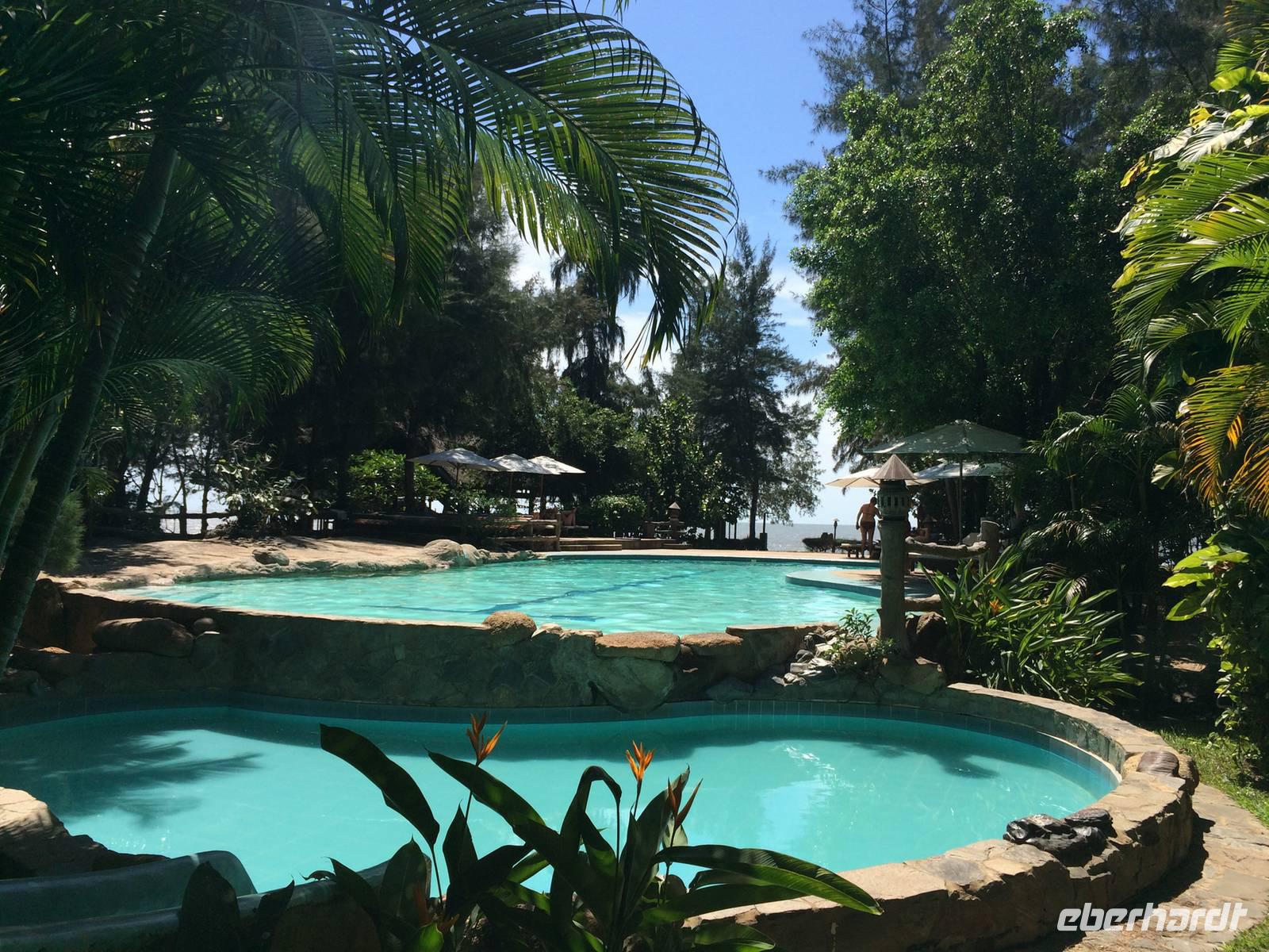 Im Ho Tram Beach Resort lassen wir es uns so richtig gut gehen. Ausgeschlafen, in aller Ruhe gefrühstückt genießen wir die Ruhepause nach den zahlreichen Erlebnissen. Bei Sonnenschein, 33 Grad und schönem Meeresrauschen lassen wir die Seele baumeln und entspannen am feinen Sandstrand, schwimmen eine Runde im Süß- oder Salzwasserpool und gönnen uns eine befreiende Massage. Die Pflege des Körpers und der Seele darf nicht zu kurz kommen, immerhin brauchen wir jetzt wirklich zwei Tage Urlaub vom bisher anstrengenden Urlaub.