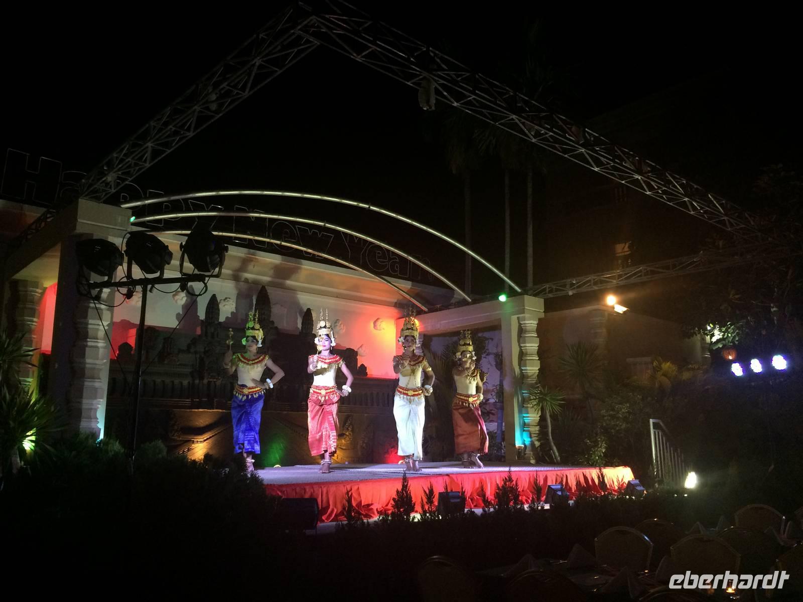 Den Gaumenschmaus beim Abendessen genießend, begrüßen wir unseren Kambodschafauenthalt mit einer Apsara-Tanzaufführung im Somadevi Angkor. Bei reichlichem Buffet und feiner Atmosphäre lassen wir uns kulinarisch verwöhnen.