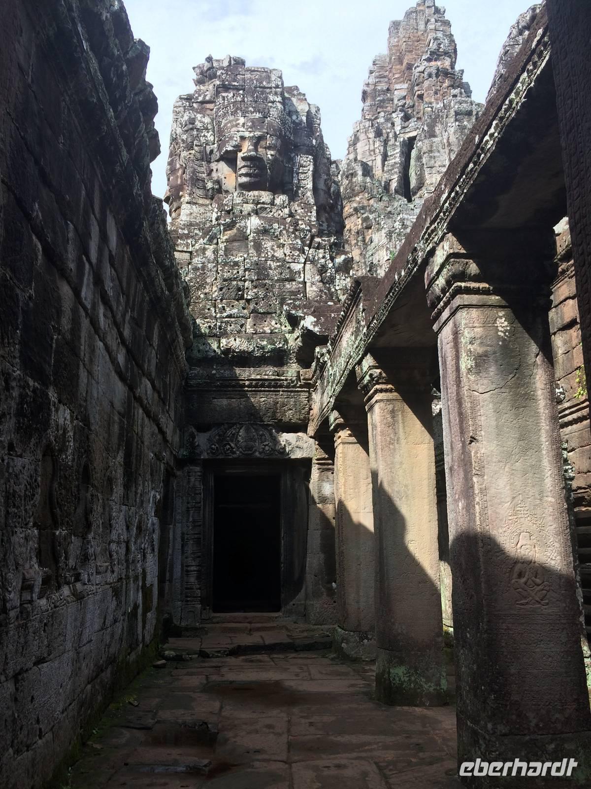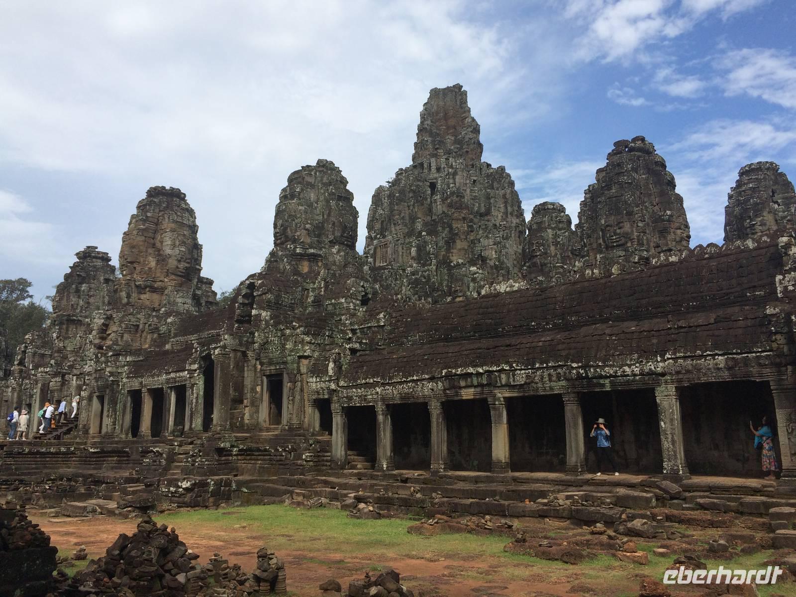 Wir fiebern unsere Entdeckungstour durch das vergangene Imperium der Khmer und der weltgrößten Tempelanlage entgegen. Das Wort "Angkor" bedeutet in der Sprache Khmer wörtlich übersetzt "Stadt". Es umfasst eine ganze Region nahe Siem Reap. Der Komplex ist zwischen dem 9. und 15. Jahrhundert entstanden, als die Religion das Zentrum des mächtigen Khmer-Reiches war. Die religiösen Wurzeln liegen im Hinduismus, weshalb viele Großreliefs in den Haupttempeln Szenen aus der hinduistischen Mythologie zeigen. Auf einer Gesamtfläche von mehr als 200 km² wurden nacheinander mehrere Hauptstädte und in deren Zentrum jeweils ein großer Haupttempel errichtet. Bis heute wurden bereits mehr als 1000 Tempel und Heiligtümer unterschiedlicher Größe entdeckt. Es gibt Vermutungen, dass im Großraum von Angkor am Höhepunkt des historischen Königreiches bis zu einer Million Menschen auf etwa 1000 km² gelebt haben könnten. Das sind im Moment noch unvorstellbare Dimensionen, am Ende unserer Reise werden wir eine kleine Idee haben von dem, was sich an monumentalen Bauwerken befindet und befunden haben könnte.Durch das Südtor erreichen wir den Tempelkomplex und besichtigen den Bayon-Tempel mit meterhohen aus Stein gemeißelten Gesichtern von Lokeshvara, die in die vier Himmelsrichtungen schauen. Von ursprünglich 49 Türmen sind heute noch 37 Türme erhalten geblieben. Dieser Ort mit den imposanten Gesichtsertürmen ist schon sehr mysteriös und zugleich faszinierend! Auf dem Elefantenrücken reiten wir einmal um den wundervollen Tempel herum und genießen den Blick von hier ganz weit oben. Erstaunlicherweise ist die Luft hier oben sogar noch kühler als unten ?