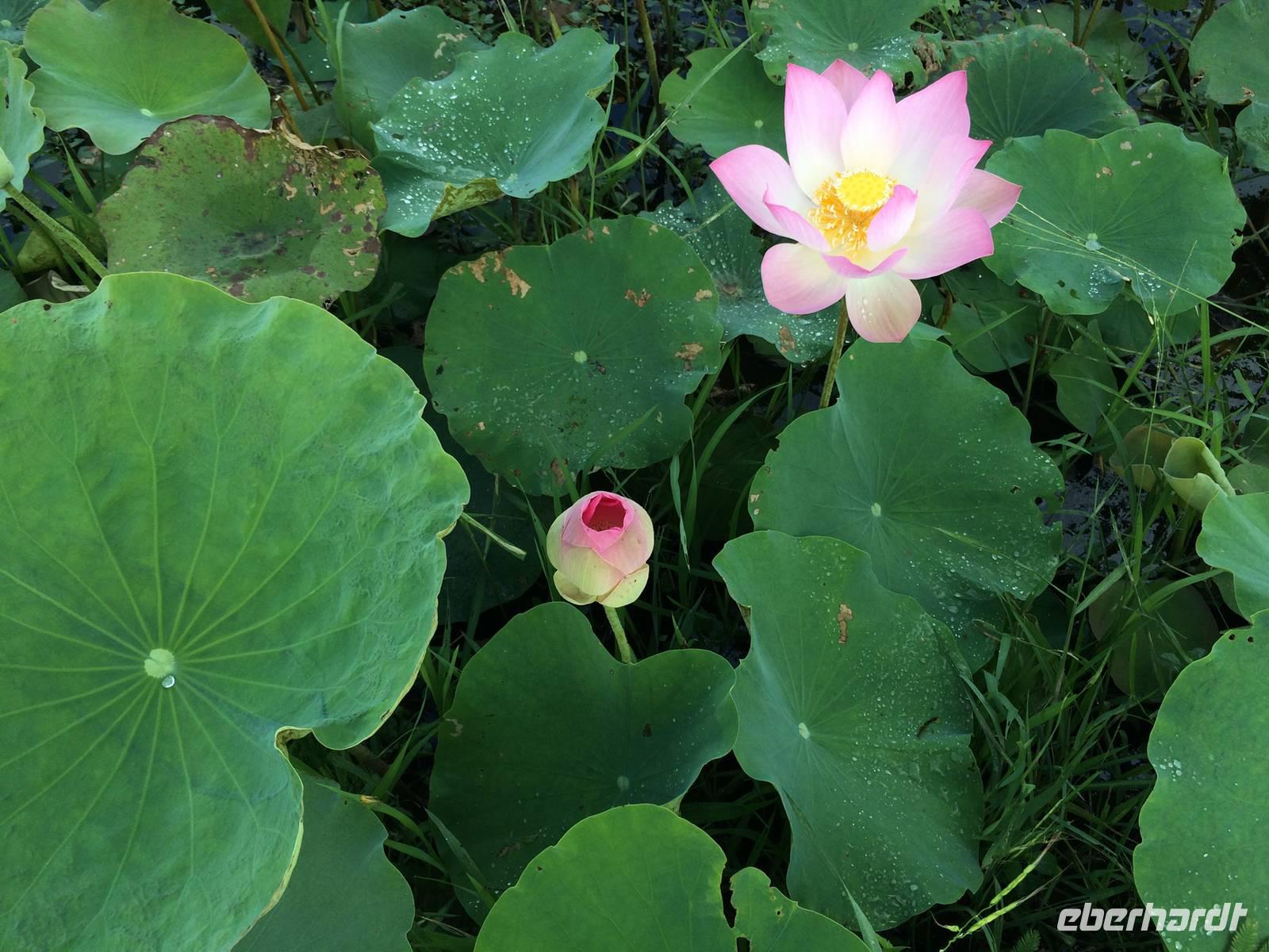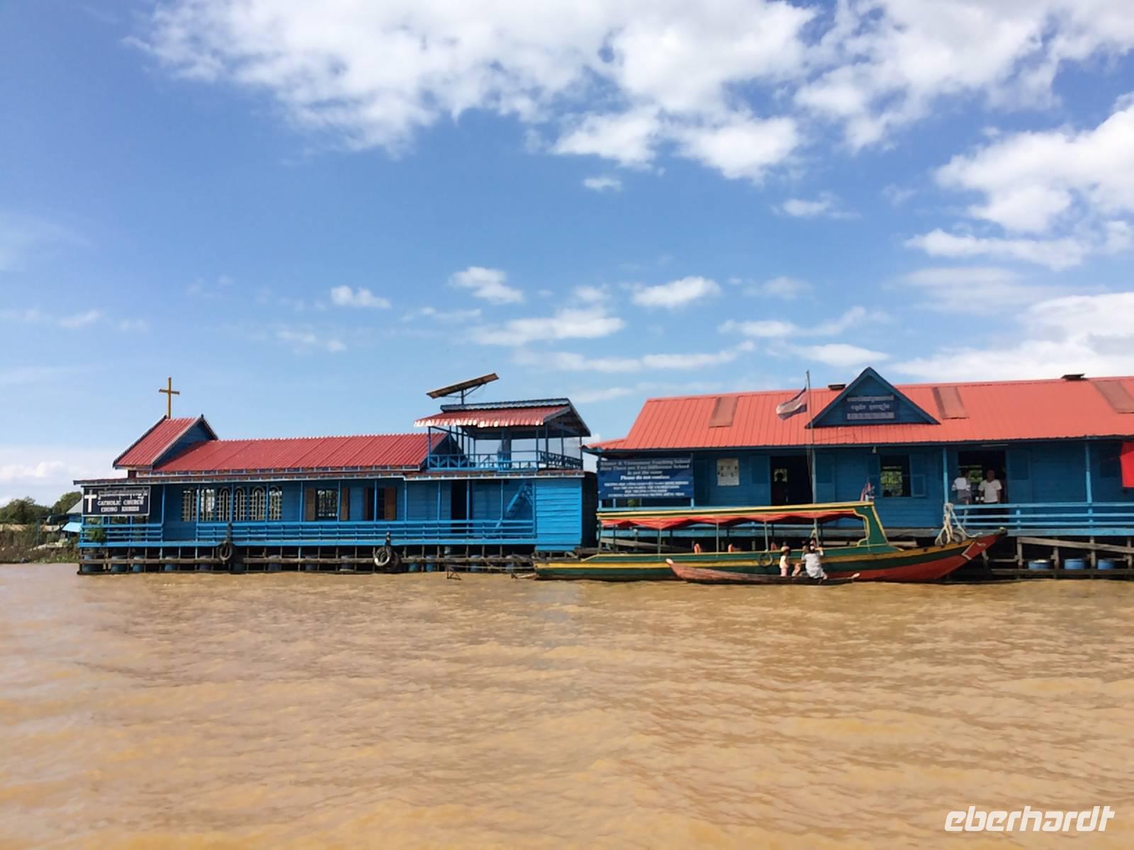 Nach dem Frühstück fahren wir in ein kleines Dorf nahe Siem Reap. Auf dem Ochsenkarren werden wir zur Lotusfarm gebracht. Hier und da gibt es ein paar Schlammpfützen und Schlaglöcher, doch das ist ganz selbstverständlich in Kambodscha. Zu Fuß schlendern wir durch Reisfelder und blicken im Wahrsten Sinne des Wortes in die Häuschen der Dorfbewohner. Unsere Gäste haben auch Gastgeschenke mit: wir verteilen Gummibären und andere Süßigkeiten sowie Seife und Zahncreme an die kleinen Dorfbewohner, dessen Augen vor Glück funkeln.Dann geht es in Richtung Tonle Sap. Der Tonle Sap ist Rückhalte- bzw. Sammelbecken für den Mekong. Der See zeigt kontrastreich zum blauen Himmel braunes Wasser, vom mitgeschwommenen Schlamm auf der weiten Reise seit dem tibetischen Hochland, wo sich seine Quelle befindet. Er ist der größte südostasiatische Binnensee mit einer einzigartigen Bedeutung für die ganze Region mit einem ebenfalls einzigartigem Hydro- und Öksystem, einer äußerst vielfältigen Tier- und Pflanzenwelt, die noch immer nicht vollständig erforscht ist. Wirtschaftlich bietet er die Lebensgrundlage der hier ansässigen Menschen. All das hier umfassend abzuhandeln, sprengt den Rahmen eines Reiseberichtes; wir haben einen winzigen Teil optisch und mental erfasst, für den Einen oder Anderen Anreiz, sich tiefgründiger mit ihm zu beschäftigen. Die meisten Bewohner dieser Region ernähren vom Fischfang. Kein Wunder, denn der Tonle Sap ist sehr arten- und fischreich, wie uns San informiert. Krokodile soll es hier auch geben, an uns vorbei geschwommen ist aber keines. Wir schippern auf den offenen See und besuchen ein schwimmendes Dorf mit ebenso schwimmender Kirche und Schule. Nach so vielen Erlebnissen, begleitet von schönstem Wetter, treten wir nun die Rückfahrt zum Hotel und später zum Flughafen an. Jetzt können wir gut gestimmt in unser Flugzeug nach Deutschland steigen.Eine wunderschöne, unglaublich erlebnisreiche und vielseitige Reise geht zu Ende, von deren Erinnerungen wir noch lange zehren werden. Ich danke Ihnen allen fürs tapfere Mitmachen und die großartige Zeit, die wir gemeinsam verbringen durften. Es hat mir wir sehr viel Spaß gemacht, Ihnen mein geliebtes Vietnam und faszinierendes Kambodscha zu zeigen (auf jede mögliche Beförderungsweise) und ich würde mich freuen, mit dem/der einen oder anderen noch einmal bei einer gemeinsamen Reise die Welt zu erkunden! Alles Gute und bleiben Sie gesund! Ihre Anh