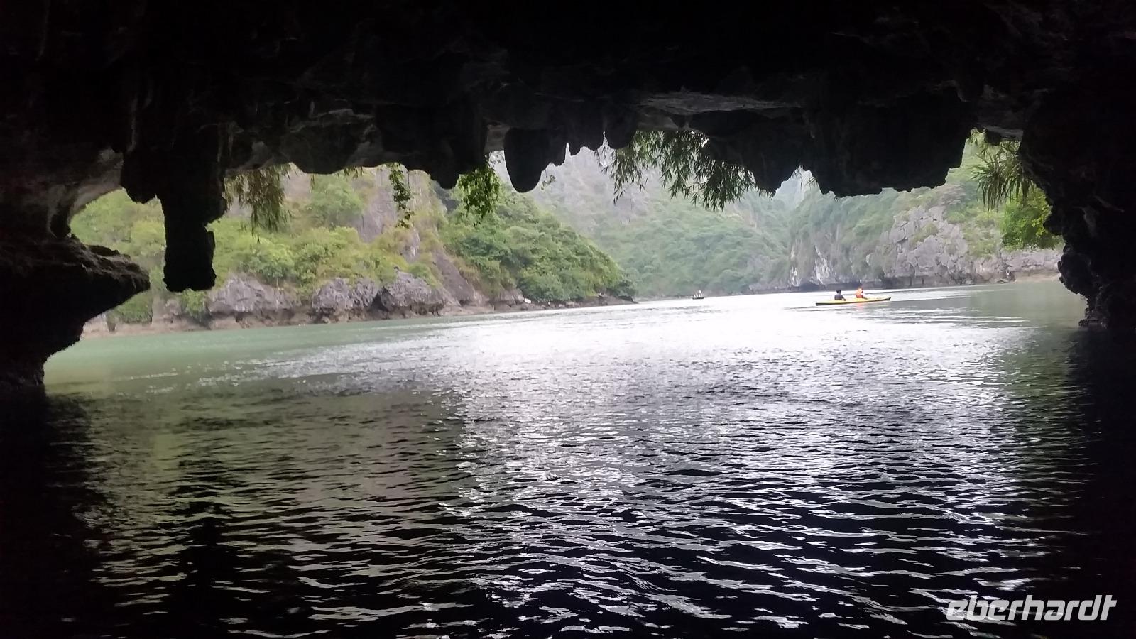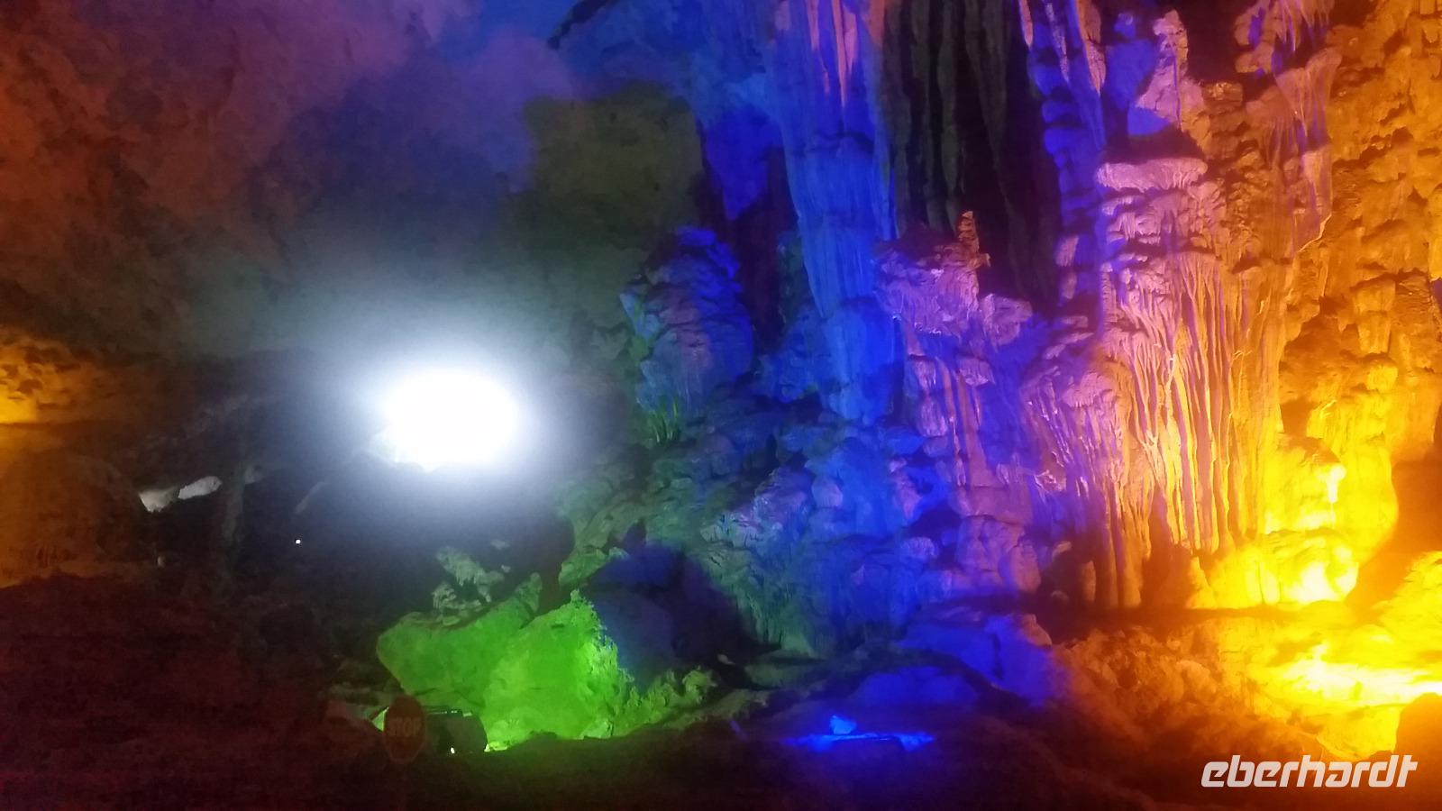 Nach einem leichten Frühstück starteten wir auch schon mit unserem ersten Ausflug: es ging mit dem kleinen Boot wieder durch die malerische Natur bis hin zu der bekannten Sung Sot Höhle. Die Natur formte diese im Laufe der Jahre wirklich atemberaubend schön und die bunten Lichter setzten sie noch besonders geheimnisvoll in Szene.