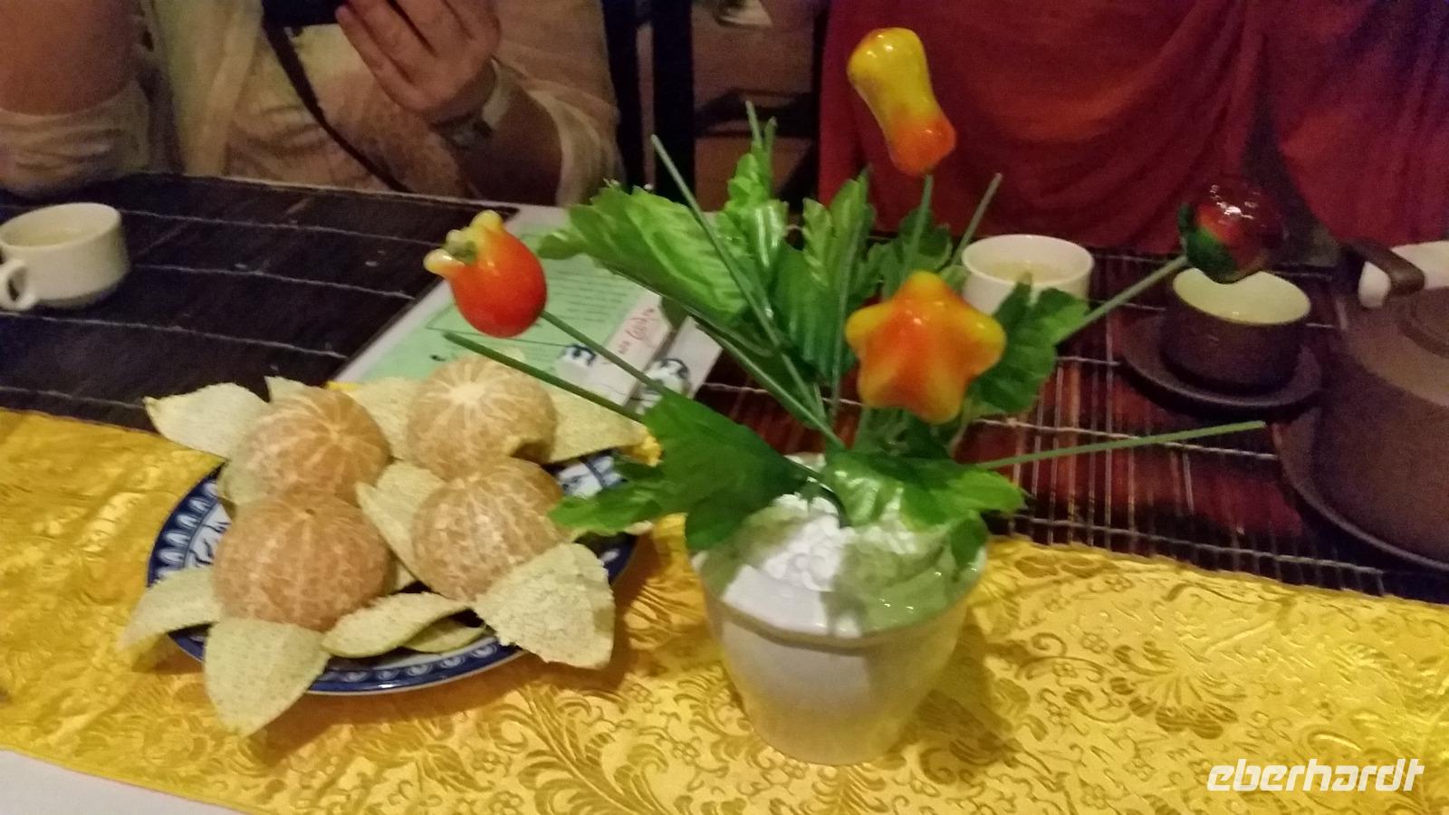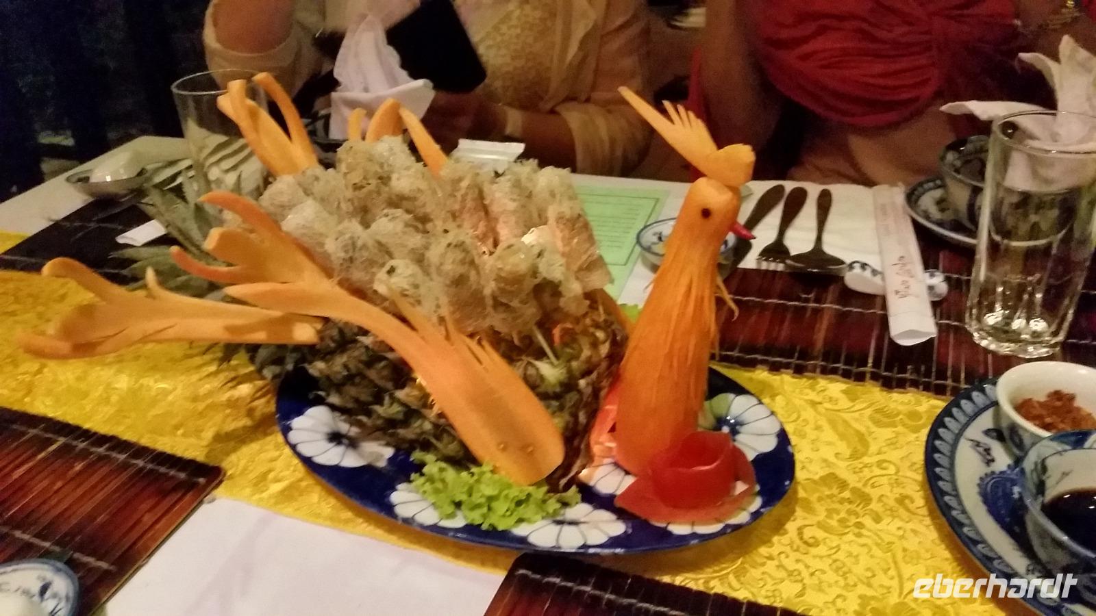 Zurück auf der Dschunke machten wir uns alle ein wenig frisch und trafen uns anschließend zum Abendessen wieder. Auch heute gab es wieder neue, abwechslungsreiche und delikate Speisen zur Auswahl, die wir natürlich unbedingt probieren mussten!