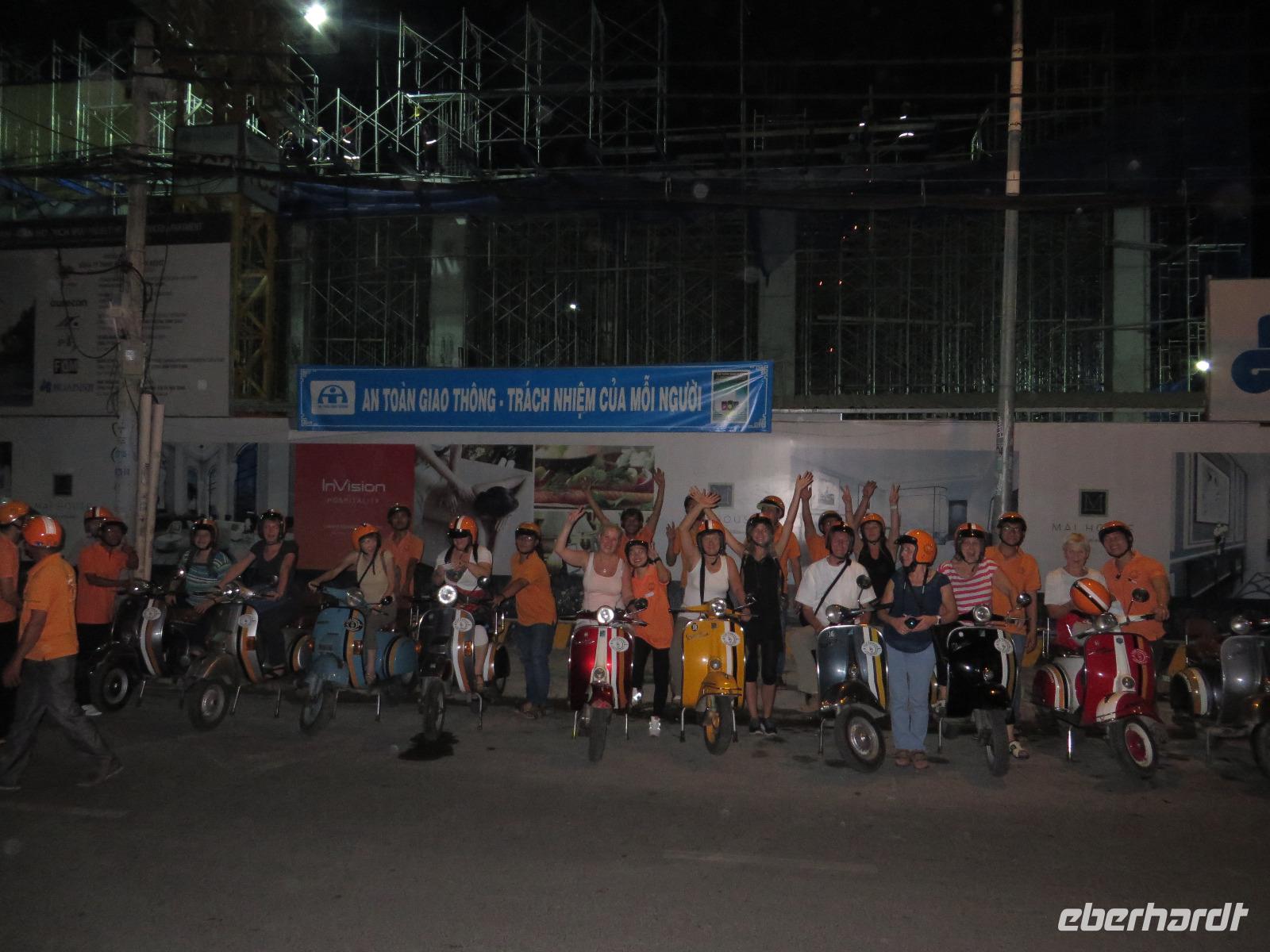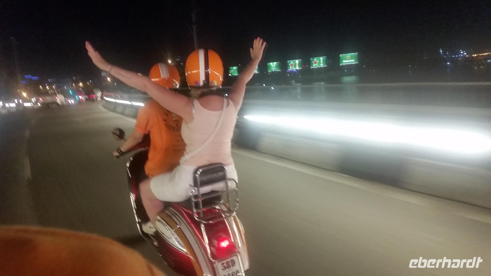 Am Abend trafen wir uns alle in unserem Hotel wieder, wo wir bereits von unseren charmanten Vespafahrern erwartet wurden. Auch wenn einige von uns dieser Tour erst ein wenig skeptisch gegenüber standen, war dieser Ausflug für alle ein voller Erfolg. Auf dem Roller durch die Stadt zu fahren wirkt von außen viel hektischer als es eigentlich ist. Und so saßen wir bequem, wie auf einem Sofa hinter unserem Chauffeur, schossen hunderte Bilder und genossen in vollen Zügen dieses außergewöhnliche Flair! Das Schöne bei dieser Tour ist, dass wir die Möglichkeit hatten, diverse Insider der Stadt auf eine spektakuläre Art und Weise kennenzulernen. Die einzelnen Stopps repräsentierten alle ein unterschiedliches Bild von Saigon und zeitgleich ein traumhaft Schönes..