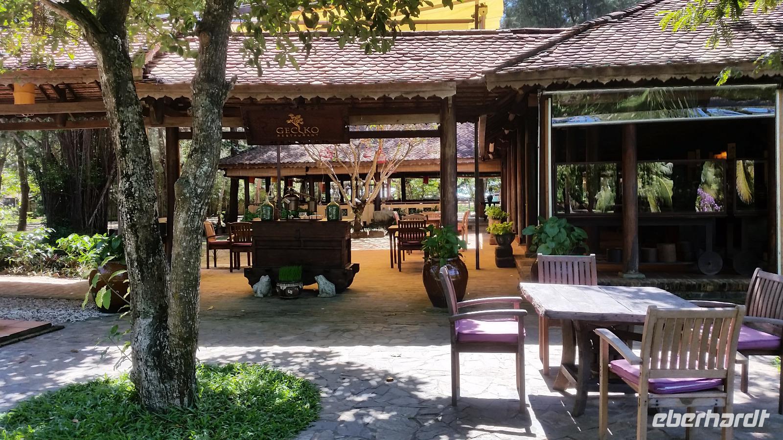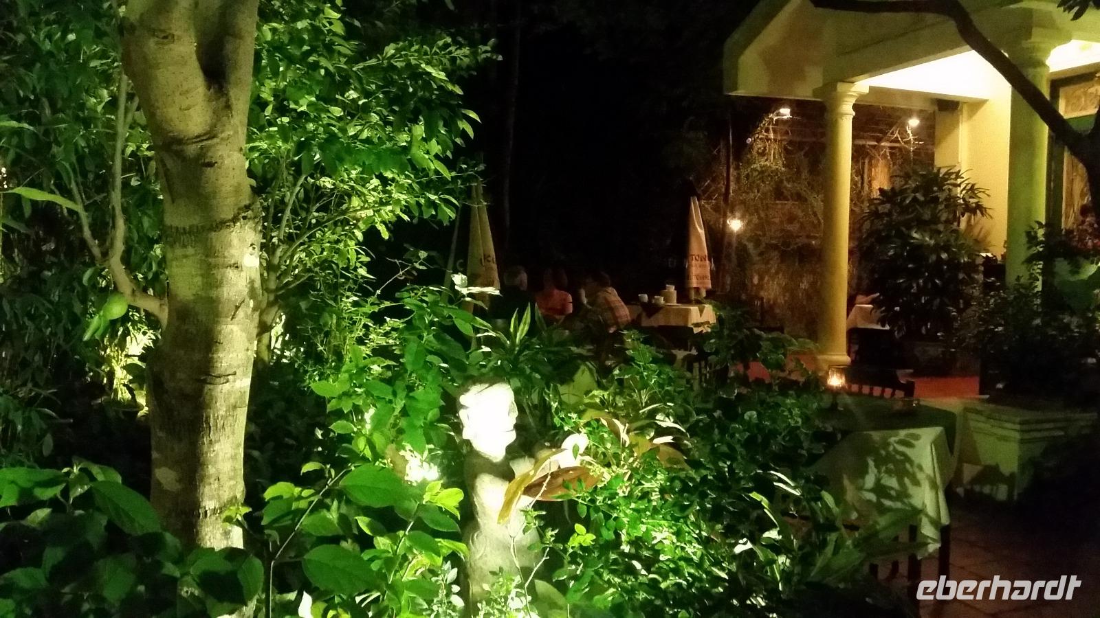 Ein märchenhaft geschmückter Garten erwartete uns am Abend eines lokalen Restaurants. Hier war die Atmosphäre, direkt am Fluss gelegen einfach so harmonisch, dass wir den Spaziergang bis dorthin bei einem starken Regenguss doch gern in Kauf nahmen! Wer sich nachmittags seine Kleider maßgeschneidert anfertigen ließ, der konnte sich diese gleich auf dem Rückweg abholen.