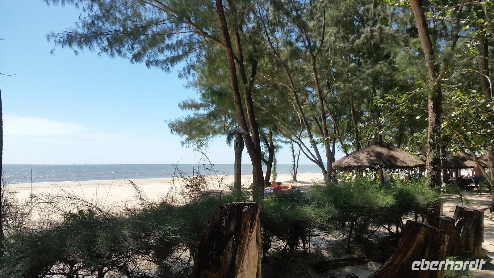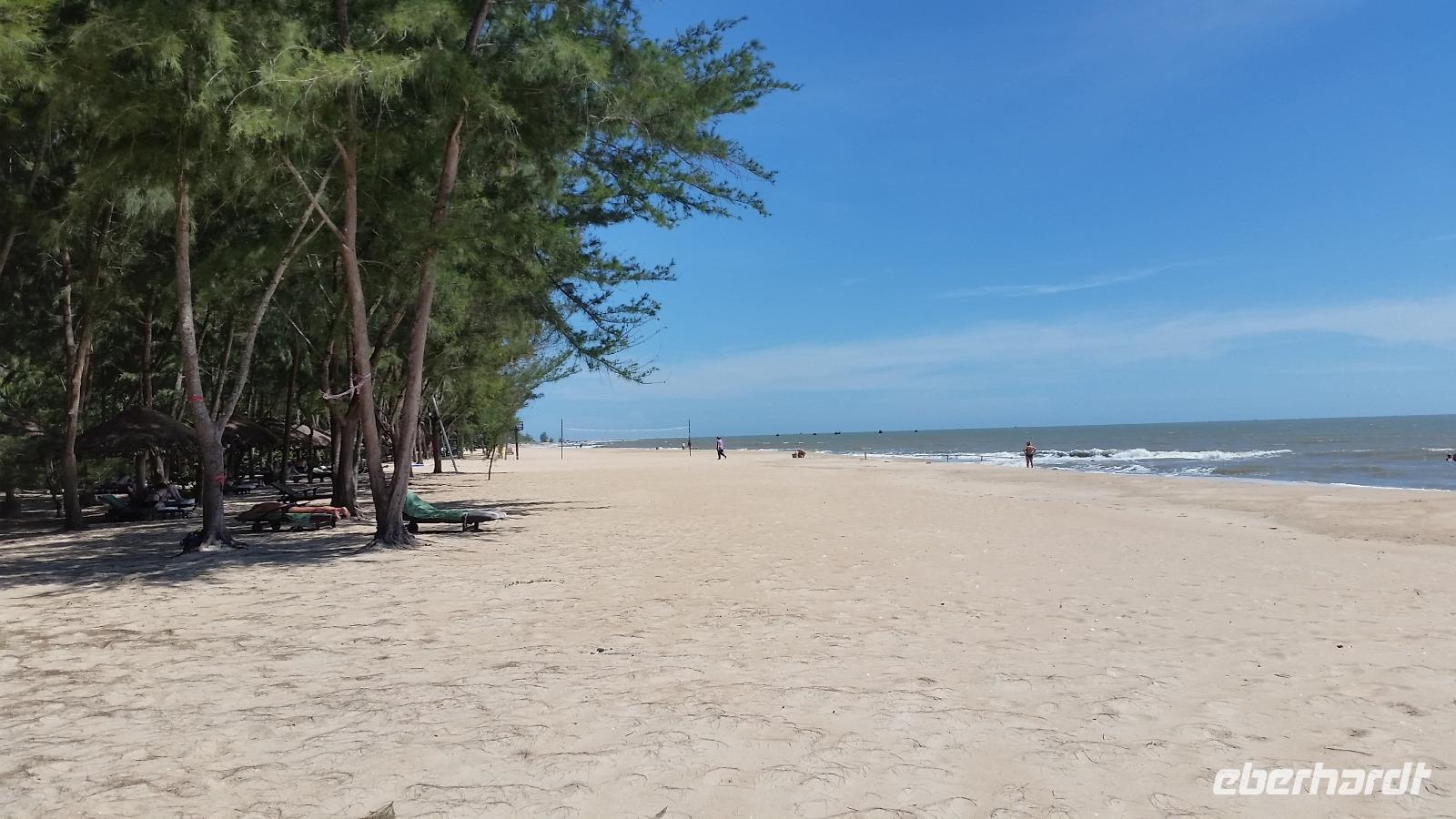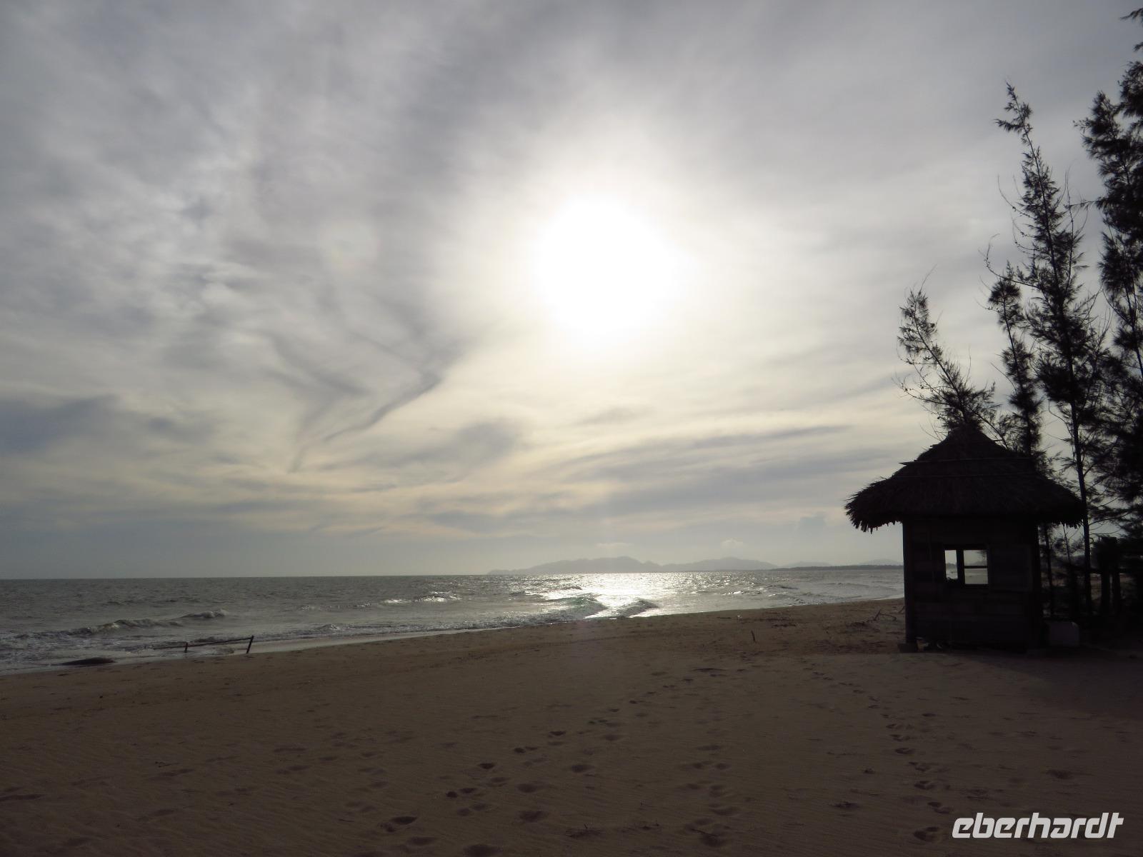Danach fuhren wir weiter über den Wolkenpass in Richtung Hoi An. Doch ehe wir dort ankamen mussten wir, nachdem die ersten warmen Sonnenstrahlen durch die Wolkendecke blinzelten einfach am schönen Strand von Da Nang halten! Wie ein Honigkuchenpferd freuten wir uns über diesen schönen Anblick und posierten freudestrahlend im Sand.