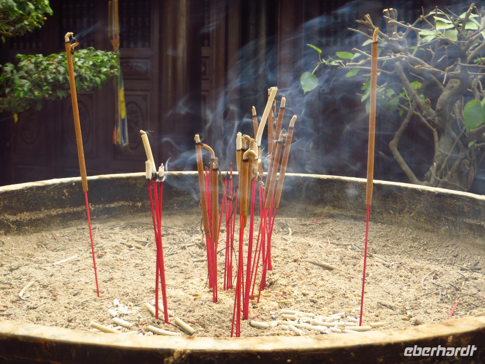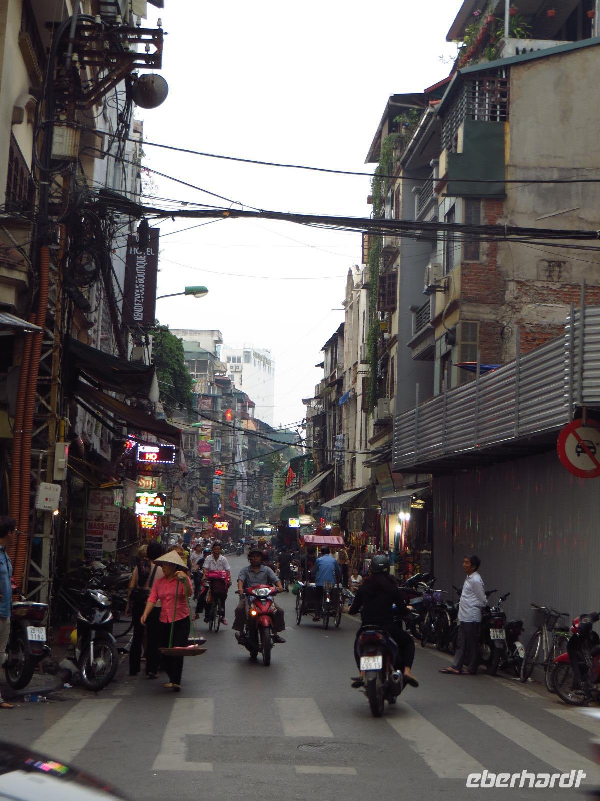 Mit dem Bus ging es für uns zunächst in die Innenstadt. Hierbei handelt es sich allerdings nicht um eine gewöhnliche Busfahrt. Das Leben in Hanoi spielt sich auf den Straßen ab und so ist man nur mit „Gucken" beschäftigt. Einfach großartig wie die ganze Familie an der Straßenecke zusammensitzt, kocht und über das Leben philosophiert, während 2 Meter weiter einer Person eine neue Frisur verpasst wird oder man akrobatische Kunststücke aufführt.