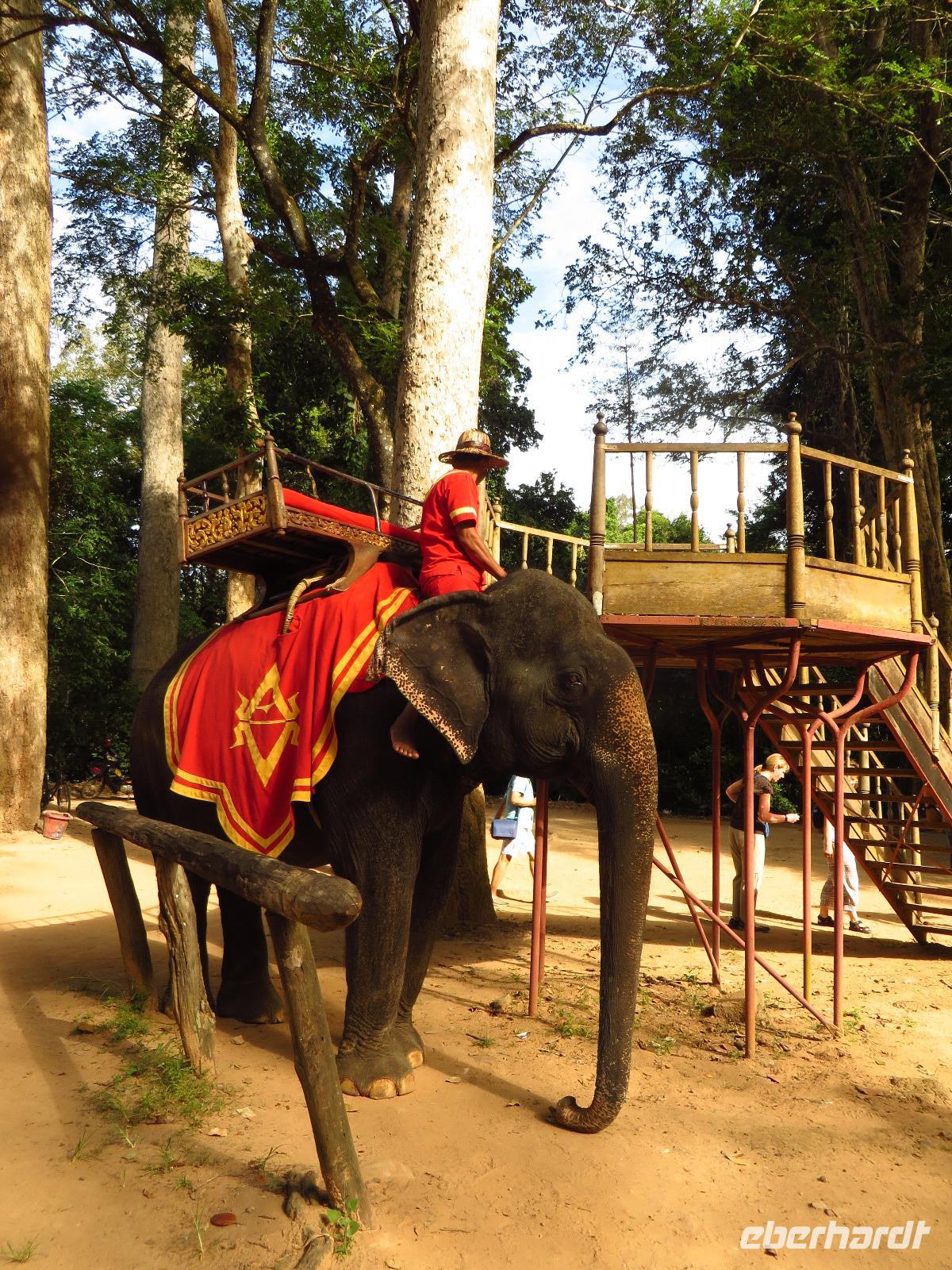Auch an dem heutigen Tag widmeten wir uns wieder den märchenhaften Tempelanlagen Kambodschas. Doch bevor wir diese betraten genossen wir einen königlichen Elefantenritt um den Tempel Angkor Thom.