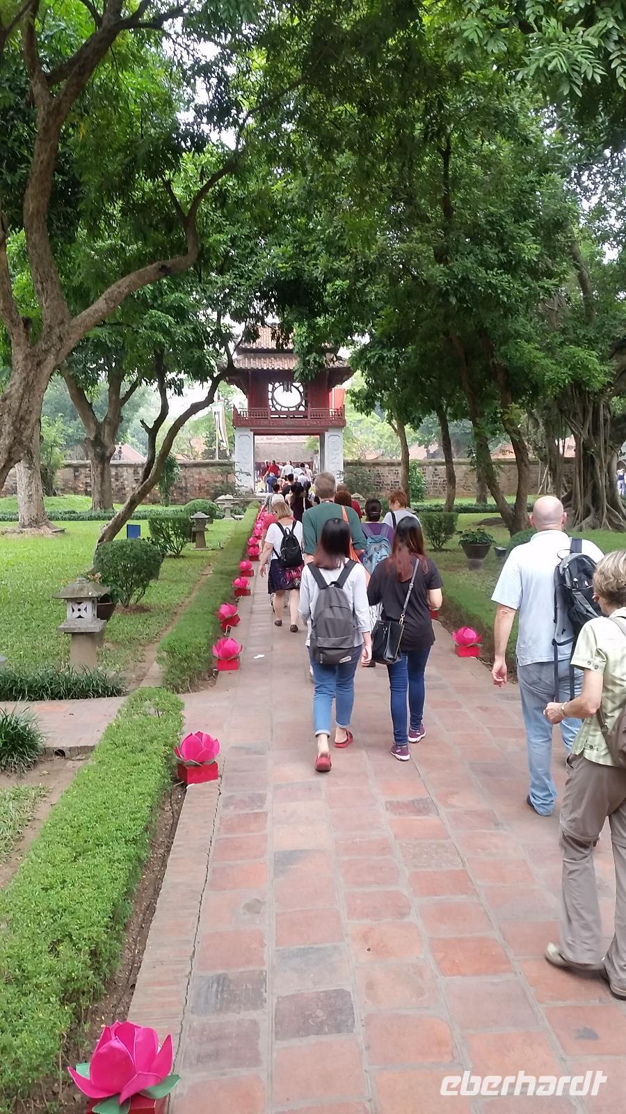 Heute lernten wir viele wunderschöne Orte kennen. Als erstes das Mausoleum von Onkel Ho, bei welcher allerdings ein reges Treiben herrschte, da man indischen Staatsbesuch erwartete. Als nächstes lernten wir die sagenumwobene Einsäulenpagode kennen, ein Bauwerk in Form einer Lotusblüte. Weiter ging es in den Literatur Tempel, in welchem einige vietnamesische Studenten und Studentinnen in Ihren schönsten Festkleidern Ihren Abschluss zelebrierten. Was für ein Timing für uns! In einem lokalen Restaurant kosteten wir zum ersten Mal die typisch vietnamesische Suppe Pho, entweder mit Huhn (Bo) oder mit Rind (Ga). Was für ein Genuss!