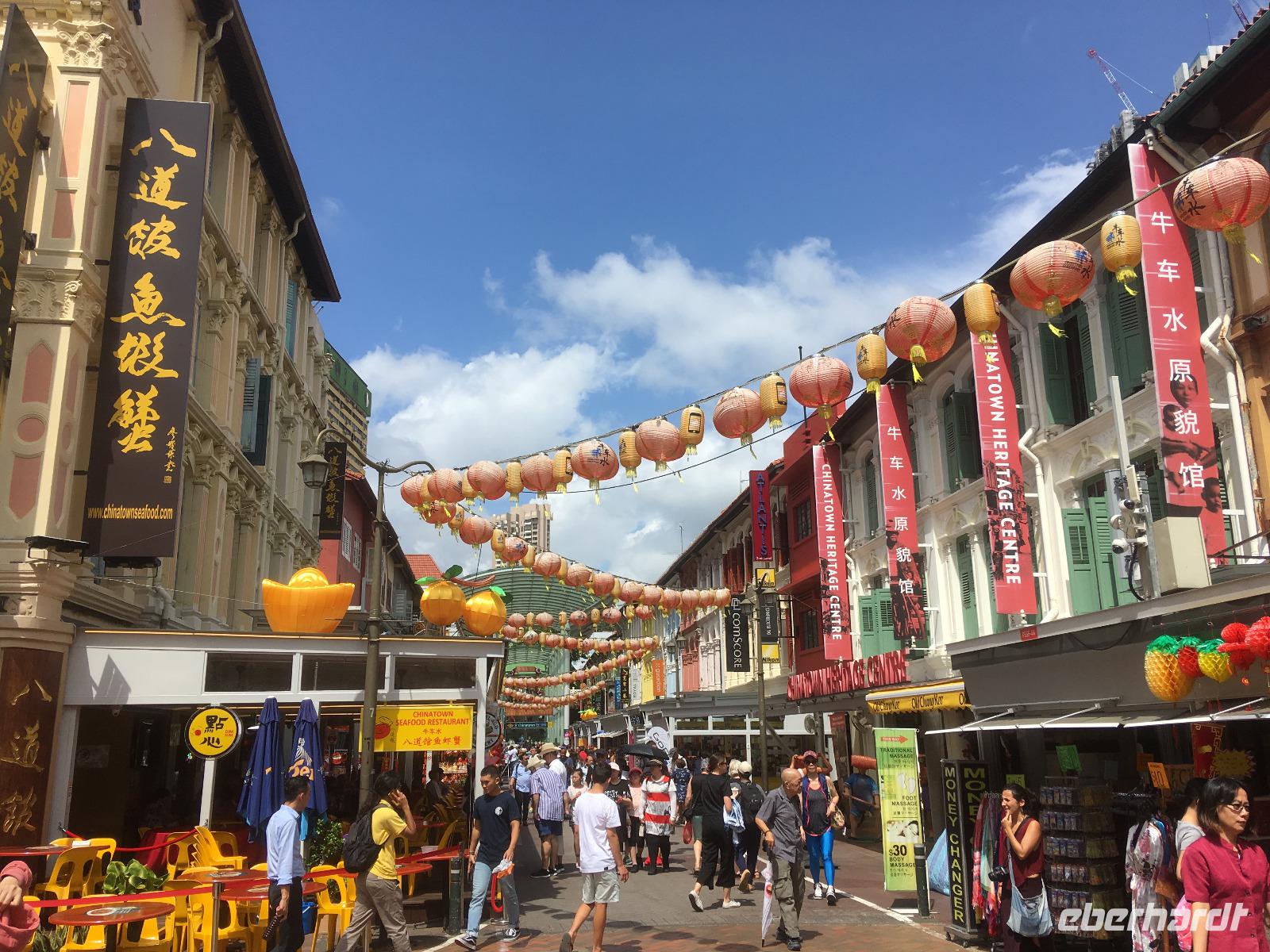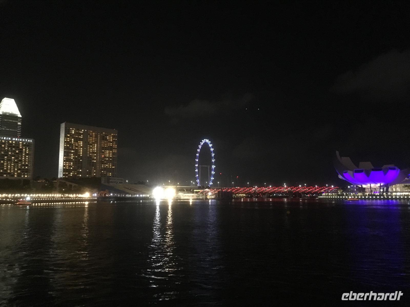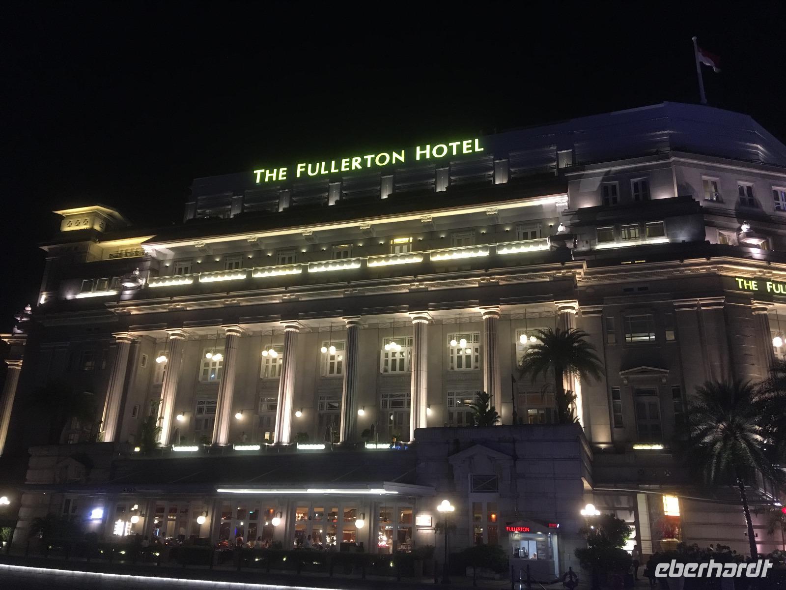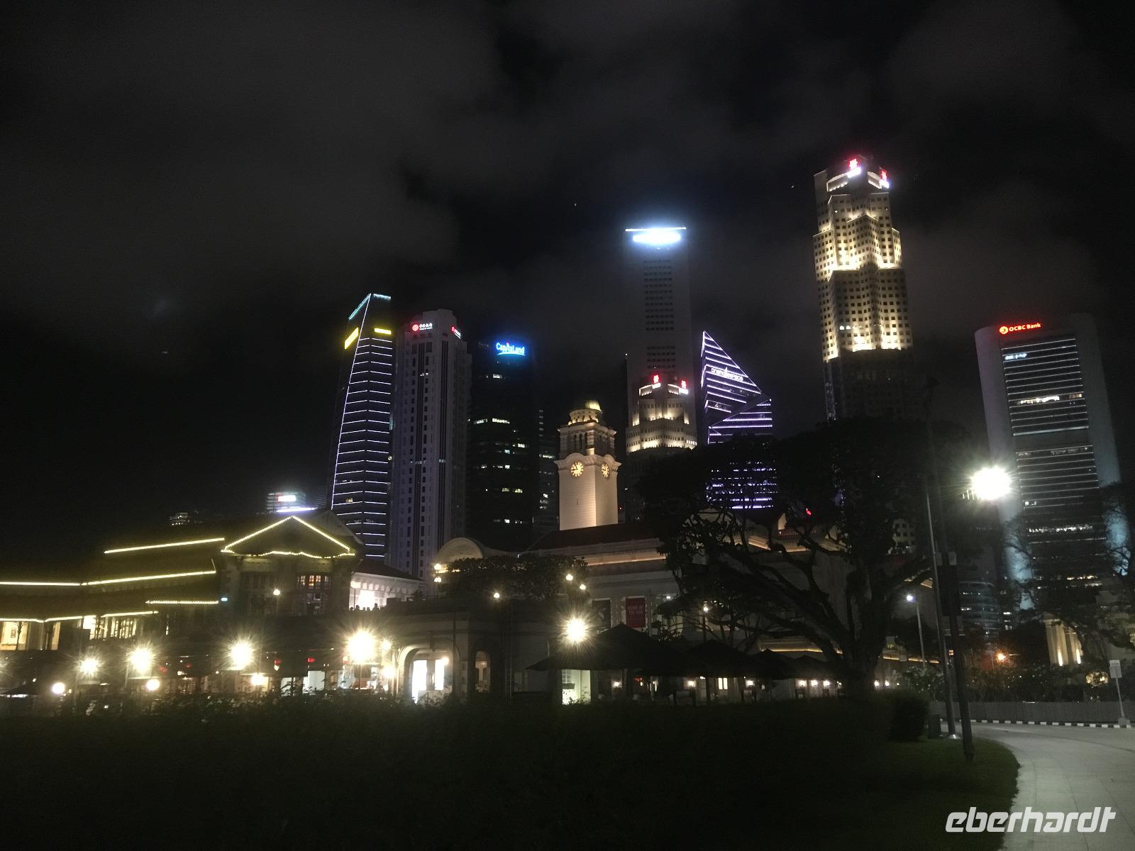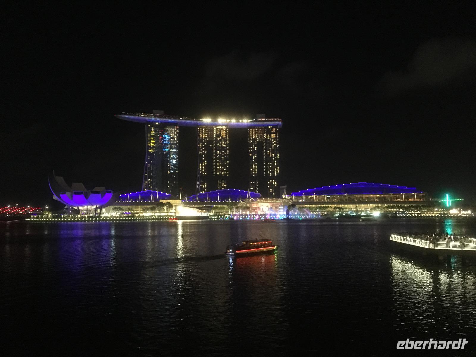Bei dieser schönen Traumreise nach Australien und in die Südsee treffe ich fast alle meine Gäste auf dem Flughafen in Frankfurt. Das Zusammenfinden ist sehr leicht, da wir uns am Abfluggate alle instinktiv nicht weit voneinander entfernt gesetzt haben. In Singapur legen wir eine Zwischenübernachtung ein, damit wir uns schrittweise an den großen Zeitunterschied gewöhnen können. Außerdem hat die ehemalige britische Kolonie, die 1963 unabhängig wurde, wahrlich genug Sehenswürdigkeiten zu bieten, was allein schon den Aufenthalt rechtfertigt. Als wir nach gut 11,5 Stunden Flugzeit in Singapur ankommen, ist es dort schon fast Abend. Von unserem örtlichen Reiseleiter Vincent werden wir nach der problemlosen Einreise auf dem Changi Airport herzlich in Empfang genommen und zum Hotel begleitet. Dieses liegt zentral in der Innenstadt, nicht weit von der Nationalgalerie entfernt. Es ist natürlich für uns ein ganz schöner Temperaturunterschied - vom Winter in Deutschland mit Temperaturen etwas über null Grad auf noch immer 30 Grad am Abend bei hoher Luftfeuchtigkeit. Bereits auf der Fahrt zum Hotel können wir den für mich immer wieder beeindruckenden Mix aus alten Kolonialbauten und moderner Architektur bewundern. Fast alle meine Gäste auf dieser Reise waren schon einmal in Singapur und haben daher schon eigene Pläne für den Abend geschmiedet. Ein Spaziergang am Ufer des Singapore River zum Merlion, dem Wahrzeichen der Stadt, und zur Lichter-/Lasershow vor dem Marina Bay Sands Hotel gehört aber für die Mehrheit dazu. Mit Einbruch der Dunkelheit scheint der Inselstaat zu neuem Leben zu erwachen. Es ist Sonntagabend, die Leute sind auf den Straßen und stürzen sich ins Nachtleben. Wir machen aber nicht durch bis morgen früh, denn es war für uns alle doch ein anstrengender Tag mit einem langen Flug. So freuen wir uns auf unsere Hotelbetten und die Stadtrundfahrt am nächsten Vormittag.