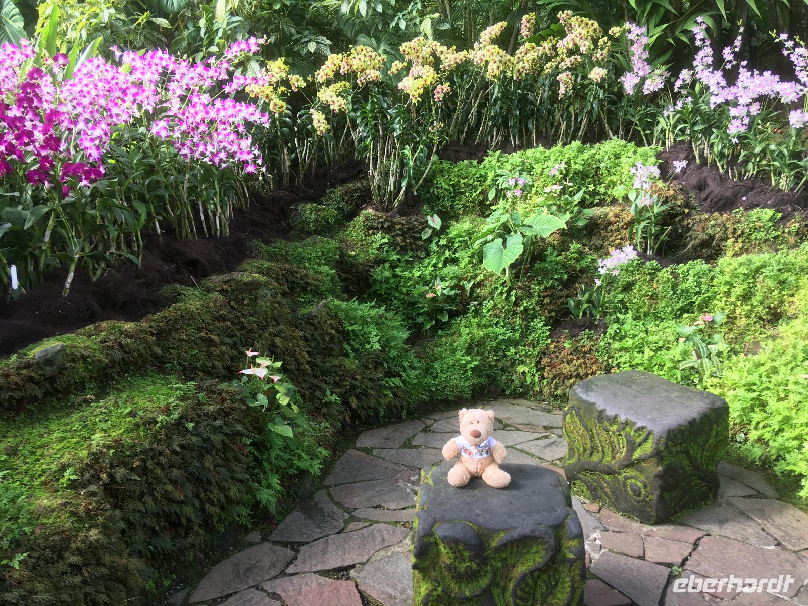 Nach dem Frühstück erwartet uns Vincent zur Stadtrundfahrt. Er hat sich für uns ein buntes Programm mit einem Mix aus Natur und Kultur überlegt. Zuerst möchte er uns den berühmten Orchideengarten zeigen, der Teil des Botanischen Gartens von Singapur ist. Hier werden auch ganz besondere Arten gezüchtet und präsentiert, wenn hochrangige Staatsgäste zu Besuch kommen. Im kunterbunten indischen Viertel laufen die Vorbereitungen für ein großes Erntefest, bei dem Stiere eine wichtige Rolle spielen. Wirkt die indische Kultur auf uns sowieso schon sehr bunt, ausschweifend und lebensbejahend, so verstärkt die reiche Dekoration diesen Eindruck noch zusätzlich. Am Merlion, dem Wahrzeichen von Singapur, können wir die Skyline und die Aussicht auf das Marina Bay Sands Hotel und das Riesenrad, den Singapore Flyer, bewundern. Auch in Chinatown laufen langsam die Vorbereitungen für eine große Festivität an - das Chinesische Neujahrsfest. Überall können wir kleine Glücksschweinchen kaufen, denn im Februar beginnt das Jahr des Schweins. Wir besichtigen außerdem den größten buddhistischen Tempel in Singapur mit einer riesigen Buddha-Statue. Singapur ist eine sehr faszinierende Stadt: sie ist ein Schmelztiegel der Kulturen, verbindet Traditionen mit moderner Lebensweise. Singapur ist ein flächenmäßig winziger Staat, doch wir fühlen uns nie beengt. Nach der schönen Stadtrundfahrt haben wir noch Zeit, weitere Erkundungen auf eigene Faust anzustellen. Mit zwei Gästen zieht es mich zum Marina Bay Sands Hotel und anschließend zu den Gardens by the Bay. Die Fahrt mit der U-Bahn zurück zum Hotel ist ebenfalls ein kleines Erlebnis. Am späten Nachmittag erfolgt der Transfer zurück zum Flughafen und wir setzen unsere Reise mit Singapore Airlines nach Australien fort.