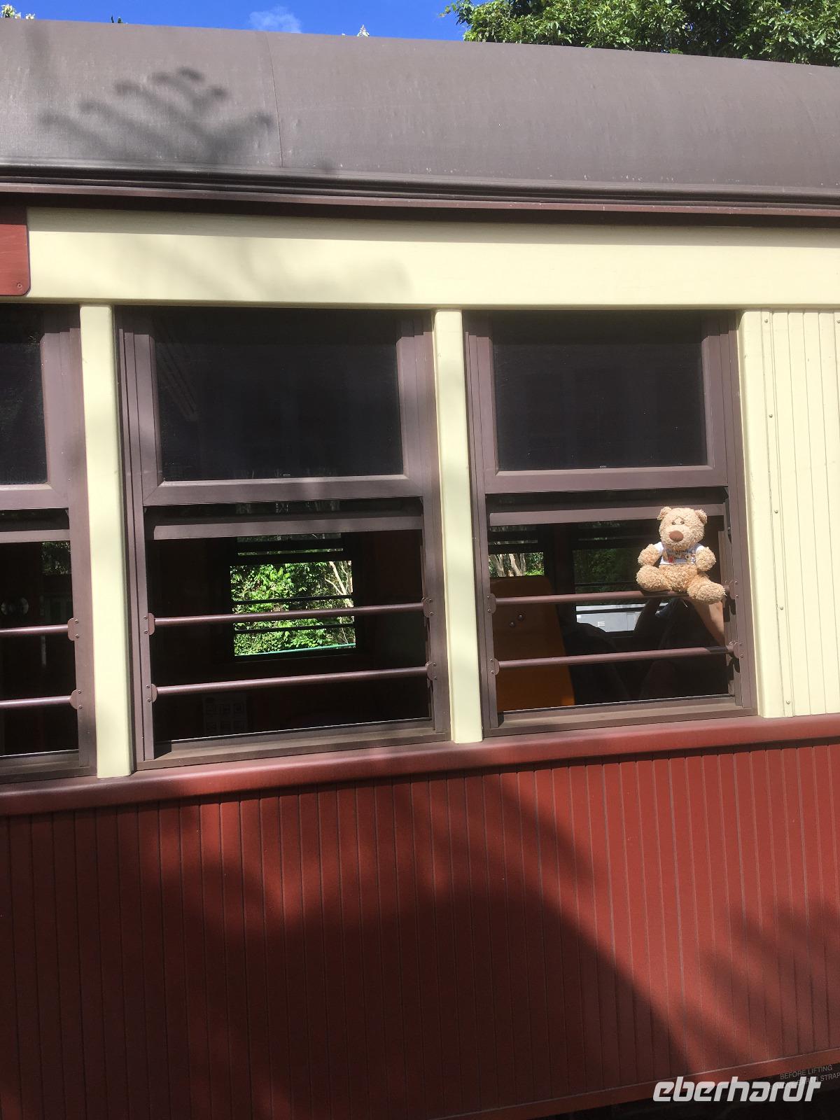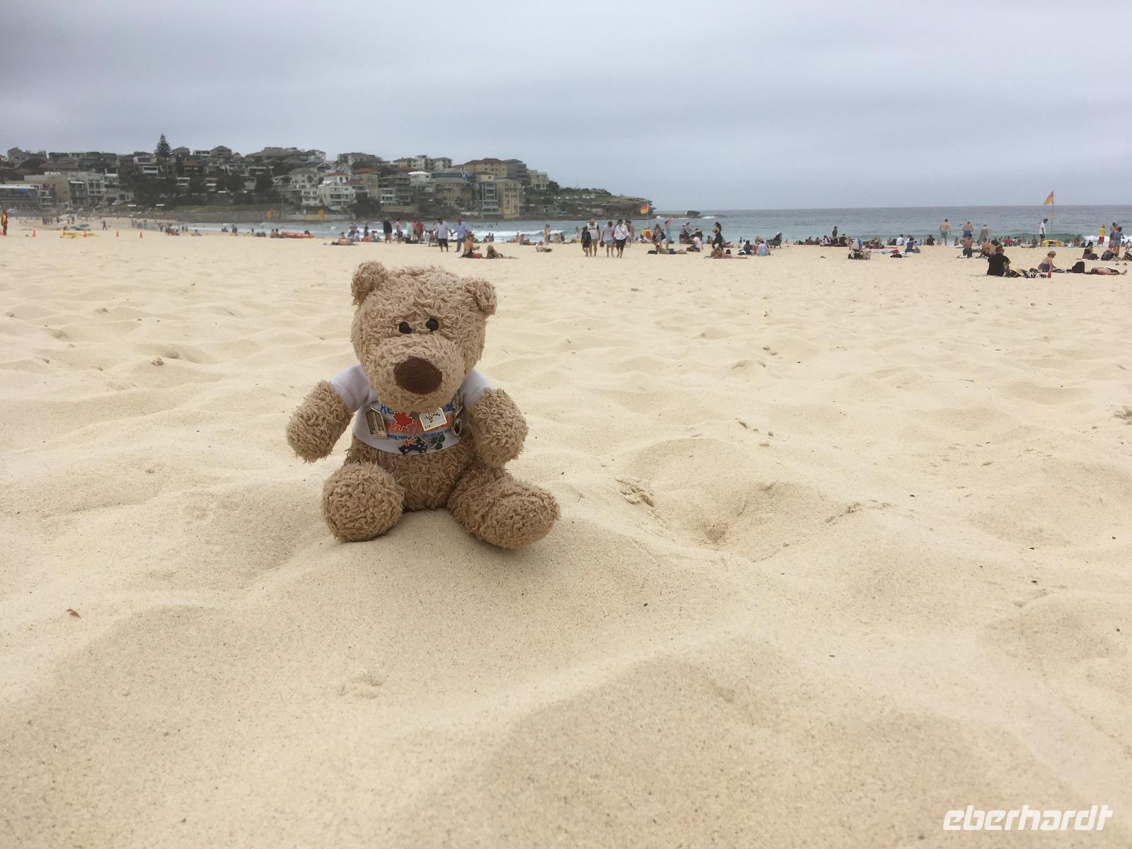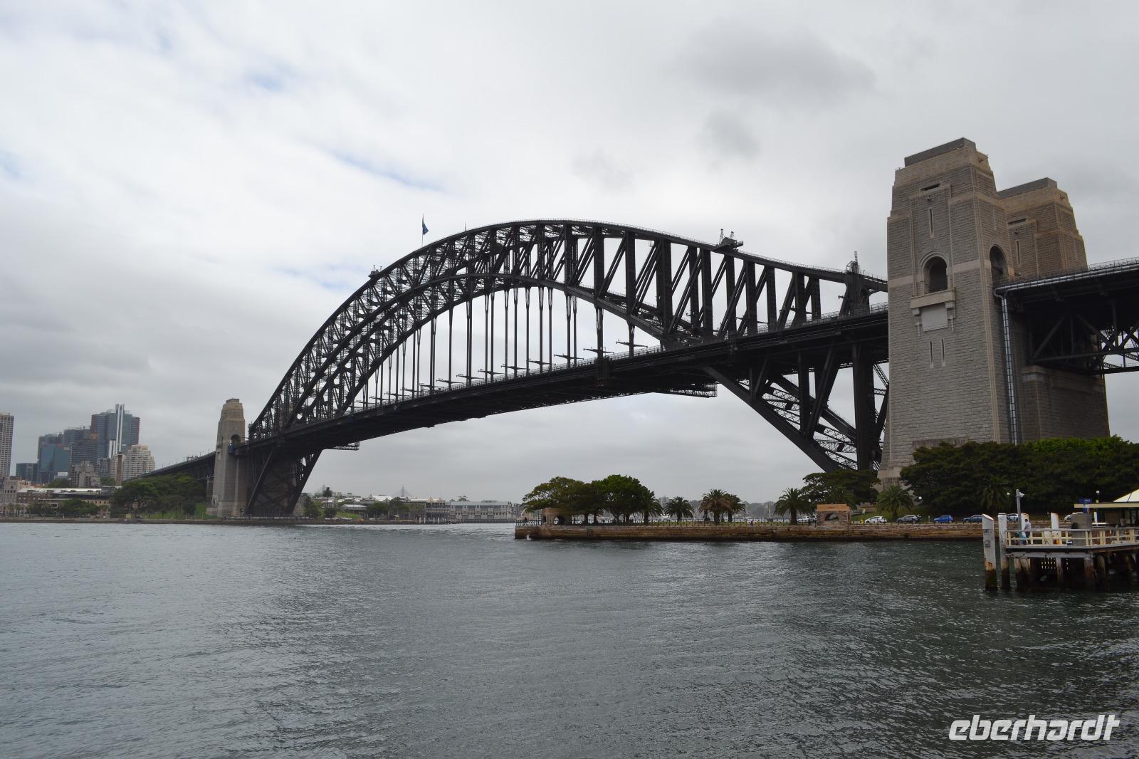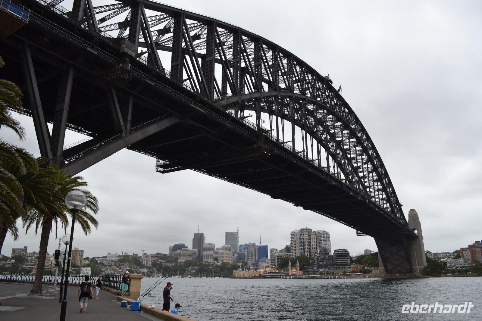 Unsere Uli erwartet uns am nächsten Morgen schon aufgeregt in der Lobby des Hotels, denn sie möchte uns natürlich auf der halbtägigen Stadtrundfahrt unbedingt ihre Wahlheimat am anderen Ende der Welt zeigen. Wir beginnen im ältesten Stadtviertel, The Rocks, in dem es noch viele historische Häuser und vor allem Pubs gibt. Dann halten wir mit dem Bus unter dem wohl berühmtesten „Kleiderbügel" der Welt, der Harbour Bridge, und gehen zu einem Aussichtspunkt, von dem aus wir das Opernhaus fotografieren können. Zwei so markante, auf ihre eigene Art wunderschöne Bauwerke, die gemeinsam einen Kontinent repräsentieren, das gibt es nur hier, in Sydney. Sie merken, ich gerate ins Schwärmen, denn ich erinnere mich auf dieser Stadtrundfahrt an meine eigene erstmalige Ankunft in Australien Ende Oktober 2012. Ungläubig habe ich damals beide Wahrzeichen angestarrt und bin traumwandlerisch über die Harbour Bridge spaziert. Mehr oder weniger entlang des Wassers arbeiten wir uns durch den Botanischen Garten bis zur Hafeneinfahrt, d. h. der Mündung des Port Jackson in den Pazifik vor. Hier werden wir übermorgen mit dem Schiff durchfahren und zu unserer Kreuzfahrt zu den Fidschi-Inseln aufbrechen. Am berühmten Bondi Beach machen wir eine kleine Kaffeepause und durchqueren dann mehrere historische Stadtviertel, bevor wir die Stadtrundfahrt in der Nähe des Kreuzfahrtterminals beenden. Während zwei Gäste einen Hubschrauberflug über Sydney unternehmen, überquere ich dann mit allen anderen Gästen tatsächlich die Harbour Bridge. 1932 wurde sie offiziell eröffnet, nach acht Jahren Bauzeit. Von der Brücke aus kann man das Opernhaus und auch das Stadtzentrum um den Circular Quay besonders gut fotografieren. Mit den Tickets, die wir von Uli erhalten haben, fahren wir mit der Fähre vom Luna Park zum Darling Harbour. Hier trennen sich unsere Wege vorerst, bevor wir uns am Abend wieder zusammenfinden, um über den Dächern von Sydney, auf der Dachterrasse des Glenmore Hotel, ein großes Ereignis zu feiern: Die Taufe meines kleinen Eberhardt-Reisebären. Von nun an trägt er denselben Namen wie unser Busfahrer - Max.