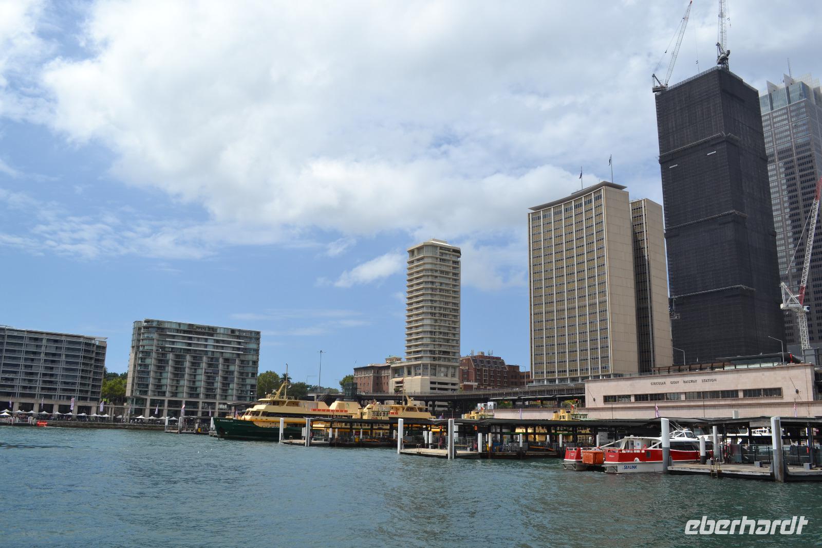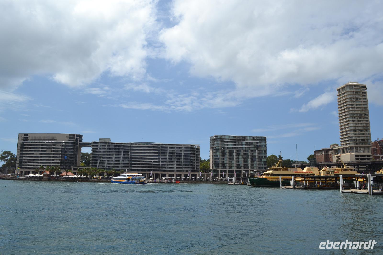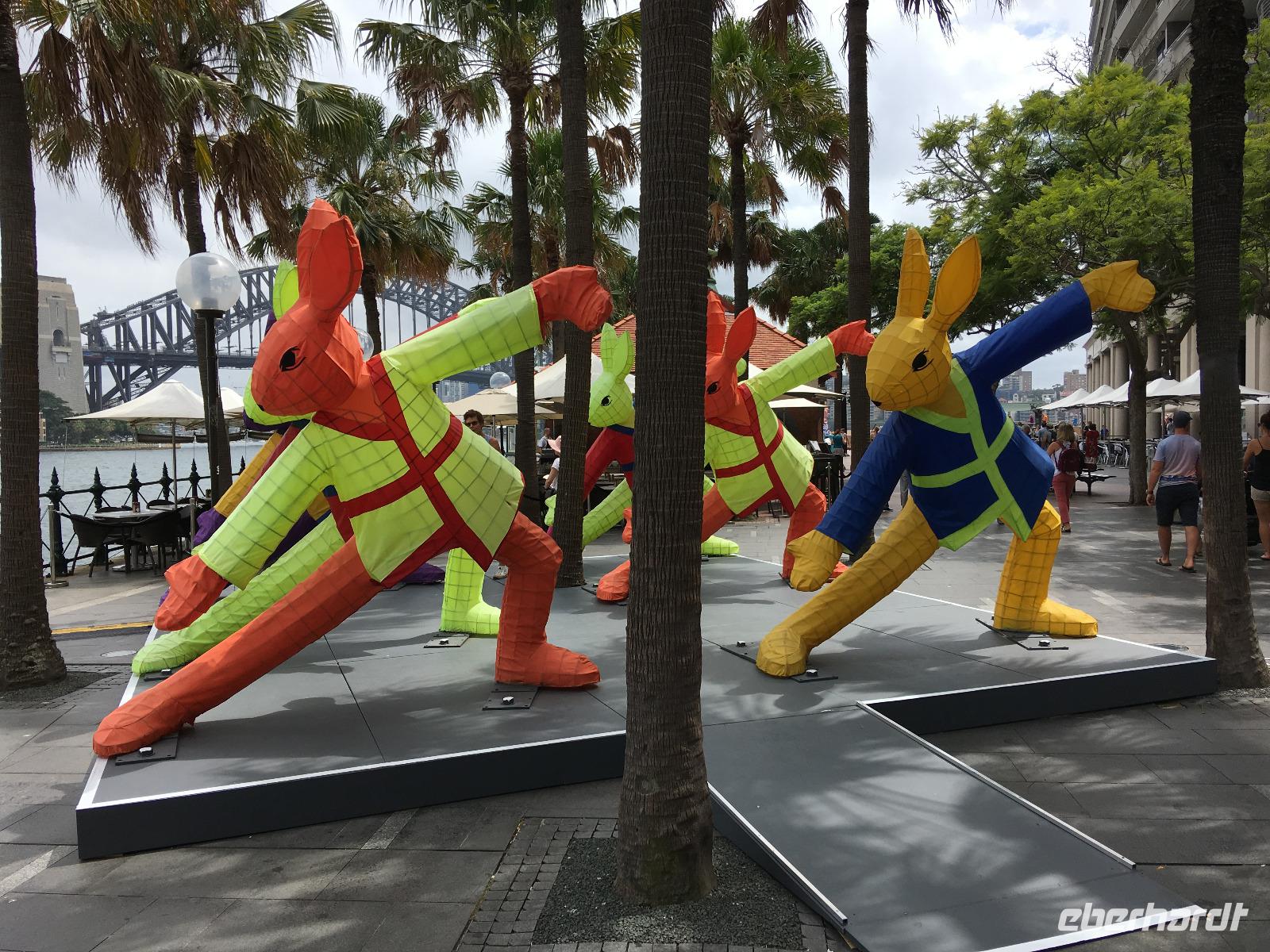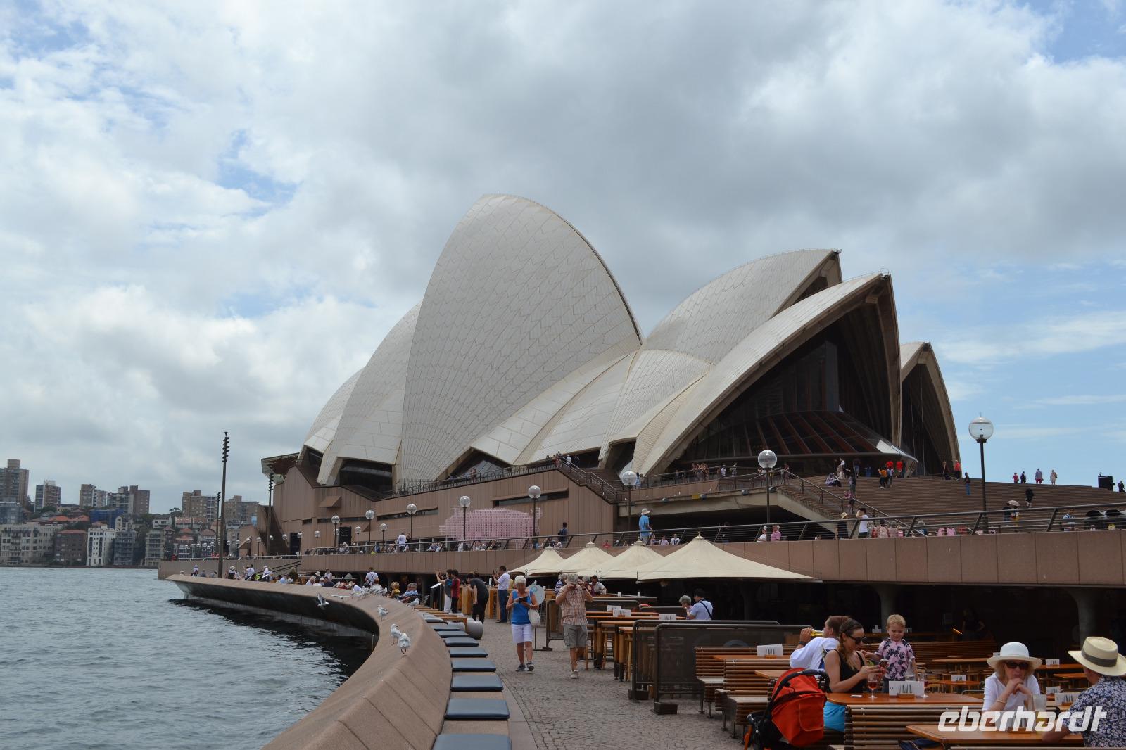 Im Morgengrauen legt die Sun Princess wieder am Überseeterminal in Sydney an. Als wir von Bord gehen und unser Gepäck an unseren Busfahrer Max übergeben, der uns am Terminal trifft, überkommt uns ein Gefühl der Wehmut und der Wunsch, doch noch etwas weiterzureisen. Neuseeland, das nächste Ziel unseres Schiffes? Oder noch ein paar Tage Tasmanien? Oder nach Melbourne! Nur nach Hause, nach Deutschland will niemand so richtig (freiwillig). Immerhin bleiben uns noch drei Stunden in der größten Stadt Australiens, bevor wir zum Flughafen müssen. Wir nutzen die Zeit, um uns das Opernhaus aus der Nähe anzuschauen. Das imposante Bauwerk, ein Entwurf des dänischen Architekten Jørn Utzon, ist mit über 1,1 Millionen Keramikfliesen verkleidet, die im Glanz der Sonne wie Spiegel zu glänzen scheinen. Das Innere mag einige Besucher enttäuschen, denn es ist viel nackter Beton zu sehen. Im Jahr 1957 war der markante Entwurf jedoch geradezu revolutionär. Auf dem Weg zum Treffpunkt betrachten und fotografieren wir die Skulpturen, die anlässlich des Chinesischen Neujahrsfestes rund um den Circular Quay aufgebaut sind. Mit einem Spaziergang durch The Rocks, das älteste Stadtviertel, erreichen wir dann die Bushaltestelle unterhalb der Harbour Bridge, an der unser Busfahrer Max schon auf uns wartet.