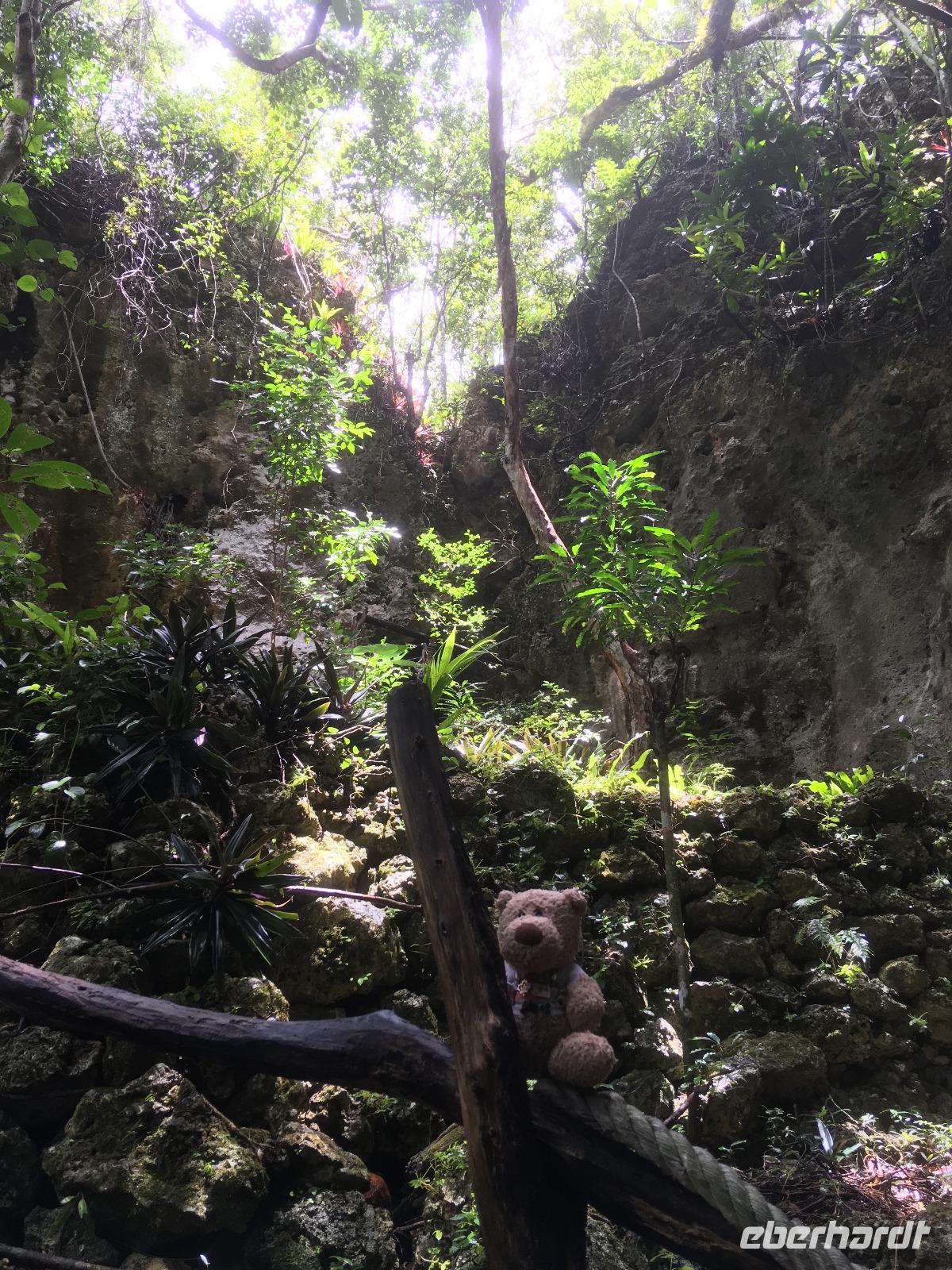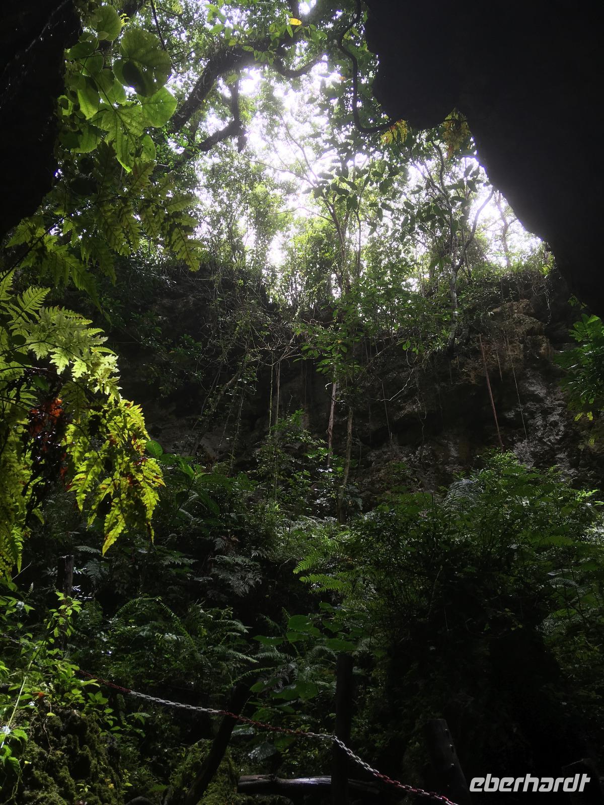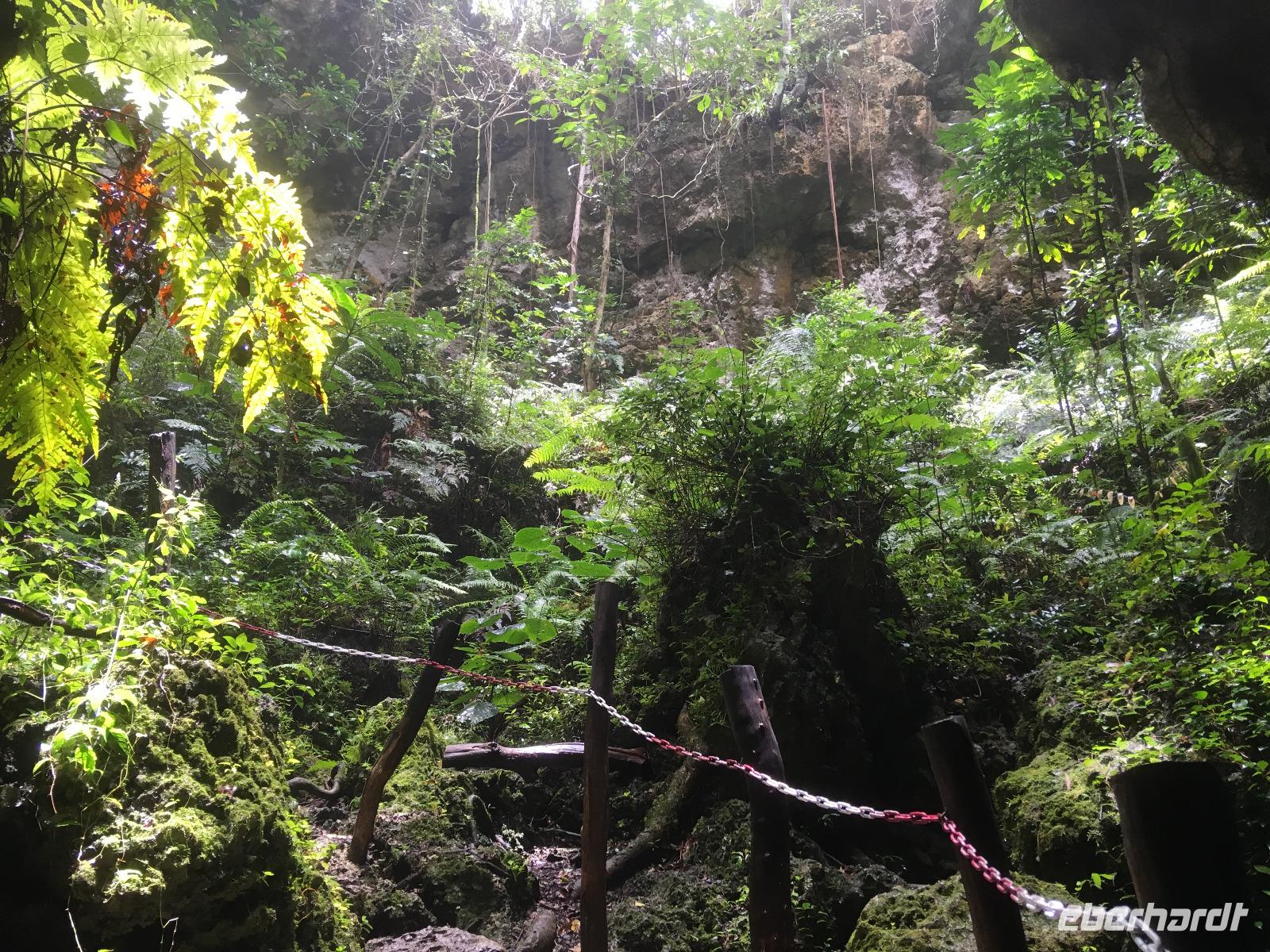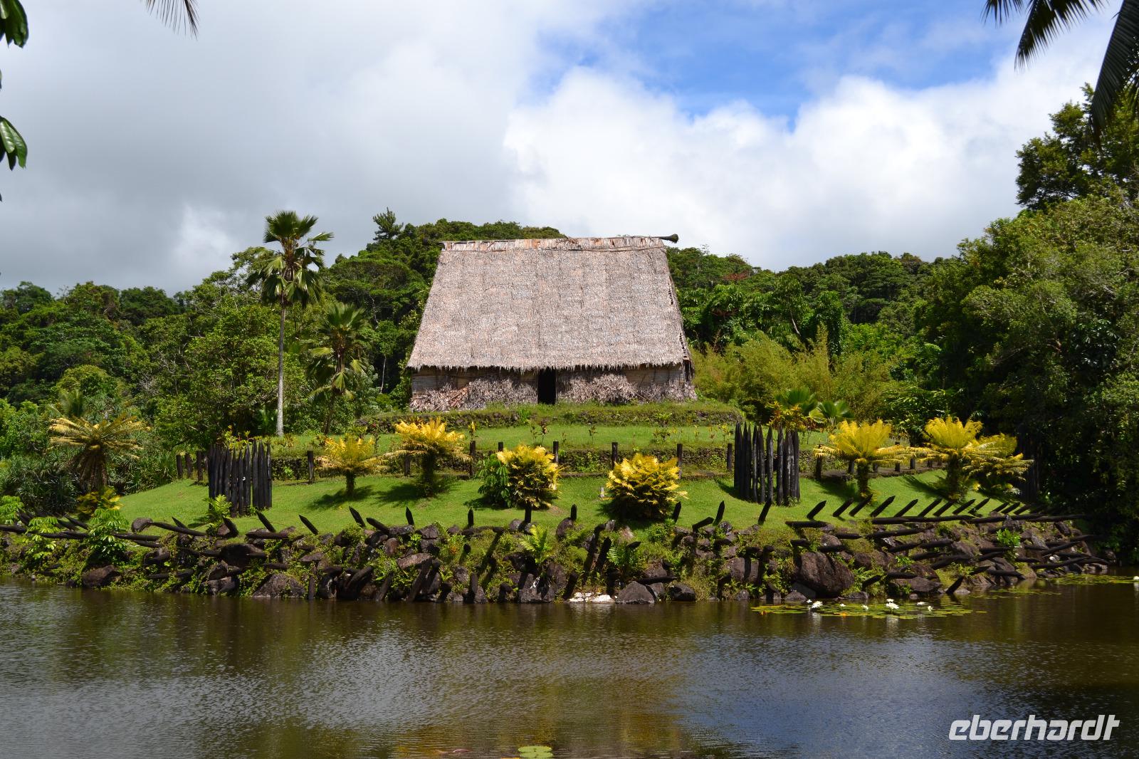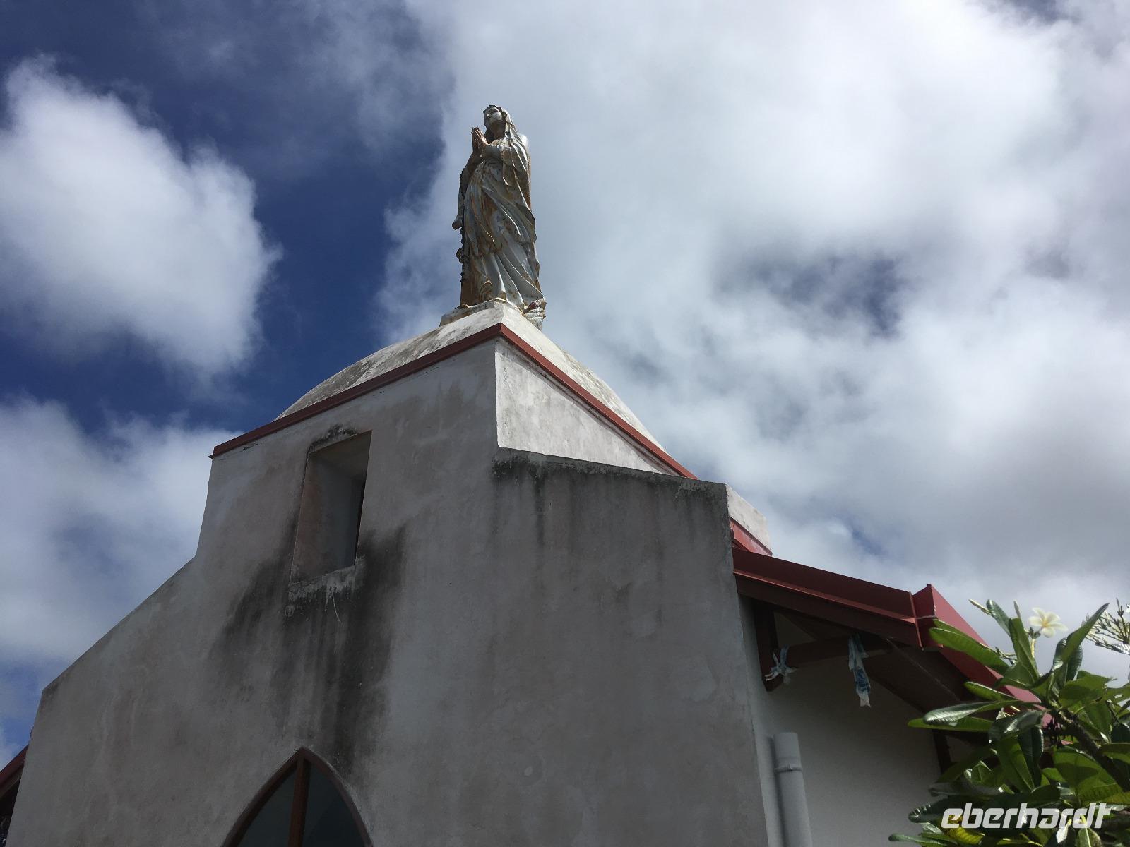 Nach 657 Seemeilen sind wir zurück in Neukaledonien. Lifou ist ein Korallenatoll und die größte der Loyalitätsinseln, die höchstwahrscheinlich nach einem britischen Handelsschiff, der Loyalty, benannt wurden. Nicht einmal 10.000 Menschen wohnen hier, in diesem Südsee-Paradies. Sie sollen aber alle mit Christian Karembeu mehr oder weniger direkt verwandt sein, dem ehemaligen französischen Nationalspieler, der hier als Volksheld verehrt wird. Ich kann nur meine eigenen Eindrücke von unserem letzten Landausflug auf dieser Kreuzfahrt wiedergeben, denn dank des heute sehr missmutig gelaunten Wettergottes werde ich von meiner Reisegruppe getrennt. Während es sich meine Reisegäste am Strand gemütlich machen bzw. zu ihrer Shore Excursion aufbrechen, unternehme ich einen Spaziergang zur Erkundung der näheren Umgebung, sozusagen als Kundschafter für Eberhardt TRAVEL. Mein Weg führt mich zunächst zur kleinen Kapelle Notre Dame de Lourdes, die malerisch auf einer Klippe thront. Die Aussicht von hier auf die Baie de Sandal, in der unser Schiff wie ein kleines Spielzeugboot wirkt, übertrifft sogar meine Erwartungen. In der Baie de Jinek liegt das Aquarium naturel de Lifou, ein Korallenschutzgebiet mit einem schönen Schnorchel-Parcours. Auf dem Weg zurück zur Anlegestelle gerate ich in den ersten heftigen Regenschauer an diesem Tag. Zum Glück kann ich mich an einem alten Stand am Straßenrand unterstellen. Der Strand ist bei meiner Rückkehr fast menschenleer, auch meine Gäste sind wie vom Erdboden verschwunden. Ich treffe allerdings das australische Ehepaar, das abends neben uns im Restaurant sitzt und unterhalte mich ein bisschen mit ihnen. Dann breche ich in die andere Richtung auf, denn mir wurde der Besuch einer Tropfsteinhöhle hinter der Kirche St Francis Xavier empfohlen. Gemeinsam mit Max klettere ich die unebenen Stufen hinab und finde mich in einem dichten grünen Dschungel wieder. Ich fühle mich wie Indiana Jones, als ich die kleine Höhle erreiche, in der leider nicht die Bundeslade, sondern ein dunkles schwarzes Wasserloch auf mich wartet. Nun gut, man kann nicht jeden Tag einen Schatz finden, denke ich mir, und begebe mich zurück zum Strand. Auf dem Weg komme ich an mehreren traditionellen Hütten (Cases) der Einheimischen Kanak vorbei, die man besichtigen und fotografieren kann. Kurz bevor ich das rettende Tenderboot erreiche, öffnet der Himmel noch einmal alle Schleusen. Der Regen fällt so dicht, dass wir selbst die nun wirklich große Sun Princess nicht mehr sehen können, und warten müssen, bis er etwas nachgelassen hat. Das Wetter ist natürlich beim Abendessen das Gesprächsthema Nummer Eins, denn auch die Crew hat so einen heftigen Regenguss noch nicht erlebt. Meine beiden Gäste, die am Ausflug teilgenommen haben, schwärmen indes von der Vanillefarm und der Besichtigung der Klippen von Jokin. Nachdem uns unser Kellner Edwin beigebracht hat, wie man aus einer Stoffserviette eine kleine Maus zaubert, bricht an Bord der Sun Princess in den nächsten Tagen eine regelrechte Nagetier-Epidemie aus.