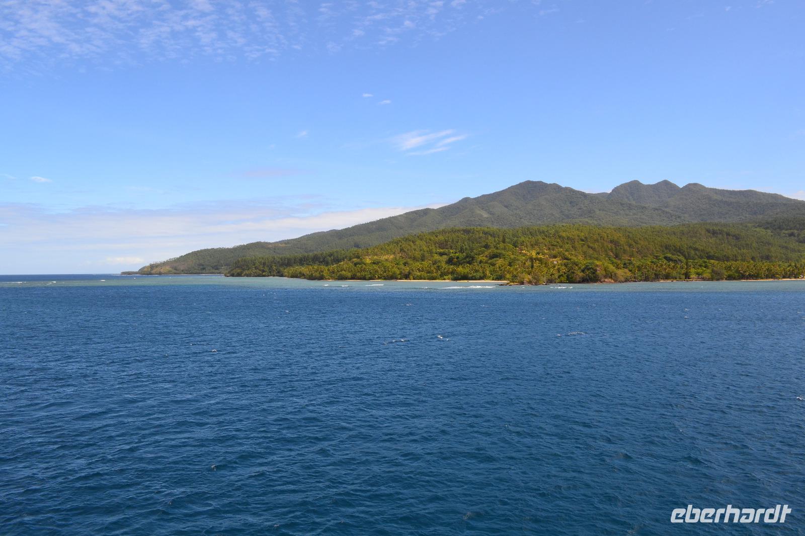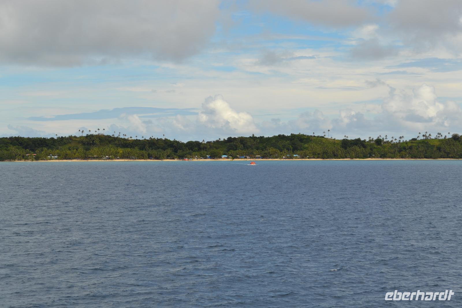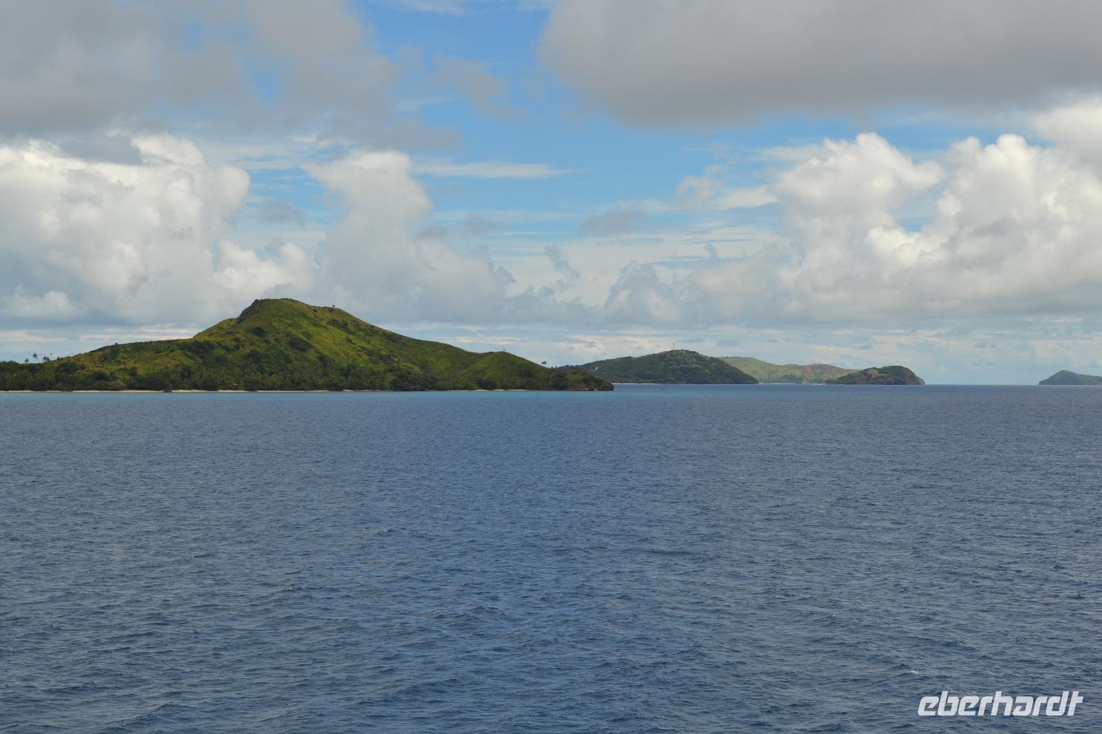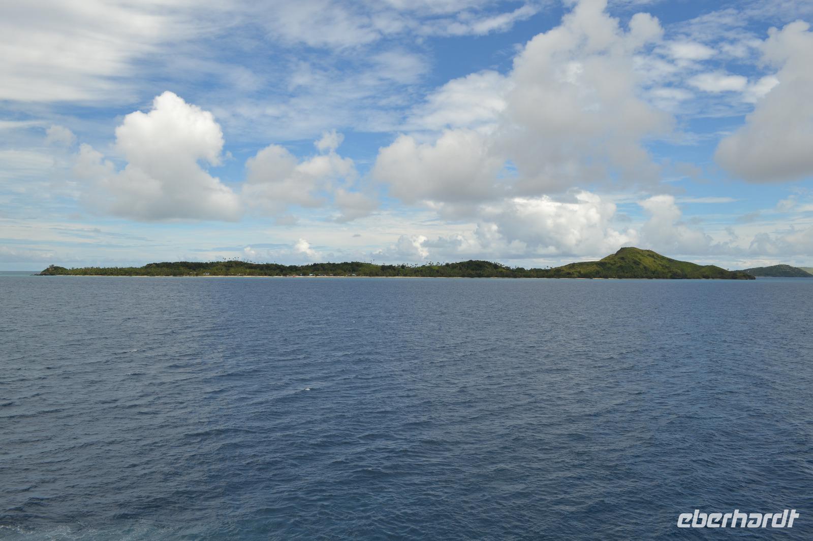Bula! Der typische Willkommensgruß der Fidschi-Inseln hallt uns überall entgegen, wo wir in den nächsten Tagen auf Einheimische treffen. Drei Inseln in Fidschi werden wir erkunden, und vielleicht ist es ganz gut, dass wir zuerst auf einer kleinen Insel an Land gehen, wo wir von den Einheimischen sehr herzlich begrüßt werden. Auf Dravuni Island leben nicht einmal 200 Menschen in einem winzigen Dorf. Wir dürfen die Grundschule besuchen, in der uns die Schulklassen mit fröhlichen Liedern empfangen. Die Schule wird mit Mitteln aus der australischen Entwicklungshilfe finanziert, weshalb es vor allem für die australischen Passagiere an Bord eine interessante Begegnung ist. Doch auch wir lassen uns von der Heiterkeit anstecken und erkunden die Insel, fotografieren die kleinen Ferkel und Hühner, weichen herabfallenden Kokosnüssen aus, beobachten am Strand kleine Krebse, die sich in ihrem Muschelhaus verstecken. Ein Pfad führt zur höchsten Erhebung, von der man einen tolle Aussicht über die ganze Insel hat. Auch zum Strand auf der anderen Seite der Insel führt ein Weg. Dort ist es zwar deutlich leerer, doch ab und zu stößt man schon auf Plastikmüll und ist damit wieder mittendrin in den aktuellen Zivilisationsproblemen. Der sehr saubere Badestrand entlang des Dorfes füllt sich hingegen immer mehr. Das inoffizielle Eberhardt-Wasserthermometer misst auch hier eine Temperatur von 27 Grad. Eine Schnorchelausrüstung ist sehr zu empfehlen, denn es gibt Korallen und viele kleine Fische zu bewundern. Die Einheimischen bieten Massagen, Getränke und kleine Speisen an - wir können übrigens bei jedem Landgang auf dieser Kreuzfahrt mit australischen Dollar bezahlen. Wer Glück hat, wird sogar in ein Haus eingeladen. Die technische Ausstattung der kleinen Pfahlhäuser ist wider Erwarten gut, auch wenn es für den europäischen Geschmack in den Innenräumen etwas karg aussieht. Aber das Leben spielt sich bei den warmen Temperaturen natürlich vor allem draußen ab. Auch wir genießen noch den Aufenthalt am Strand, bevor es mit den Tenderbooten zurück an Bord der Sun Princess geht.