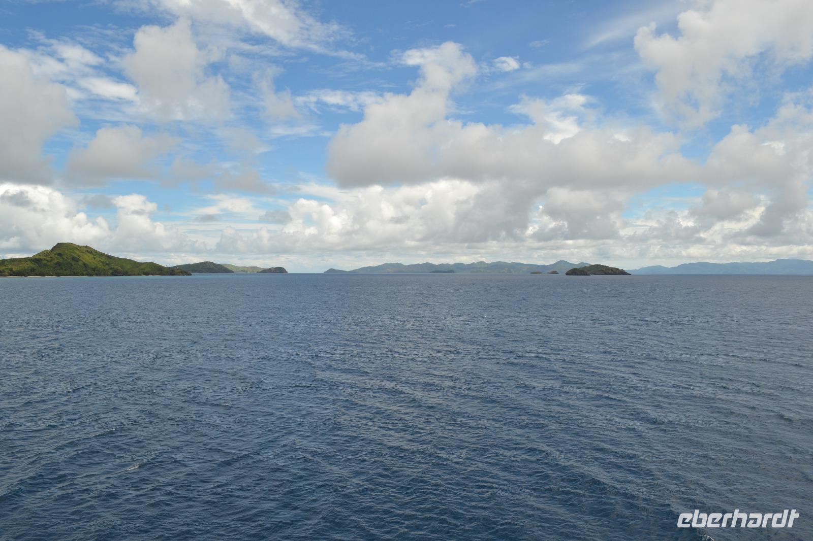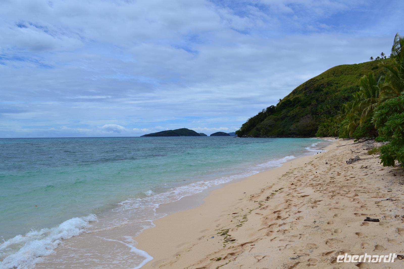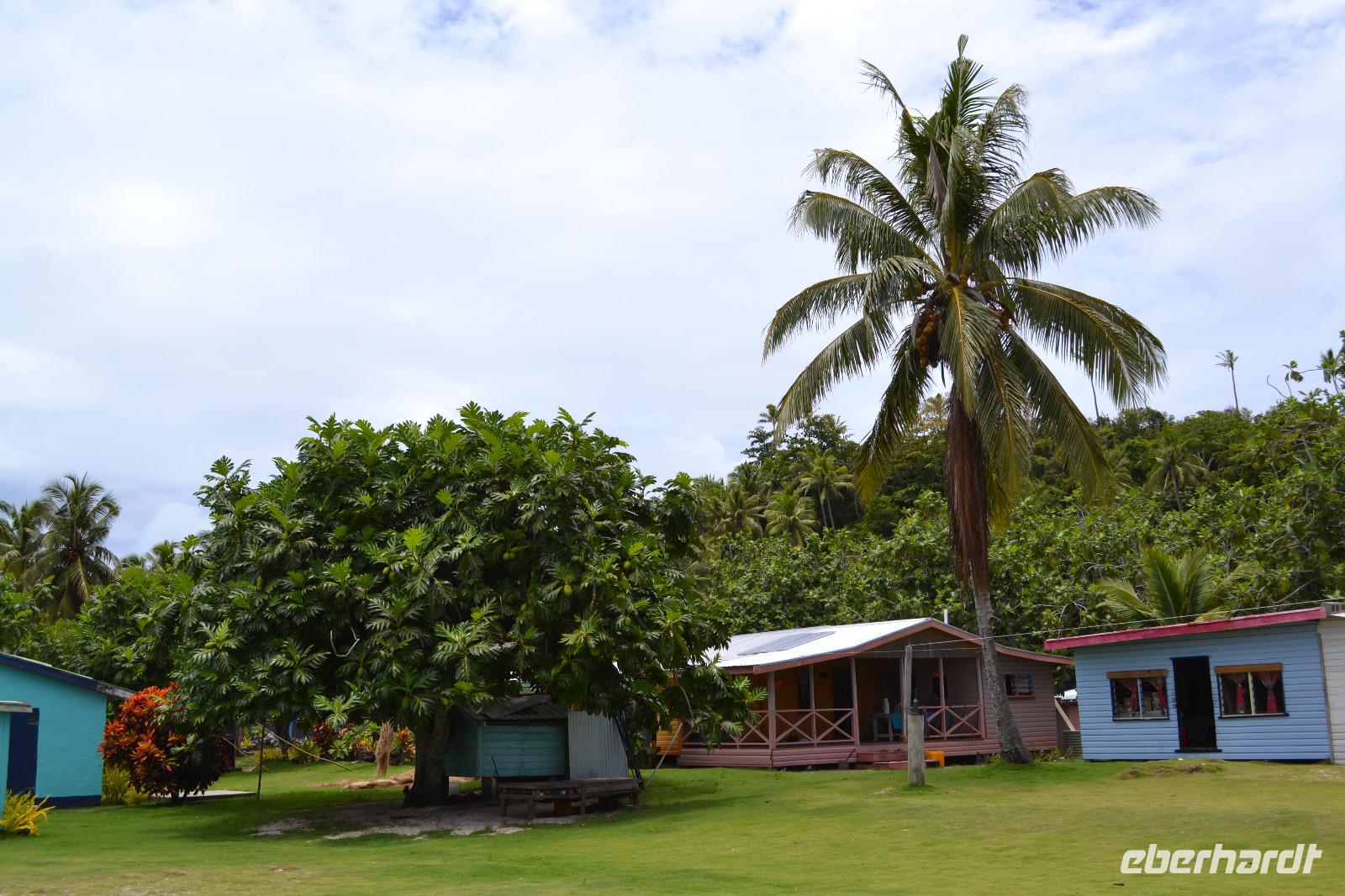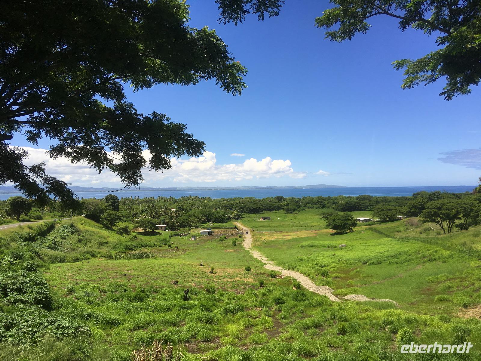 Bula! Der typische Willkommensgruß der Fidschi-Inseln hallt uns überall entgegen, wo wir in den nächsten Tagen auf Einheimische treffen. Drei Inseln in Fidschi werden wir erkunden, und vielleicht ist es ganz gut, dass wir zuerst auf einer kleinen Insel an Land gehen, wo wir von den Einheimischen sehr herzlich begrüßt werden. Auf Dravuni Island leben nicht einmal 200 Menschen in einem winzigen Dorf. Wir dürfen die Grundschule besuchen, in der uns die Schulklassen mit fröhlichen Liedern empfangen. Die Schule wird mit Mitteln aus der australischen Entwicklungshilfe finanziert, weshalb es vor allem für die australischen Passagiere an Bord eine interessante Begegnung ist. Doch auch wir lassen uns von der Heiterkeit anstecken und erkunden die Insel, fotografieren die kleinen Ferkel und Hühner, weichen herabfallenden Kokosnüssen aus, beobachten am Strand kleine Krebse, die sich in ihrem Muschelhaus verstecken. Ein Pfad führt zur höchsten Erhebung, von der man einen tolle Aussicht über die ganze Insel hat. Auch zum Strand auf der anderen Seite der Insel führt ein Weg. Dort ist es zwar deutlich leerer, doch ab und zu stößt man schon auf Plastikmüll und ist damit wieder mittendrin in den aktuellen Zivilisationsproblemen. Der sehr saubere Badestrand entlang des Dorfes füllt sich hingegen immer mehr. Das inoffizielle Eberhardt-Wasserthermometer misst auch hier eine Temperatur von 27 Grad. Eine Schnorchelausrüstung ist sehr zu empfehlen, denn es gibt Korallen und viele kleine Fische zu bewundern. Die Einheimischen bieten Massagen, Getränke und kleine Speisen an - wir können übrigens bei jedem Landgang auf dieser Kreuzfahrt mit australischen Dollar bezahlen. Wer Glück hat, wird sogar in ein Haus eingeladen. Die technische Ausstattung der kleinen Pfahlhäuser ist wider Erwarten gut, auch wenn es für den europäischen Geschmack in den Innenräumen etwas karg aussieht. Aber das Leben spielt sich bei den warmen Temperaturen natürlich vor allem draußen ab. Auch wir genießen noch den Aufenthalt am Strand, bevor es mit den Tenderbooten zurück an Bord der Sun Princess geht.
