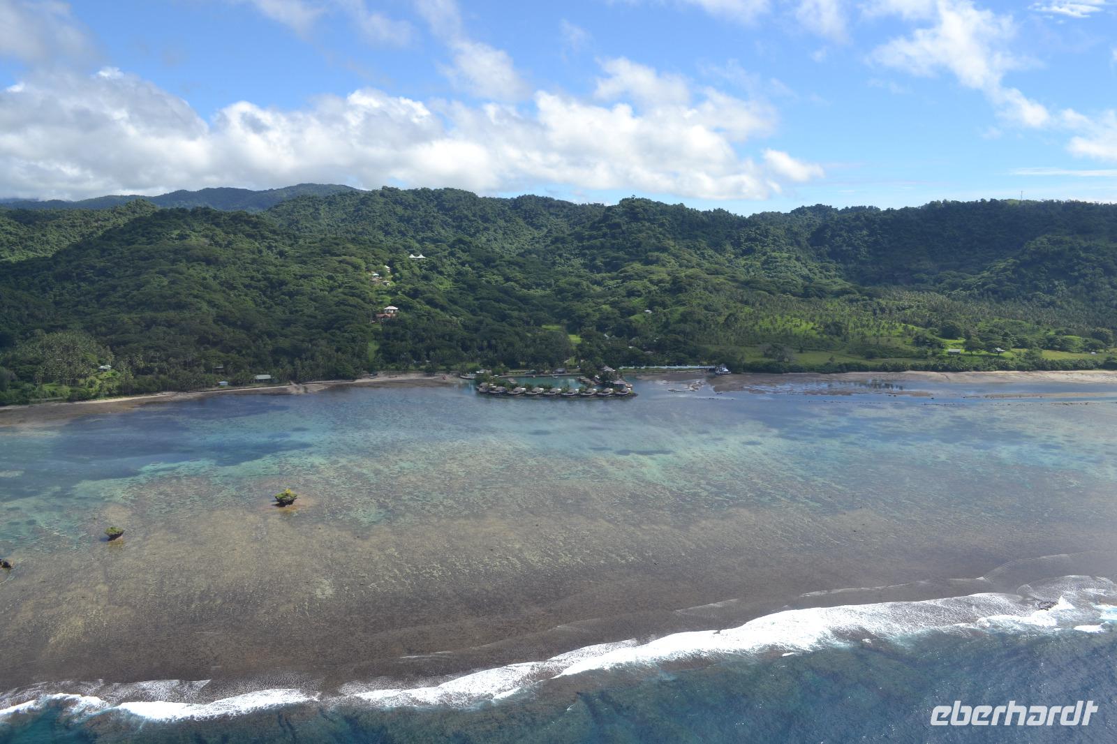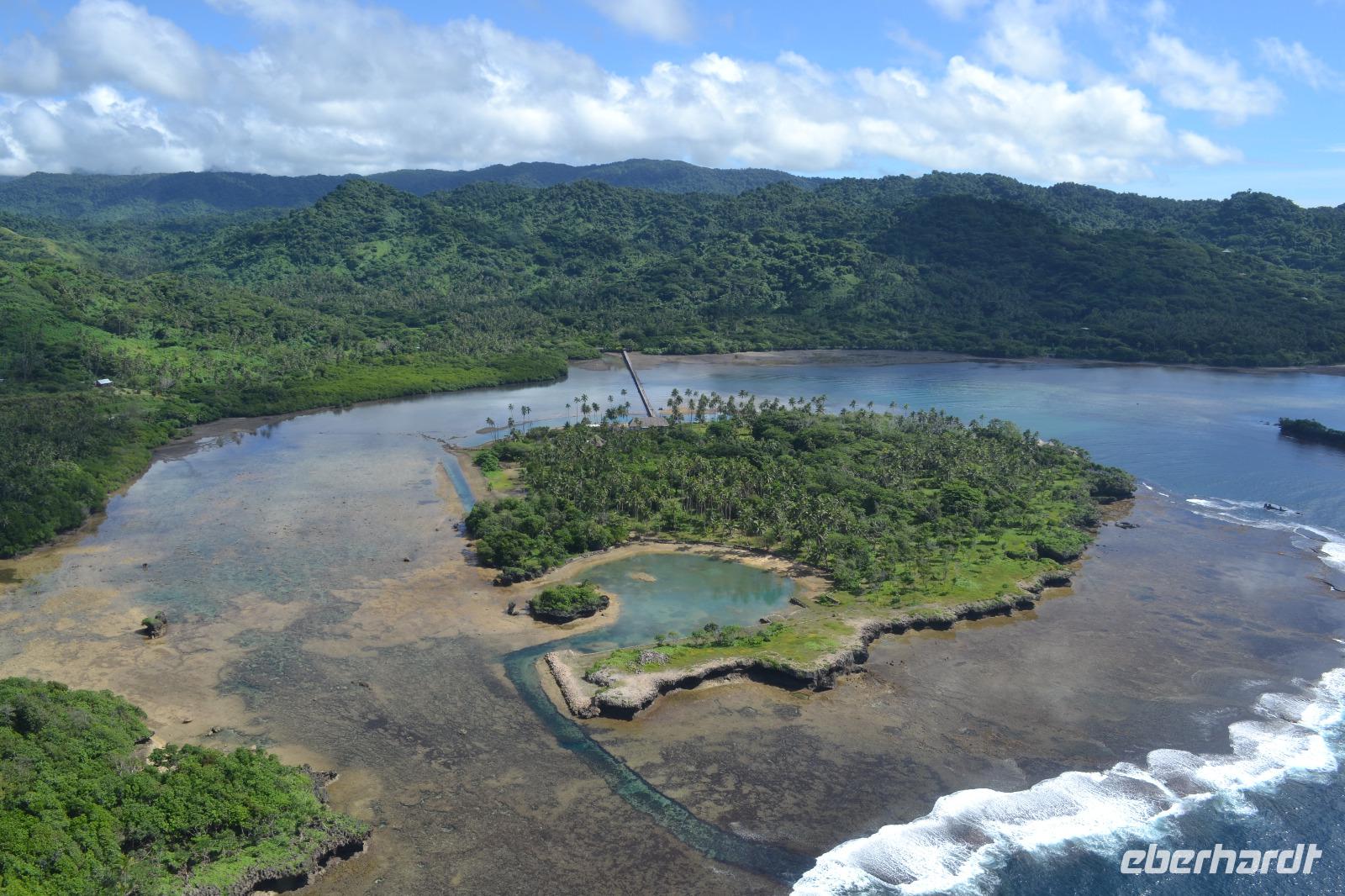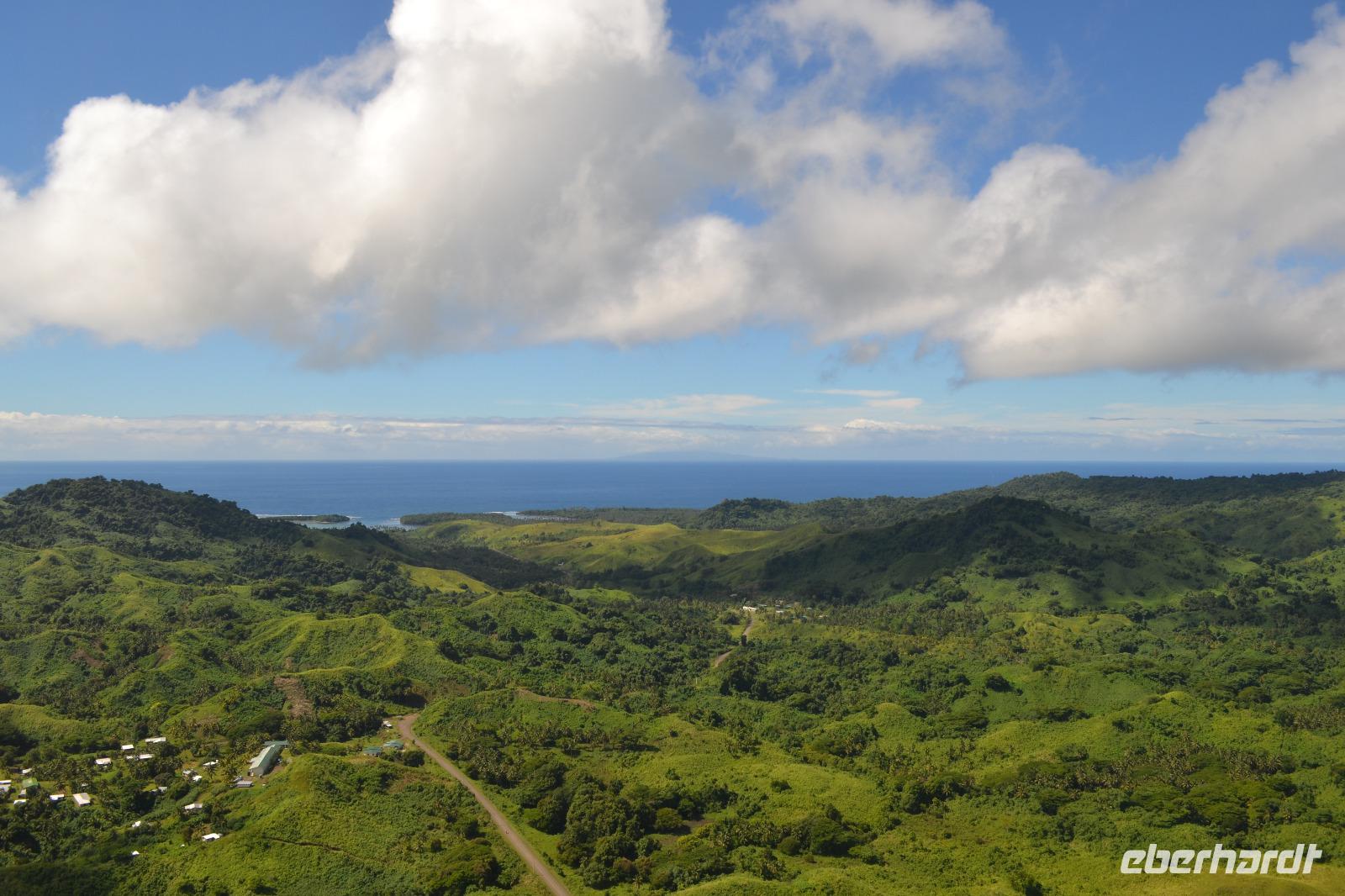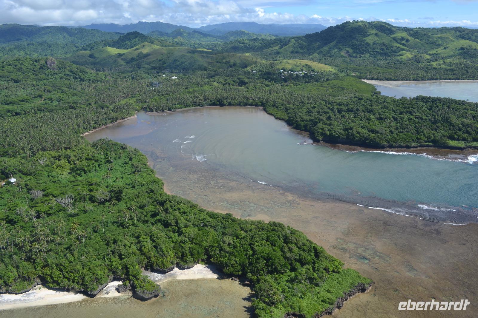 Auf der zweitgrößten Insel, Vanua Levu, steht heute wieder die Natur stärker im Mittelpunkt. Die kleine Stadt Savusavu, vor der die Sun Princess vor Anker liegt, ist deutlich kleiner als Suva und wirkt heller, sauberer und freundlicher. Das mag auch mit am Wetter liegen, denn die Wolken sind wieder verschwunden und die Sonne ist zurück. Die Insel ist vulkanischen Ursprungs und kann leider nicht mit schönen Stränden glänzen, dafür aber mit einem ausgedehnten Korallenriff. Ich habe das Glück, mit meinen Gästen einen Rundflug mit dem Hubschrauber über einen Teil der kaum besiedelten grünen Insel unternehmen zu dürfen. Unsere toughe Pilotin aus England holt uns vom Pier ab und bringt uns zum kleinen Flugplatz. Dann kommt die Waage und damit die Stunde der Wahrheit: wie viele Kilos haben wir in den letzten Tagen schon zugelegt? Die Antwort bleibt natürlich geheim. Mitfliegen dürfen wir zum Glück alle noch, sogar mein kleiner pummeliger Eberhardt-Reisebär. Unsere Pilotin ist ganz locker und achtet auch nicht so genau auf die Zeit. Wir teilen uns in zwei Gruppen auf und mit der zweiten Gruppe fliege ich zuerst an der Küste entlang über das Korallenriff und dann quer über das von dichtem Urwald bedeckte Landesinnere zum Flugplatz zurück. Während des Rückflugs können wir auch Savusavu und unsere Sun Princess von oben sehen. Wieder unten auf festem Boden machen wir noch einen Abstecher zu den heißen Quellen von Savusavu. Kochend heißes Wasser blubbert hier aus der Erde und wird tatsächlich immer noch von einigen Einheimischen zum Garen von Lebensmitteln verwendet. Ich spaziere anschließend noch ein bisschen die Uferstraße entlang, während sich meine Reisegäste in Savusavu auf die Suche nach einem Bierchen begeben. Beim Abendessen - die Sun Princess fährt schon wieder zurück zur Hauptinsel - berichten mir vier Gäste dann von ihrem Landausflug in ein traditionelles Dorf. Auch sie klingen begeistert von ihrem Tag auf Vanua Levu. Die Teilnahme an der Kava-Zeremonie (bzw. das Getränk) haben sie vorsichtshalber ausgeschlagen. Es soll wie Abwaschwasser schmecken, hat aber eine berauschende Wirkung.