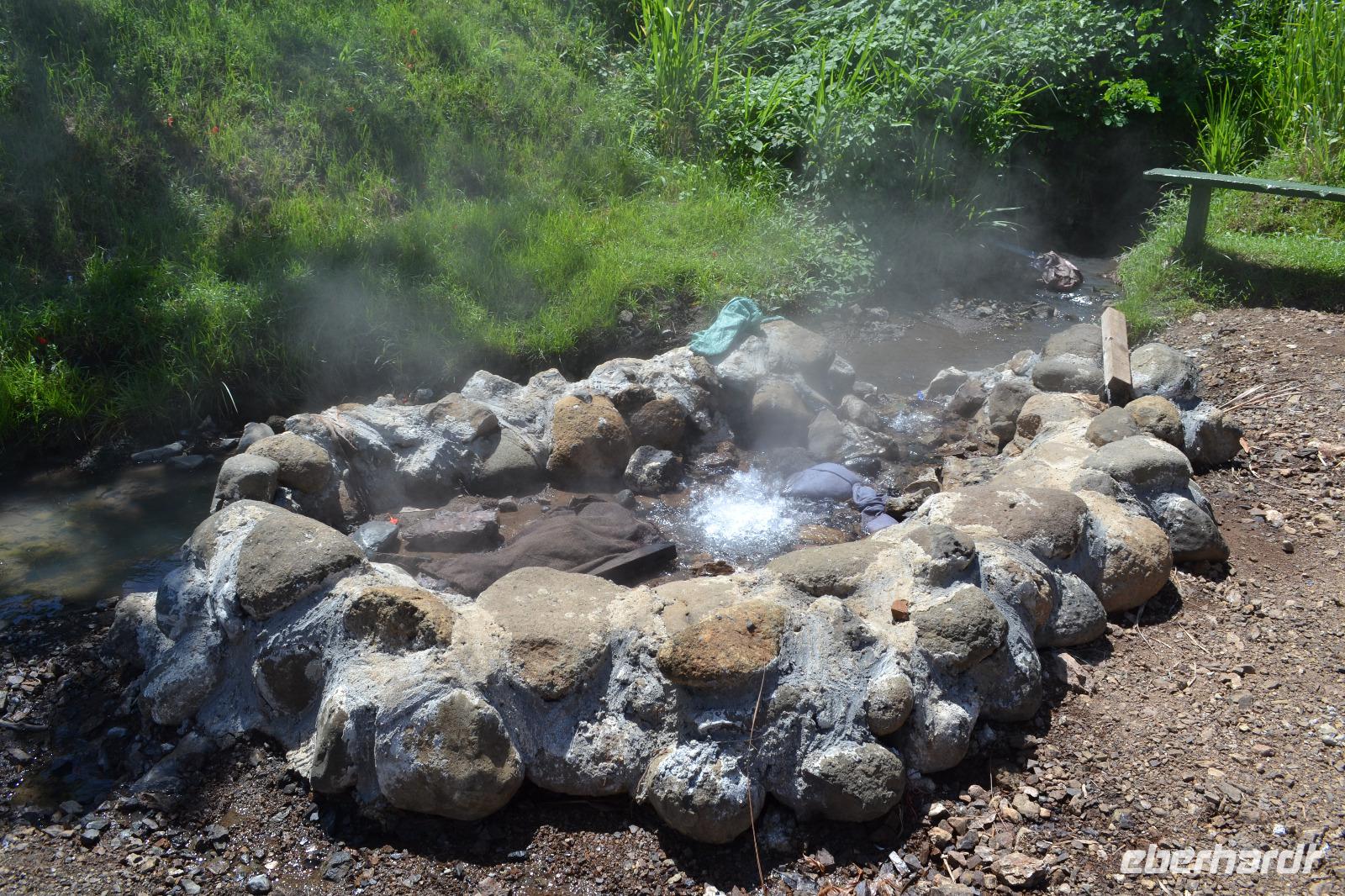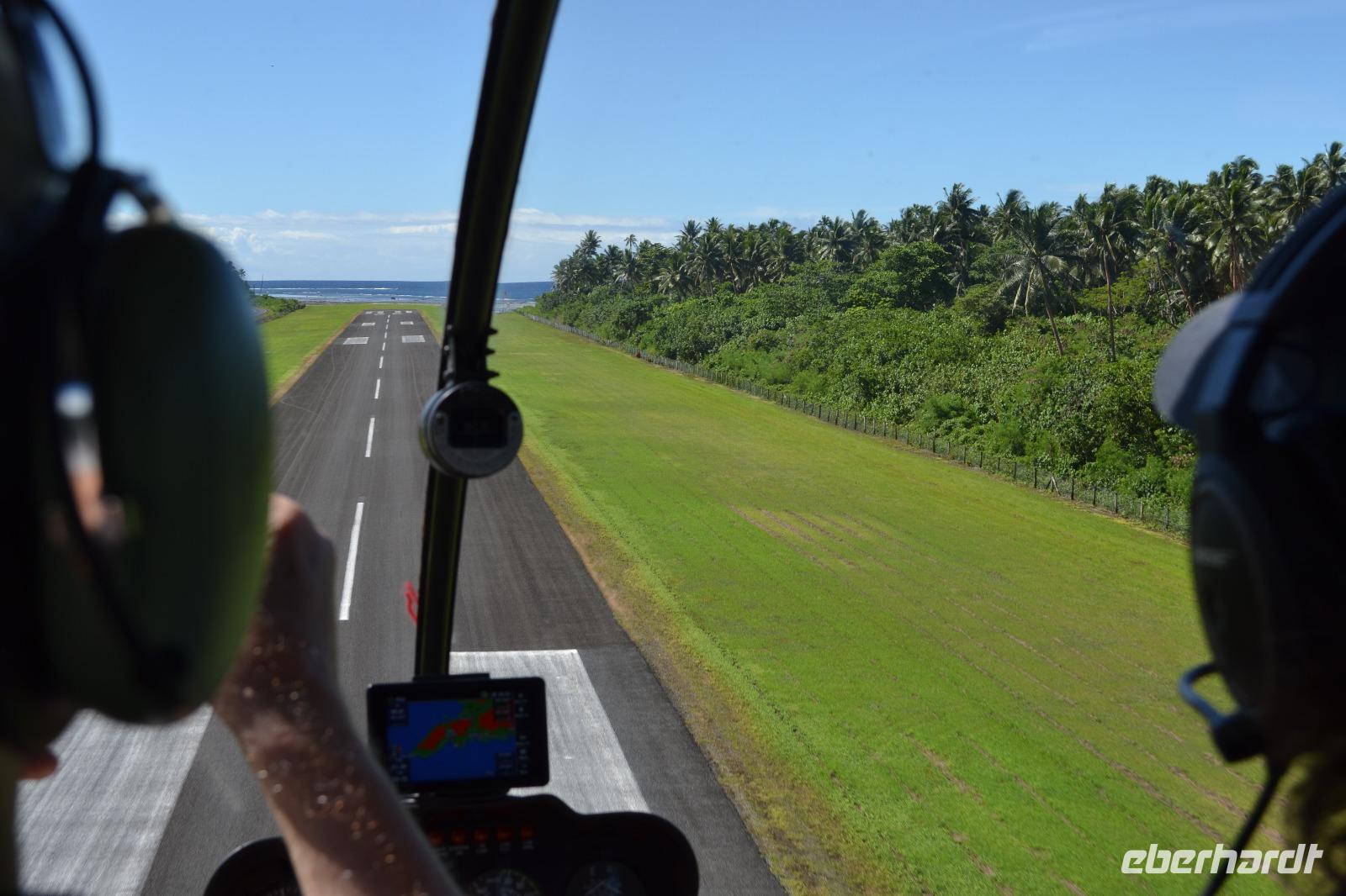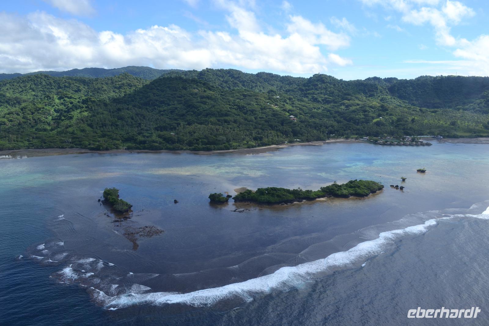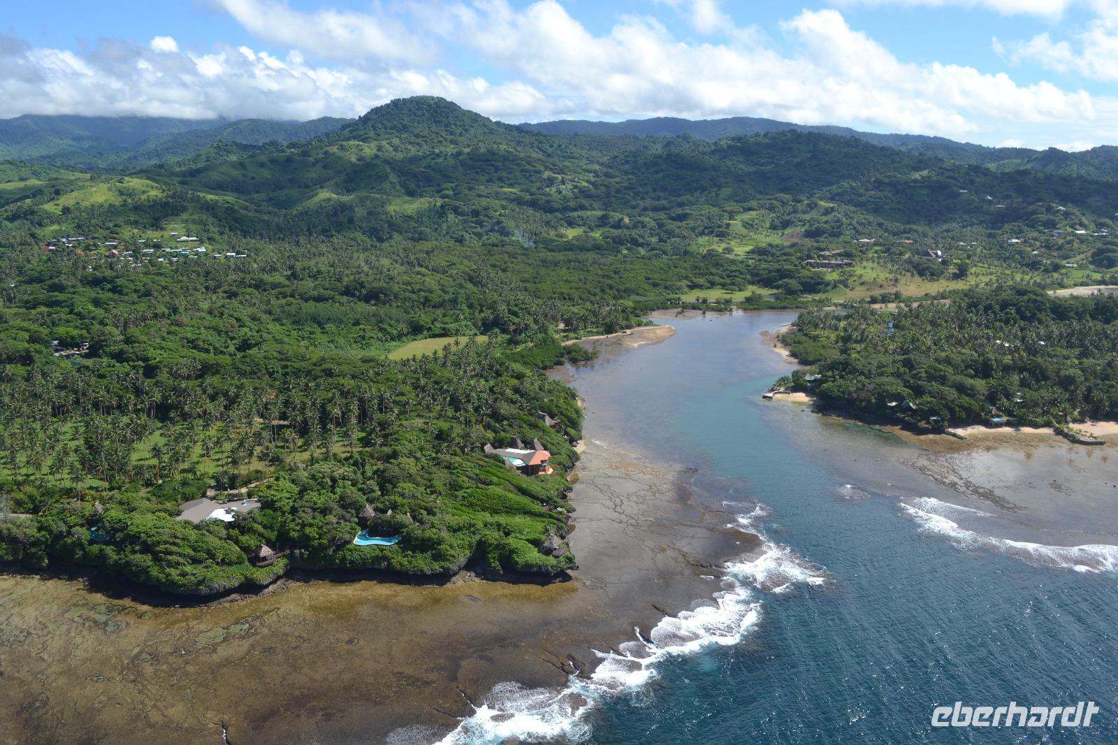 Auf der zweitgrößten Insel, Vanua Levu, steht heute wieder die Natur stärker im Mittelpunkt. Die kleine Stadt Savusavu, vor der die Sun Princess vor Anker liegt, ist deutlich kleiner als Suva und wirkt heller, sauberer und freundlicher. Das mag auch mit am Wetter liegen, denn die Wolken sind wieder verschwunden und die Sonne ist zurück. Die Insel ist vulkanischen Ursprungs und kann leider nicht mit schönen Stränden glänzen, dafür aber mit einem ausgedehnten Korallenriff. Ich habe das Glück, mit meinen Gästen einen Rundflug mit dem Hubschrauber über einen Teil der kaum besiedelten grünen Insel unternehmen zu dürfen. Unsere toughe Pilotin aus England holt uns vom Pier ab und bringt uns zum kleinen Flugplatz. Dann kommt die Waage und damit die Stunde der Wahrheit: wie viele Kilos haben wir in den letzten Tagen schon zugelegt? Die Antwort bleibt natürlich geheim. Mitfliegen dürfen wir zum Glück alle noch, sogar mein kleiner pummeliger Eberhardt-Reisebär. Unsere Pilotin ist ganz locker und achtet auch nicht so genau auf die Zeit. Wir teilen uns in zwei Gruppen auf und mit der zweiten Gruppe fliege ich zuerst an der Küste entlang über das Korallenriff und dann quer über das von dichtem Urwald bedeckte Landesinnere zum Flugplatz zurück. Während des Rückflugs können wir auch Savusavu und unsere Sun Princess von oben sehen. Wieder unten auf festem Boden machen wir noch einen Abstecher zu den heißen Quellen von Savusavu. Kochend heißes Wasser blubbert hier aus der Erde und wird tatsächlich immer noch von einigen Einheimischen zum Garen von Lebensmitteln verwendet. Ich spaziere anschließend noch ein bisschen die Uferstraße entlang, während sich meine Reisegäste in Savusavu auf die Suche nach einem Bierchen begeben. Beim Abendessen - die Sun Princess fährt schon wieder zurück zur Hauptinsel - berichten mir vier Gäste dann von ihrem Landausflug in ein traditionelles Dorf. Auch sie klingen begeistert von ihrem Tag auf Vanua Levu. Die Teilnahme an der Kava-Zeremonie (bzw. das Getränk) haben sie vorsichtshalber ausgeschlagen. Es soll wie Abwaschwasser schmecken, hat aber eine berauschende Wirkung.