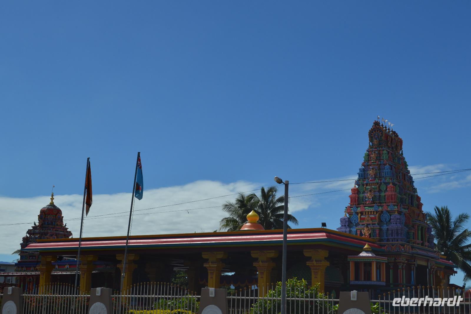 Wir sind zurück auf Viti Levu, nur diesmal auf der Sonnenseite! In der Region um Lautoka, die im Regenschatten der Berge liegt, wird ganz viel Zuckerrohr angebaut. Und in Lautoka selbst stehen große Zuckerfabriken. Auch der internationale Flughafen von Fidschi liegt in dieser Region, bei der Stadt Nadi. Deshalb ist Nadi auch touristisch sehr gut erschlossen und Startpunkt für viele Besucher. Fast alle meine Gäste unternehmen heute mit mir einen vom Schiff organisierten Ausflug, der uns bis nach Nadi und zurück führt. Zuerst bewundern wir bei einem Fotostopp die Sleeping Giant Mountain Range, eine Bergkette, die von der Form her an eine große schlafende Riesin und einen kleinen schlafenden Riesen erinnert. An den Hängen dieser Bergkette befinden sich auch der Regenwald und der Orchideengarten, zu dem zwei meiner Gäste heute auf einem anderen Ausflug aufgebrochen sind. Wir hingegen fahren weiter zum größten Hindu-Tempel der südlichen Hemisphäre, der sehr verspielt dekoriert und kunterbunt bemalt in der Sonne glänzt. An der Hauptstraße von Nadi machen wir anschließend einen Toiletten- und Souvenir-Stopp. Wir merken deutlich, dass in Nadi viel mehr Geld investiert wird bzw. da ist. Die Stadt sieht aufgeräumter, sauberer und moderner aus als Suva. Unser letzter großer Halt ist an einem Yachthafen, wo uns Getränke und frisches Obst gereicht werden. Meer, Palmen, kleine Boote - die Kulisse ist wirklich herrlich. Bei einer kleinen Vorführung bekommen wir vorgeführt, was alles aus einer Kokosnuss hergestellt werden kann und wie Kokosmilch erzeugt wird. Dann geht es vorbei an Zuckerrohrplantagen zurück zum Schiff. Dort erwarten uns nicht nur Kaffee und Kuchen, sondern auch ein weiterer schöner Seetag zur Erholung, während die Sun Princess Kurs zurück auf Neukaledonien nimmt. Ich habe mich inzwischen sehr an das Schiff und auch die Besatzung gewöhnt. Alle sind freundlich, vor allem unsere beiden Kellner Marijana und Edwin; die Sänger/innen und Tänzer/innen sind auch wirklich gut, und das Schiff zwar schon etwas älter, aber im Vergleich in meinen Augen gut durchdacht bzw. strukturiert.
