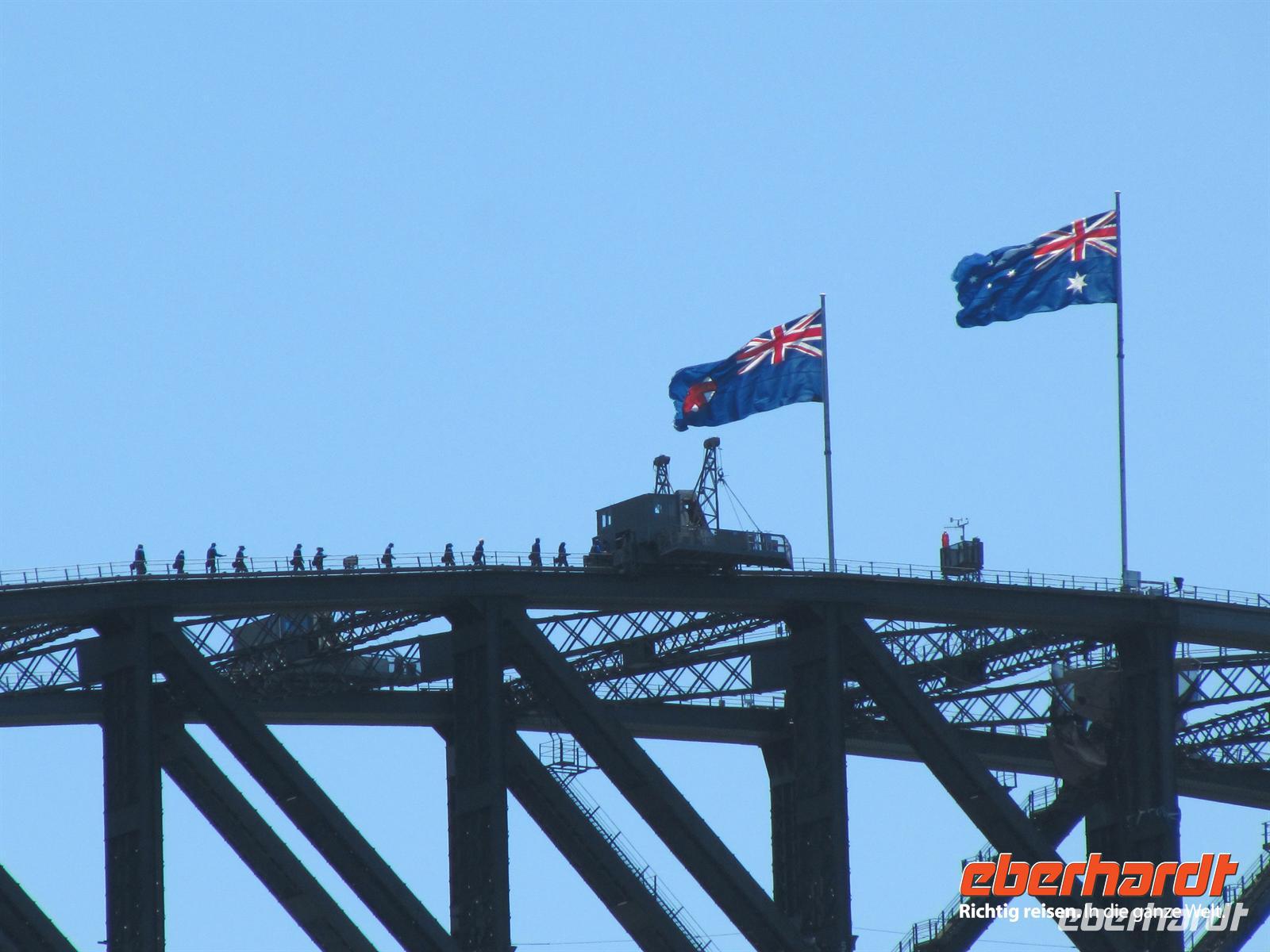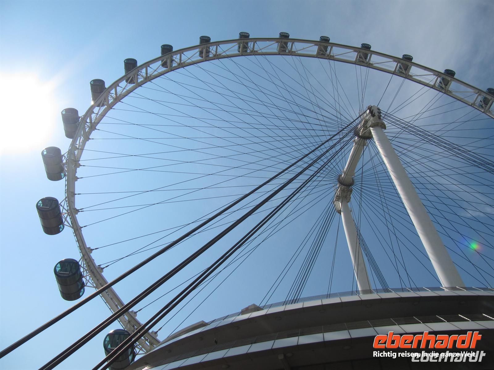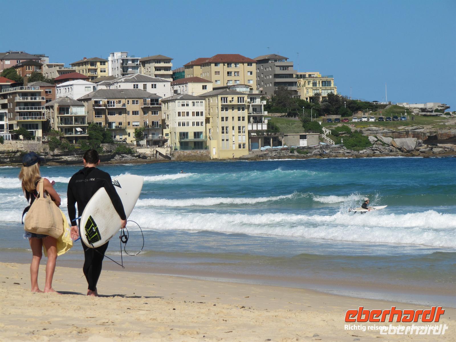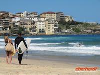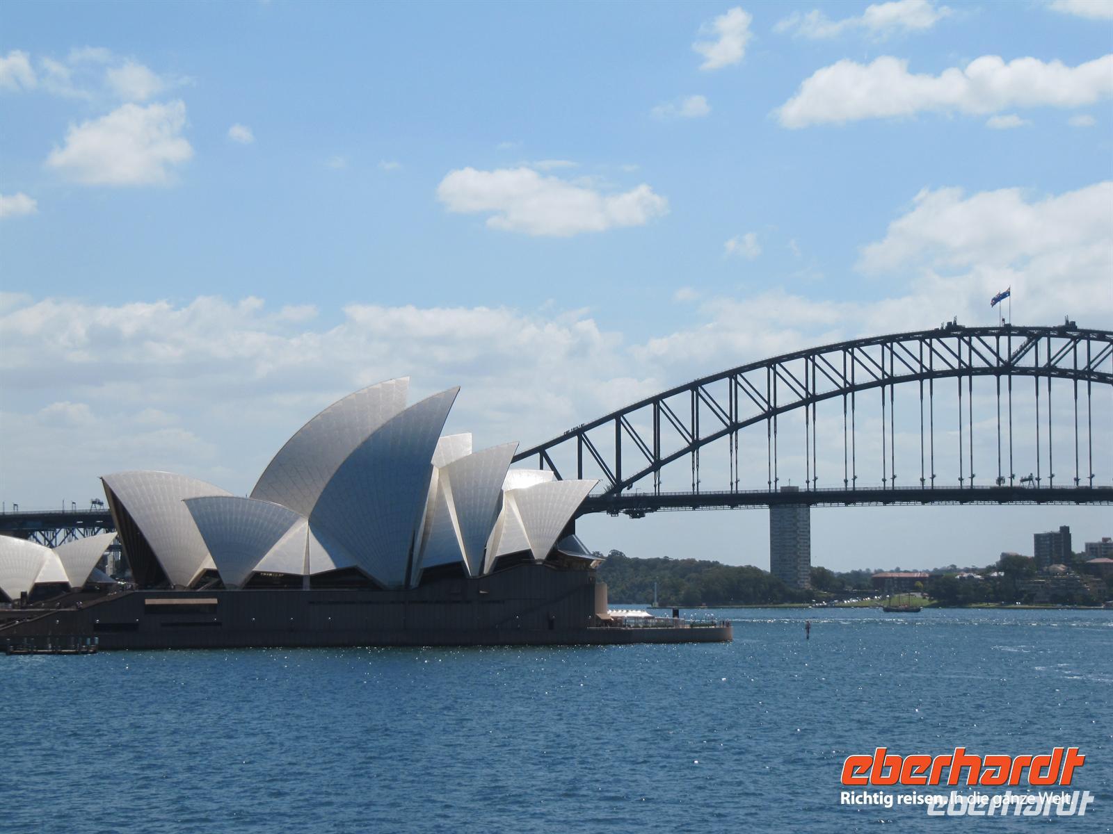 Nachdem wir uns mit Leckereien wie frischen Waffeln, pochierten Eiern, asiatischen Spezialitäten und vielem mehr stärkten, trafen wir uns für einen kleinen Rundgang. Unser Ziel: das höchste Riesenrad der Welt besteigen und den atemberaubenden Ausblick über Singapur genießen. In einer großen Gondel fahren wir in insgesamt 35 Minuten bis auf 260 Meter Höhe. Unglaublich wie weit man von hier aus blicken kann, nicht nur über die Formel 1 Rennstrecke, den Hafen bis hin zur Skyline, unsere Blicke reichten auch bis nach Indonesien. Gegen Mittag erwartet uns Martine, unsere multikulturelle Stadtführerin die uns mit Ihrem hellen Gemüt und interessanten Detail Singapur näher brachte. Wir besuchen den bunten und liebevoll angelegten Orchideen Garten. Noch bunter als im Botanischen Garten wurde es anschließend im Indischen Viertel, wo die Einwohner sich auf das bevorstehende Lichtfest vorbereiten. Es duftet nach Gewürzen, bunte Leuchten hängen zwischen unsren Köpfen und die indischen Frauen suchen sich einen neuen Sari aus den bunten Tüchern. Danach fuhren wir zum Hafen um die Stadt aus einer anderen Perspektive zu sehen - vom Wasser aus. Der berühmte Merlion war ein Höhepunkt der Bootsfahrt. Die Figur ist halb Fisch und hat den Kopf eines Löwens, eine Legende besagt das der Besiedler der Bucht bei der Ankunft eine Löwen sah. Singa ist das altindische Wort Sanskrit) für Löwe und pura bezeichnet einen Fischerort, welcher Singapur zur Zeit der Besiedlung gewesen ist. Nach freier Zeit in Chinatown war es schon wieder Zeit sich von Singapur zu verabschieden. Schöne Stunden in der schillernden Metropole gingen zu Ende und wir fuhren zum Flughafen. Am Abend verließen wir Singapur und machten uns auf dem Weg nach Sydney. Nach eine achtstündigen Flug und weiteren drei Stunden Zeitverschiebung begrüßte uns der Kapitän im roten Kontinent und gab im selben Atemzug die Ergebnisse der Australier liebster Sport Cricket durch. Nach unerwartet lockeren Quarantänekontrollen empfing uns Udo, unser Reiseleiter, am Ausgang. Am frühen Morgen empfing man uns im Hotel mit einem Frühstück, das komfortabelste in dieser Anreisesituation waren die von Eberhardt TRAVEL vorreservierten Zimmer, welche wir bereits gegen acht Uhr beziehen konnten. Um den Jetlag nicht die nächsten Tage mitzuschleppen, war es das Beste nicht schlafen zu gehen sondern sich gleich in das Getümmel der Stadt zu stürzen. Wir gingen zum Sydney Aquarium am Hafen, wo über uns Haie, Rochen und Seekühe schwimmen sollten. Einfach beeindruckend, welcher Artenvielfalt das umliegende Meer Heimat bietet. Am Mittag erwartet uns Udo am Hotel um uns einige der bekanntesten Sehenswürdigkeiten der Stadt zu zeigen. Wir fuhren entlang der Hafenpromenade als sich nach einer engen Kurve, das Wahrzeichen der Stadt, wahrscheinlich ganz Australiens vor uns erhob. Die Oper von Sydney und die Harbour Brigde ? spätestens jetzt sind wir alle ?angekommen? ? Sydney hat uns!!! Nach einigen Fotostopps fuhren wir zum Bondi Beach, der wohl bekannteste Strand der Stadt. Das städtische Paradies für Surfer und das Naherholungsgebiet für die Städter. Am Abend aßen wir im Hotel zu abend und schließen unseren Jetlag aus.