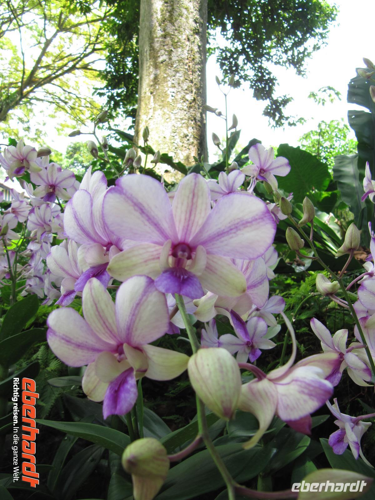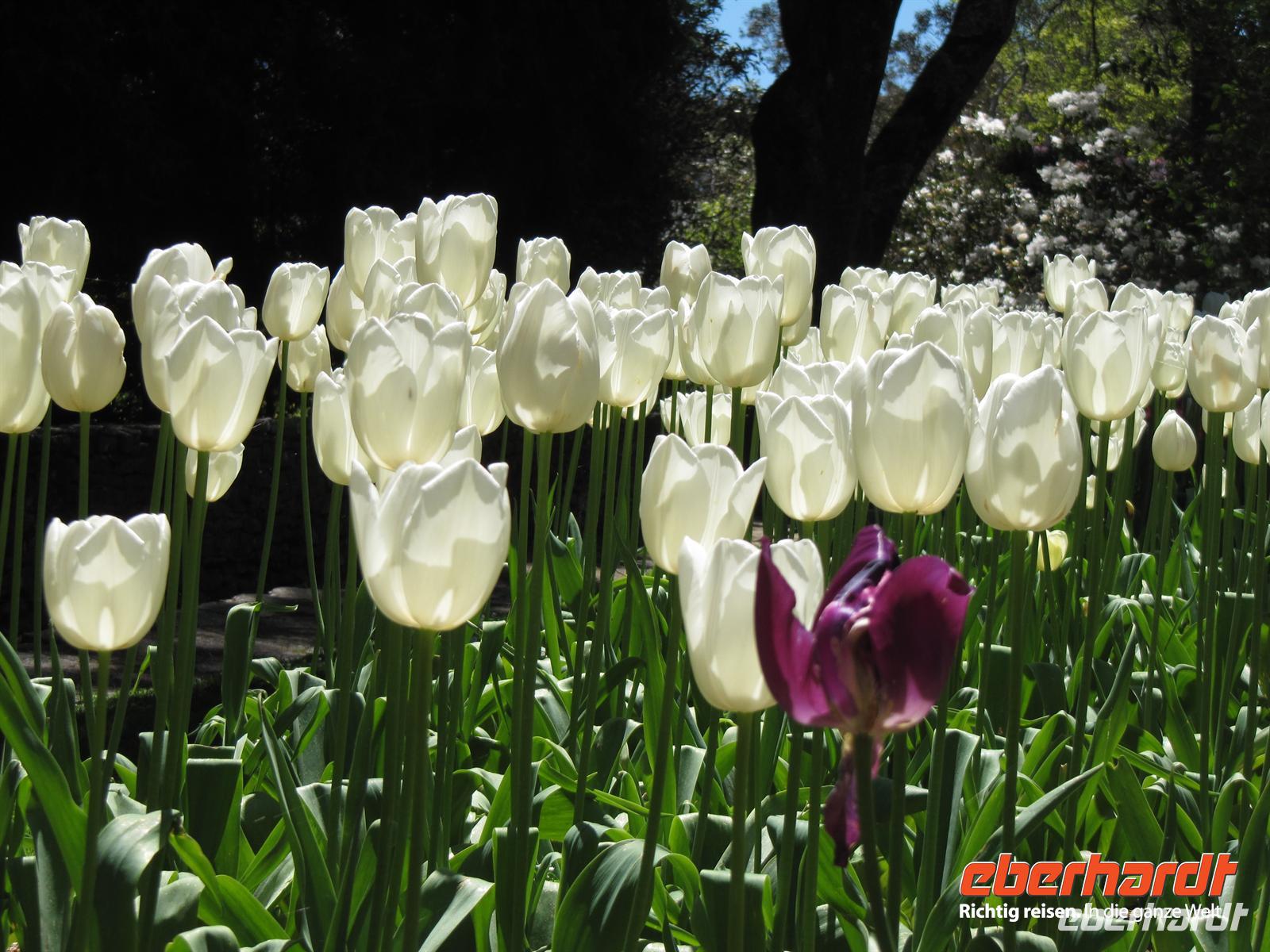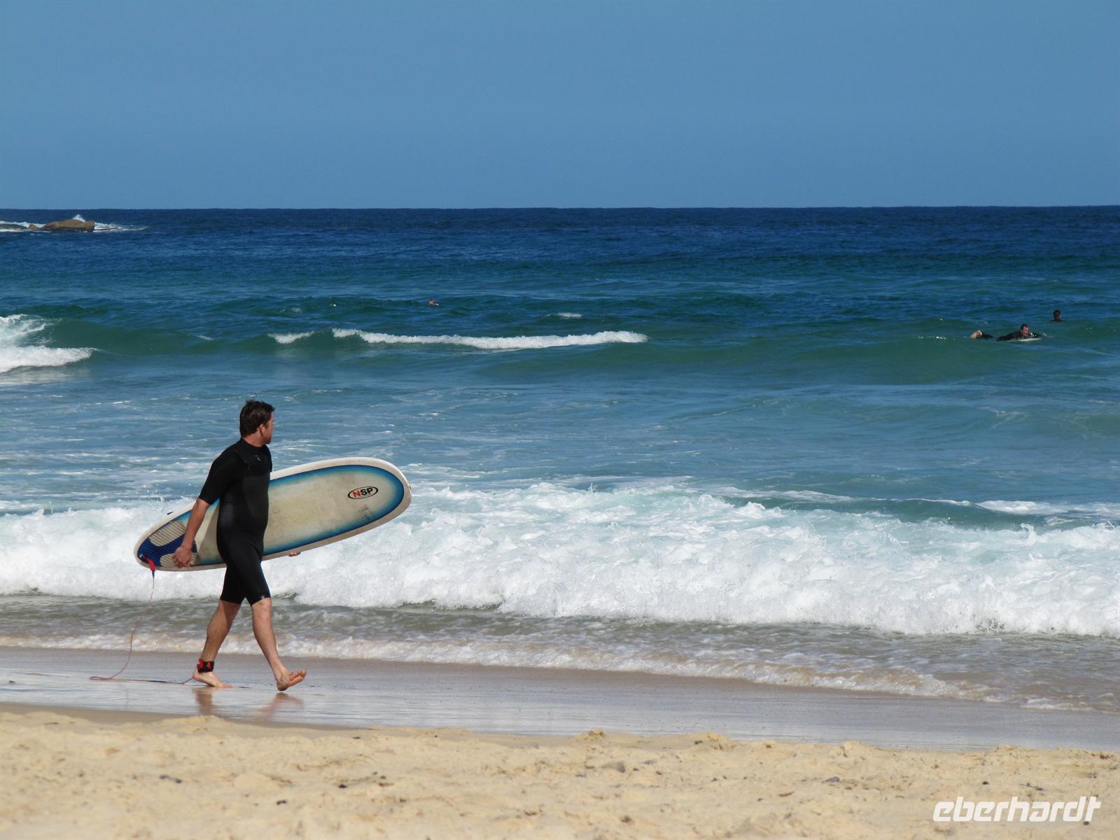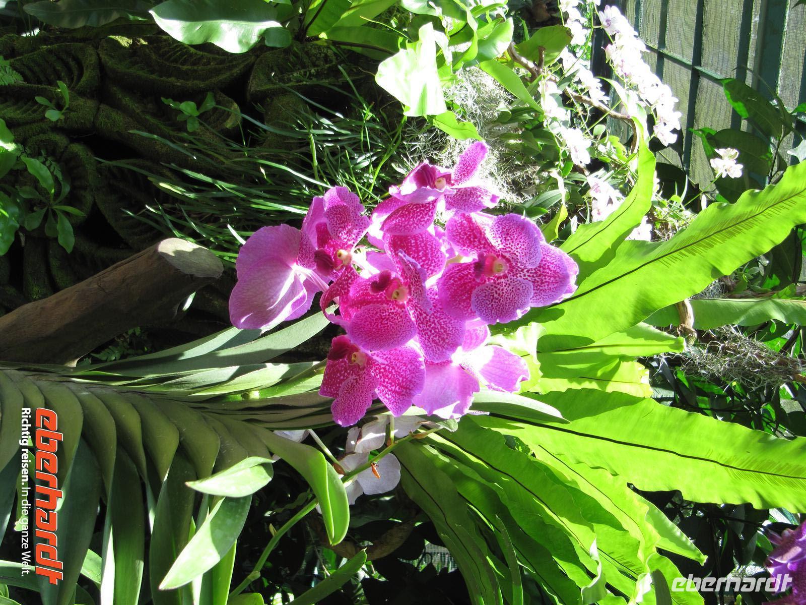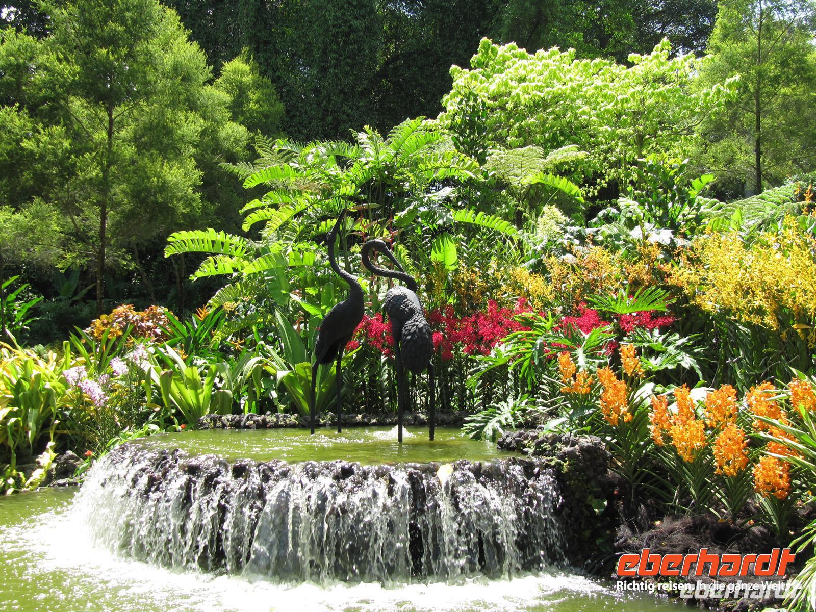 Nachdem wir uns mit Leckereien wie frischen Waffeln, pochierten Eiern, asiatischen Spezialitäten und vielem mehr stärkten, trafen wir uns für einen kleinen Rundgang. Unser Ziel: das höchste Riesenrad der Welt besteigen und den atemberaubenden Ausblick über Singapur genießen. In einer großen Gondel fahren wir in insgesamt 35 Minuten bis auf 260 Meter Höhe. Unglaublich wie weit man von hier aus blicken kann, nicht nur über die Formel 1 Rennstrecke, den Hafen bis hin zur Skyline, unsere Blicke reichten auch bis nach Indonesien. Gegen Mittag erwartet uns Martine, unsere multikulturelle Stadtführerin die uns mit Ihrem hellen Gemüt und interessanten Detail Singapur näher brachte. Wir besuchen den bunten und liebevoll angelegten Orchideen Garten. Noch bunter als im Botanischen Garten wurde es anschließend im Indischen Viertel, wo die Einwohner sich auf das bevorstehende Lichtfest vorbereiten. Es duftet nach Gewürzen, bunte Leuchten hängen zwischen unsren Köpfen und die indischen Frauen suchen sich einen neuen Sari aus den bunten Tüchern. Danach fuhren wir zum Hafen um die Stadt aus einer anderen Perspektive zu sehen - vom Wasser aus. Der berühmte Merlion war ein Höhepunkt der Bootsfahrt. Die Figur ist halb Fisch und hat den Kopf eines Löwens, eine Legende besagt das der Besiedler der Bucht bei der Ankunft eine Löwen sah. Singa ist das altindische Wort Sanskrit) für Löwe und pura bezeichnet einen Fischerort, welcher Singapur zur Zeit der Besiedlung gewesen ist. Nach freier Zeit in Chinatown war es schon wieder Zeit sich von Singapur zu verabschieden. Schöne Stunden in der schillernden Metropole gingen zu Ende und wir fuhren zum Flughafen. Am Abend verließen wir Singapur und machten uns auf dem Weg nach Sydney. Nach eine achtstündigen Flug und weiteren drei Stunden Zeitverschiebung begrüßte uns der Kapitän im roten Kontinent und gab im selben Atemzug die Ergebnisse der Australier liebster Sport Cricket durch. Nach unerwartet lockeren Quarantänekontrollen empfing uns Udo, unser Reiseleiter, am Ausgang. Am frühen Morgen empfing man uns im Hotel mit einem Frühstück, das komfortabelste in dieser Anreisesituation waren die von Eberhardt TRAVEL vorreservierten Zimmer, welche wir bereits gegen acht Uhr beziehen konnten. Um den Jetlag nicht die nächsten Tage mitzuschleppen, war es das Beste nicht schlafen zu gehen sondern sich gleich in das Getümmel der Stadt zu stürzen. Wir gingen zum Sydney Aquarium am Hafen, wo über uns Haie, Rochen und Seekühe schwimmen sollten. Einfach beeindruckend, welcher Artenvielfalt das umliegende Meer Heimat bietet. Am Mittag erwartet uns Udo am Hotel um uns einige der bekanntesten Sehenswürdigkeiten der Stadt zu zeigen. Wir fuhren entlang der Hafenpromenade als sich nach einer engen Kurve, das Wahrzeichen der Stadt, wahrscheinlich ganz Australiens vor uns erhob. Die Oper von Sydney und die Harbour Brigde ? spätestens jetzt sind wir alle ?angekommen? ? Sydney hat uns!!! Nach einigen Fotostopps fuhren wir zum Bondi Beach, der wohl bekannteste Strand der Stadt. Das städtische Paradies für Surfer und das Naherholungsgebiet für die Städter. Am Abend aßen wir im Hotel zu abend und schließen unseren Jetlag aus.