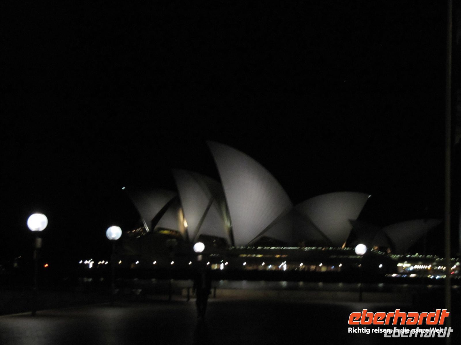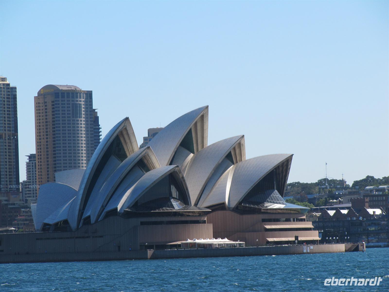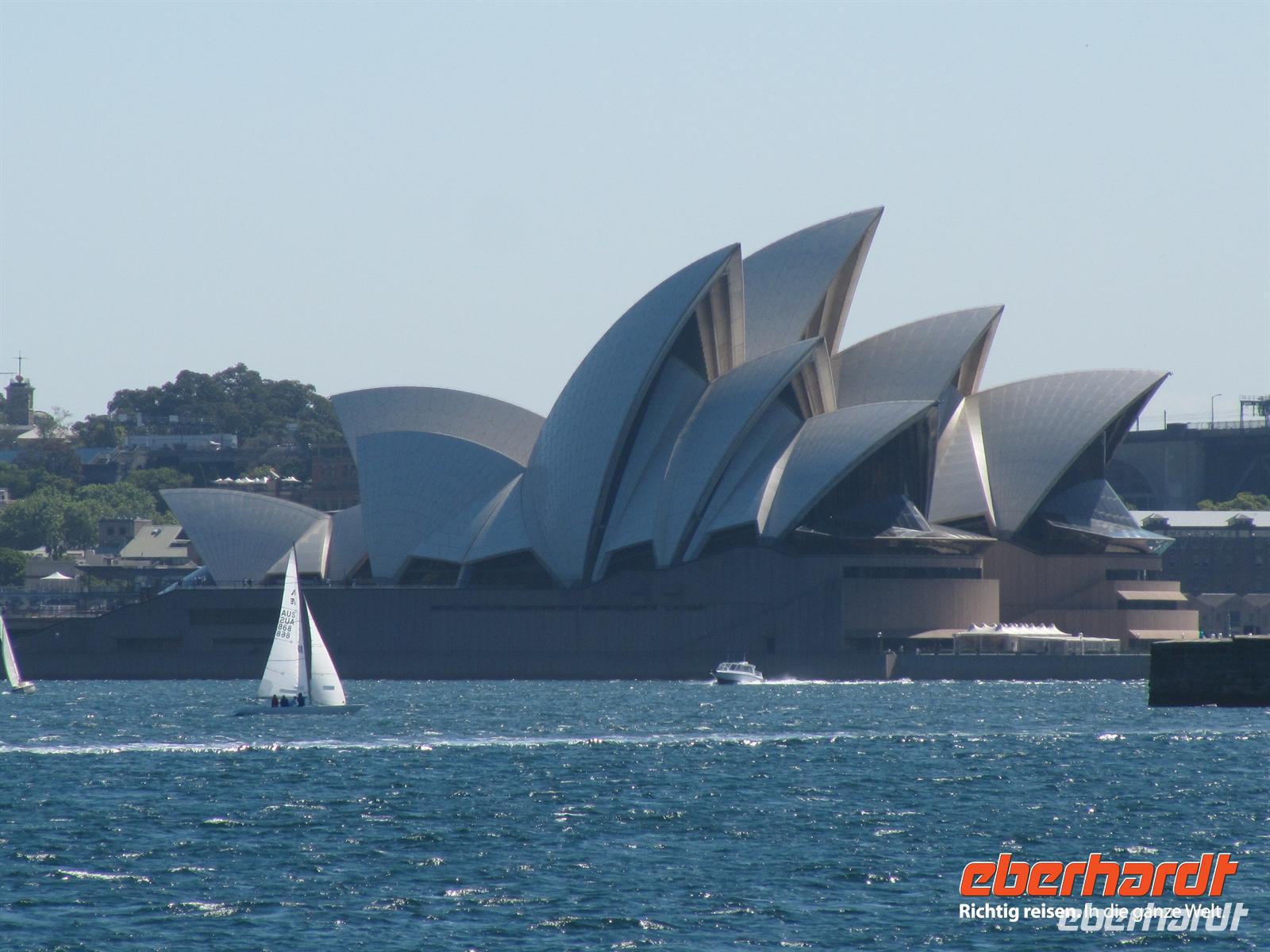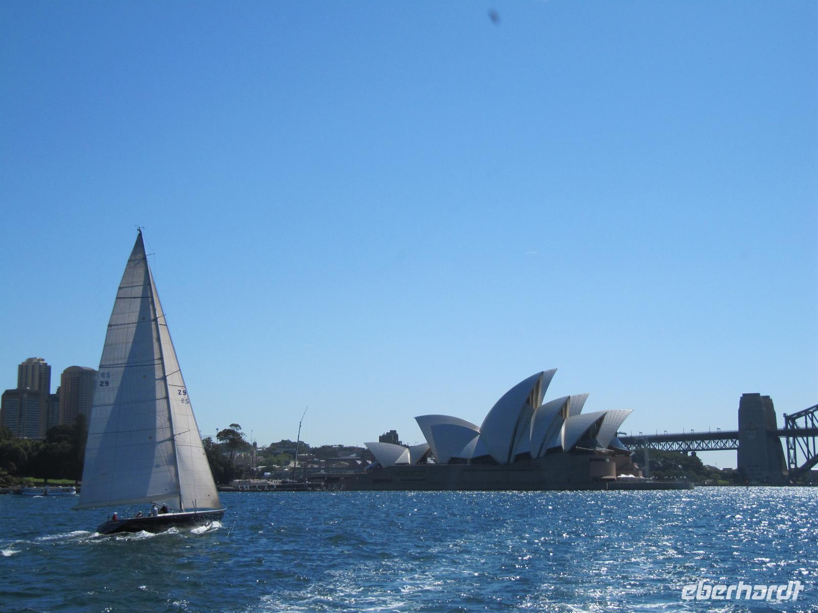 Genauso quirlig wie die Stadt begann auch unser Tag. Nach dem Frühstück spazierten wir entlang des Fährhafens zum Darling Harbour. Hier stiegen wir in die Monorail ? eine Hochbahn, welche sich durch das Innere Sydney schlängelt. Vorbei am Convience Center, über das bunte Chinatown durch das pulsierende Herz der Stadt zum Westfield Tower. Auf diesem Einkaufscenter ragt der 305 Meter hohe Sydney Tower. Von der Plattform blicken wir über den Hyde Park, zum Fussballstadion, über den Darling Harbour, die Oper bis in der Ferne zu den Blue Mountains. Einfach eine grandiose Aussicht von der wir uns nur schwer trennen konnten. Doch wir hatten schon unsere nächste Attraktion auf dem Plan. Mit Udo, unserem örtlichem Reiseleiter, besichtigten wir das Wahrzeichen der Stadt ? ein Meisterwerk der Architektur und UNESCO Weltkulturerbe ? die Sydney Opera. Hier erfuhren wir in Wort und Film wie mühsam dieser Bau von der Planung bis hin zur Eröffnung durch Queen Elisabeth II gewesen ist. Nach 16 Jahre Bauzeit und fast 14 mal so teuer als veranschlagt zeigt sich uns das heutige Kulturzentrum mit weißen Segeln und großzügigen Kultursälen. Ohne Zweifel das heutige Lieblingsobjekt vor unserer Kameralinse. Auch als wir im Anschluss die einstündige Hafenrundfahrt auf einem Katamaran gemacht haben. Am Nachmittag hatten wir jeder ein bisschen freie Zeit, bevor wir am Abend in einem Fischrestaurant am Hafen zu Abend essen. Mit Blick auf die illuminierte Oper genoßen wir ein deliziöses 3-Gänge-Menü.