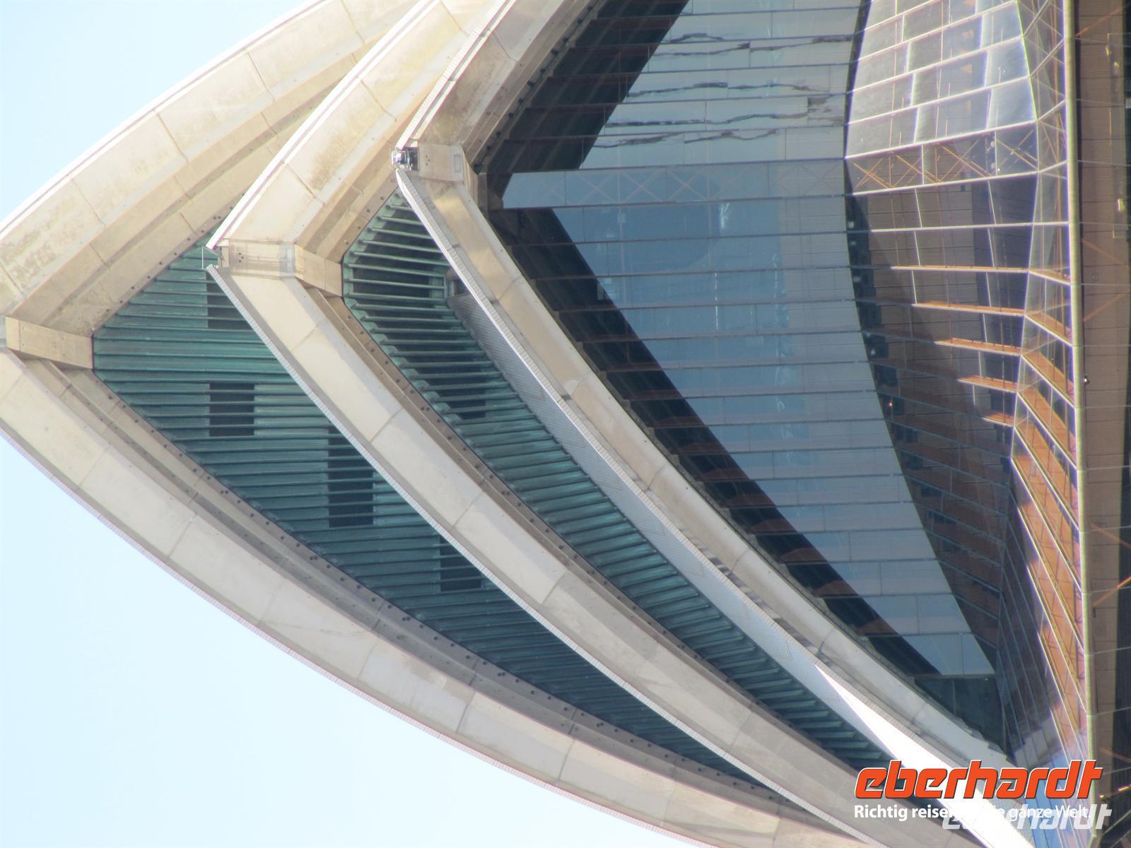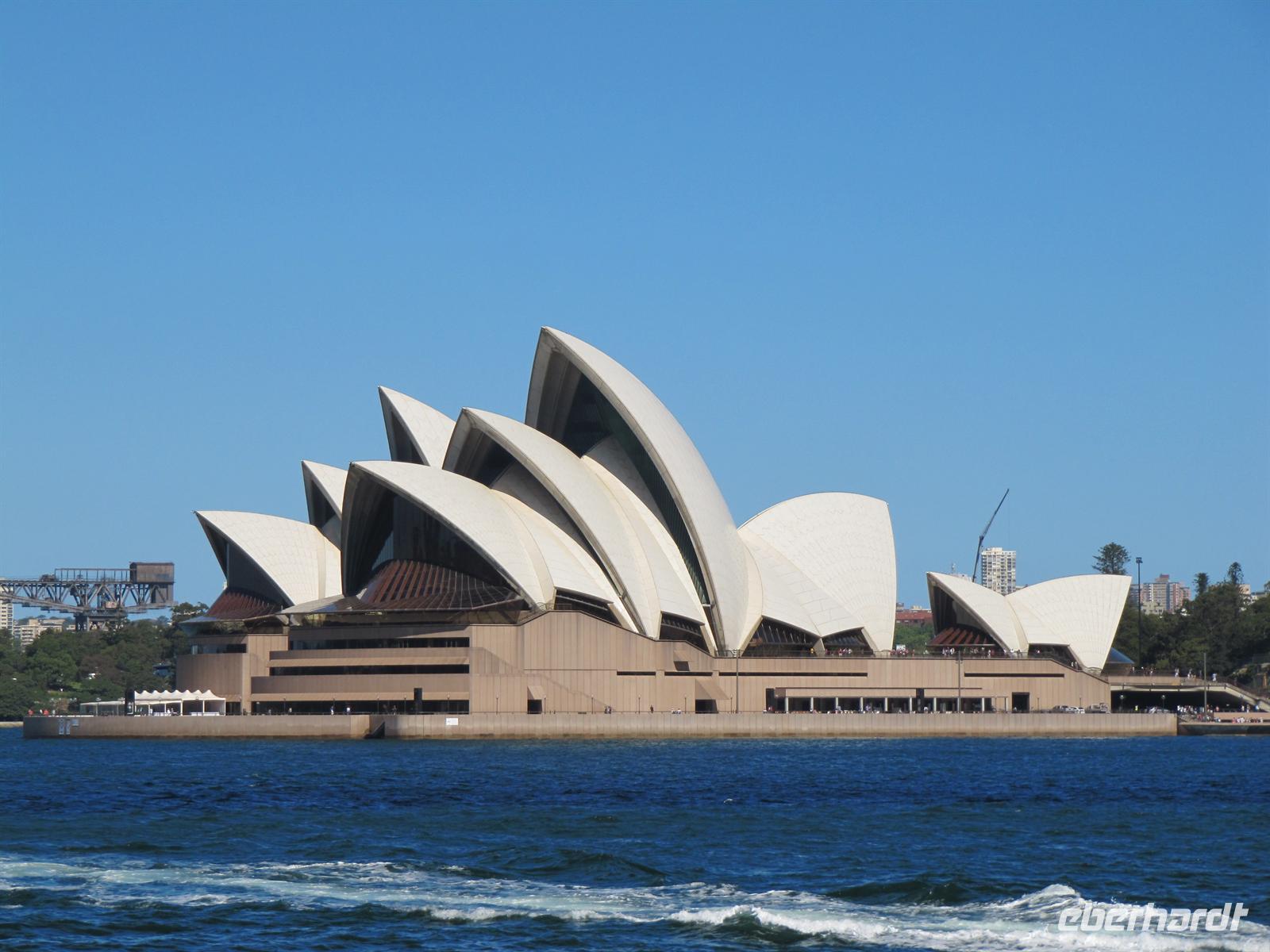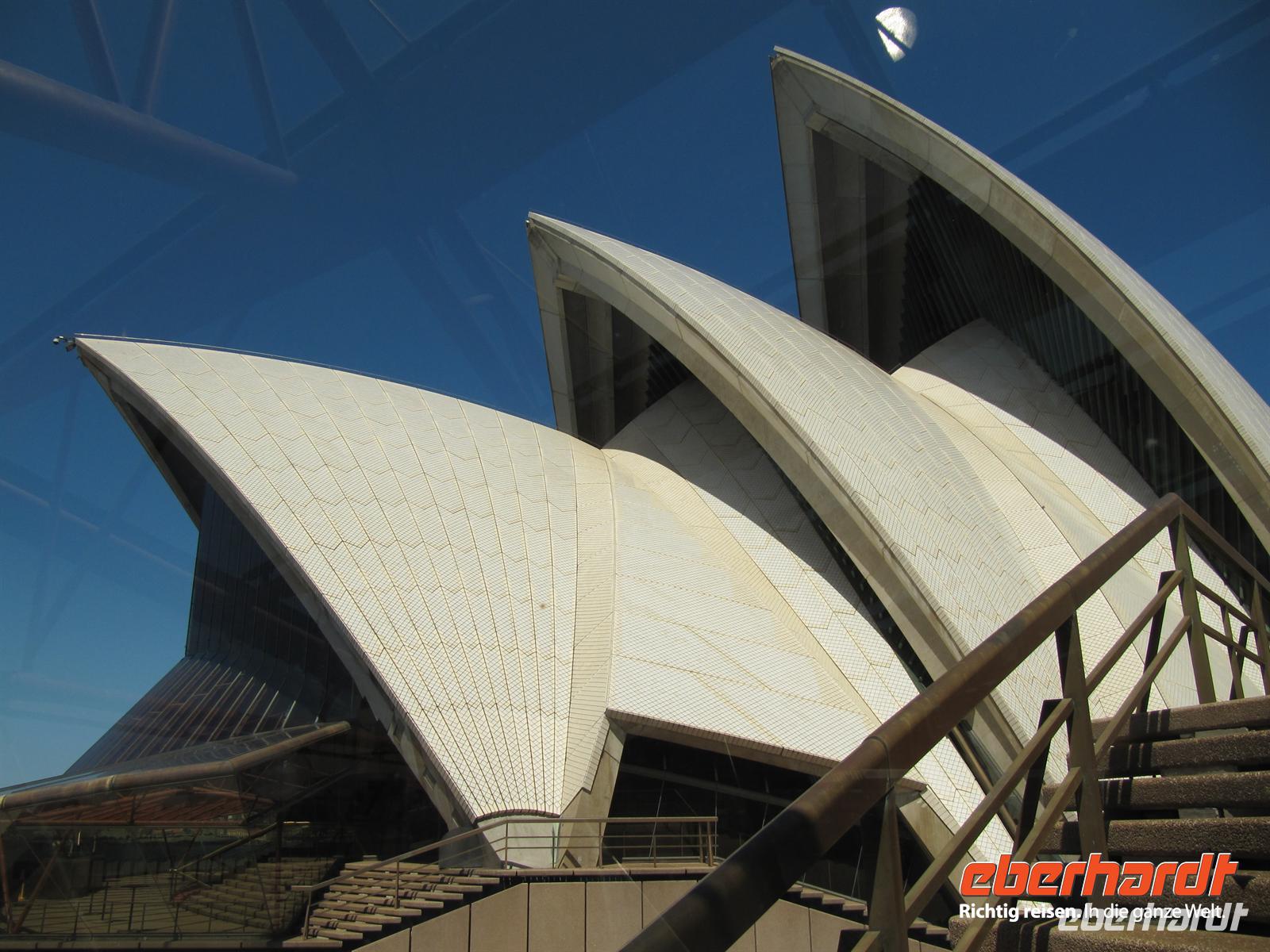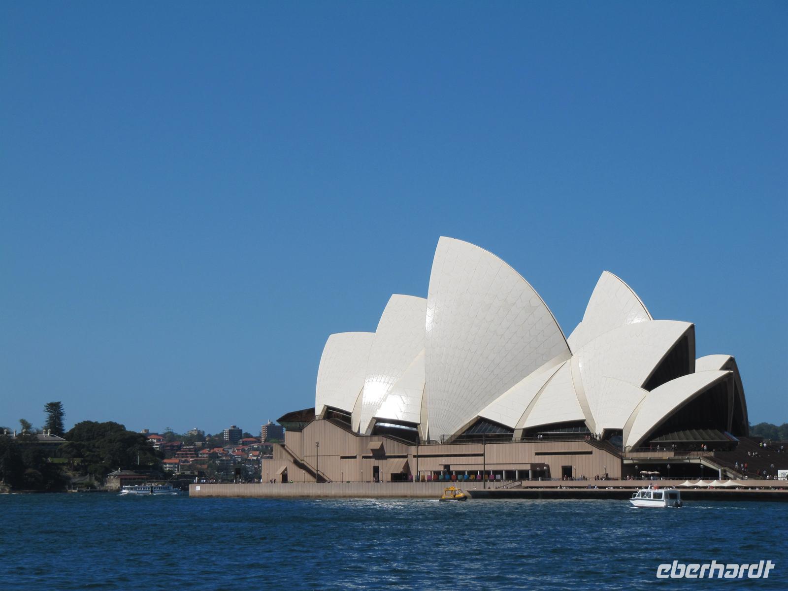 Genauso quirlig wie die Stadt begann auch unser Tag. Nach dem Frühstück spazierten wir entlang des Fährhafens zum Darling Harbour. Hier stiegen wir in die Monorail ? eine Hochbahn, welche sich durch das Innere Sydney schlängelt. Vorbei am Convience Center, über das bunte Chinatown durch das pulsierende Herz der Stadt zum Westfield Tower. Auf diesem Einkaufscenter ragt der 305 Meter hohe Sydney Tower. Von der Plattform blicken wir über den Hyde Park, zum Fussballstadion, über den Darling Harbour, die Oper bis in der Ferne zu den Blue Mountains. Einfach eine grandiose Aussicht von der wir uns nur schwer trennen konnten. Doch wir hatten schon unsere nächste Attraktion auf dem Plan. Mit Udo, unserem örtlichem Reiseleiter, besichtigten wir das Wahrzeichen der Stadt ? ein Meisterwerk der Architektur und UNESCO Weltkulturerbe ? die Sydney Opera. Hier erfuhren wir in Wort und Film wie mühsam dieser Bau von der Planung bis hin zur Eröffnung durch Queen Elisabeth II gewesen ist. Nach 16 Jahre Bauzeit und fast 14 mal so teuer als veranschlagt zeigt sich uns das heutige Kulturzentrum mit weißen Segeln und großzügigen Kultursälen. Ohne Zweifel das heutige Lieblingsobjekt vor unserer Kameralinse. Auch als wir im Anschluss die einstündige Hafenrundfahrt auf einem Katamaran gemacht haben. Am Nachmittag hatten wir jeder ein bisschen freie Zeit, bevor wir am Abend in einem Fischrestaurant am Hafen zu Abend essen. Mit Blick auf die illuminierte Oper genoßen wir ein deliziöses 3-Gänge-Menü.