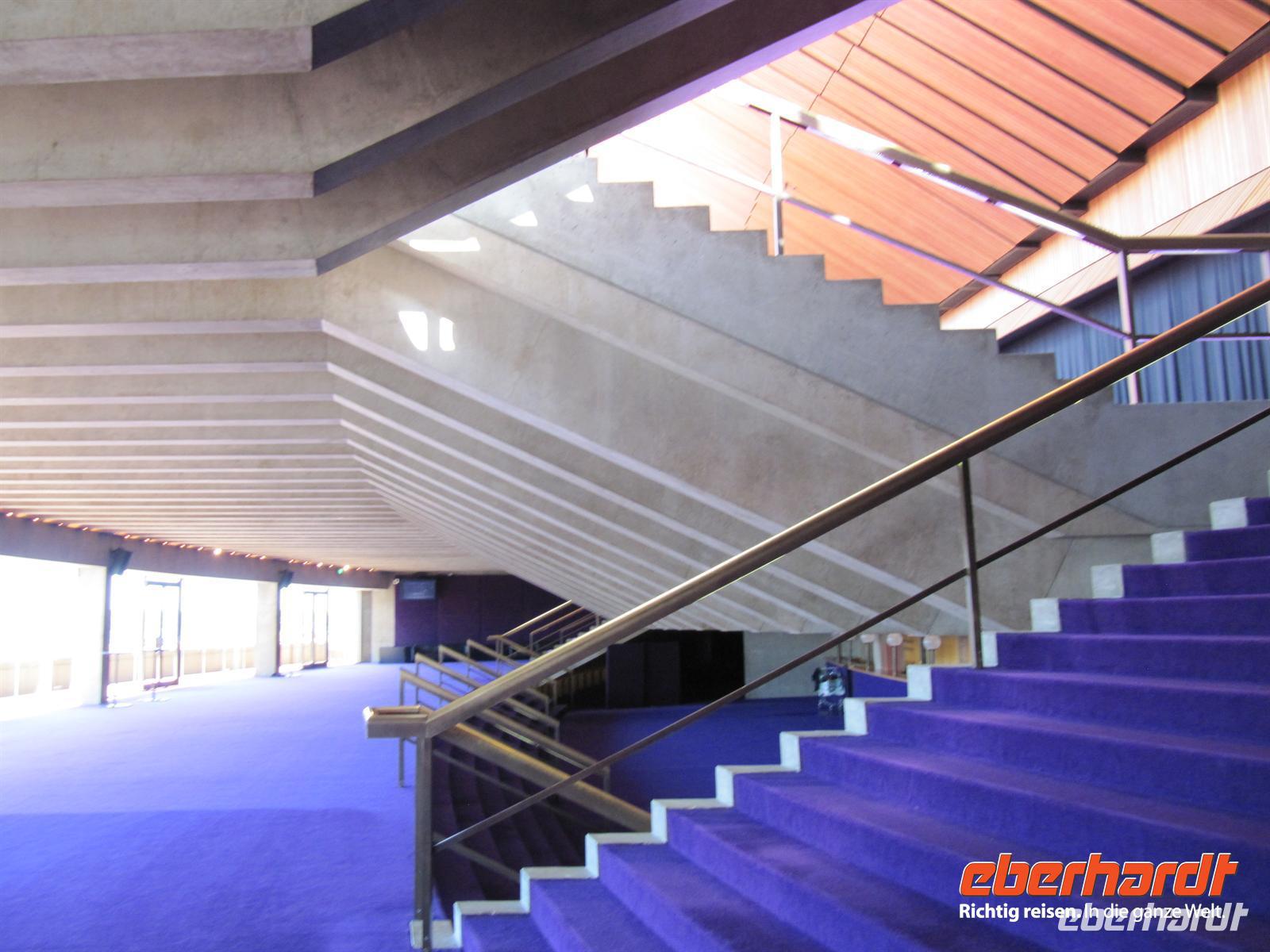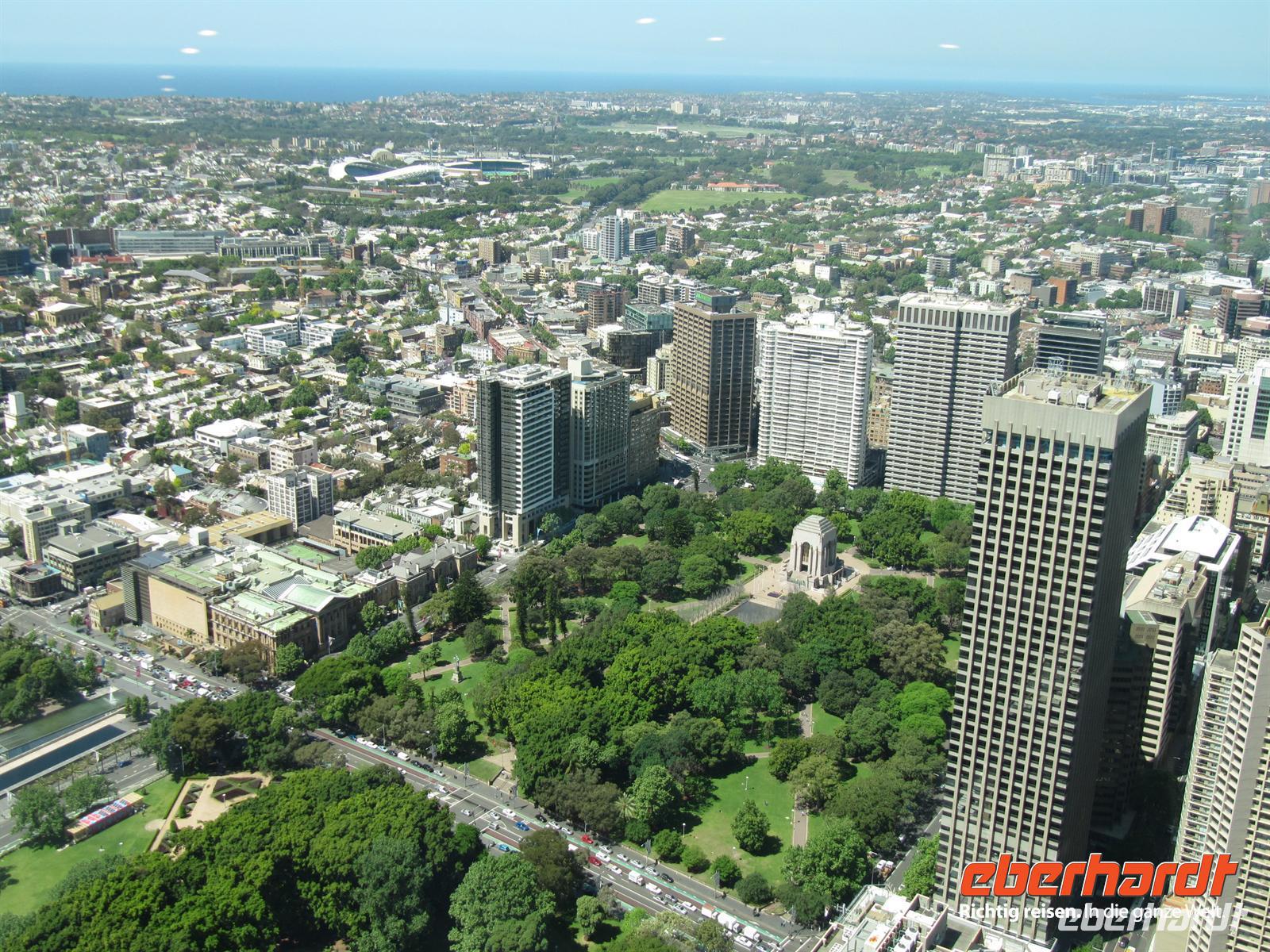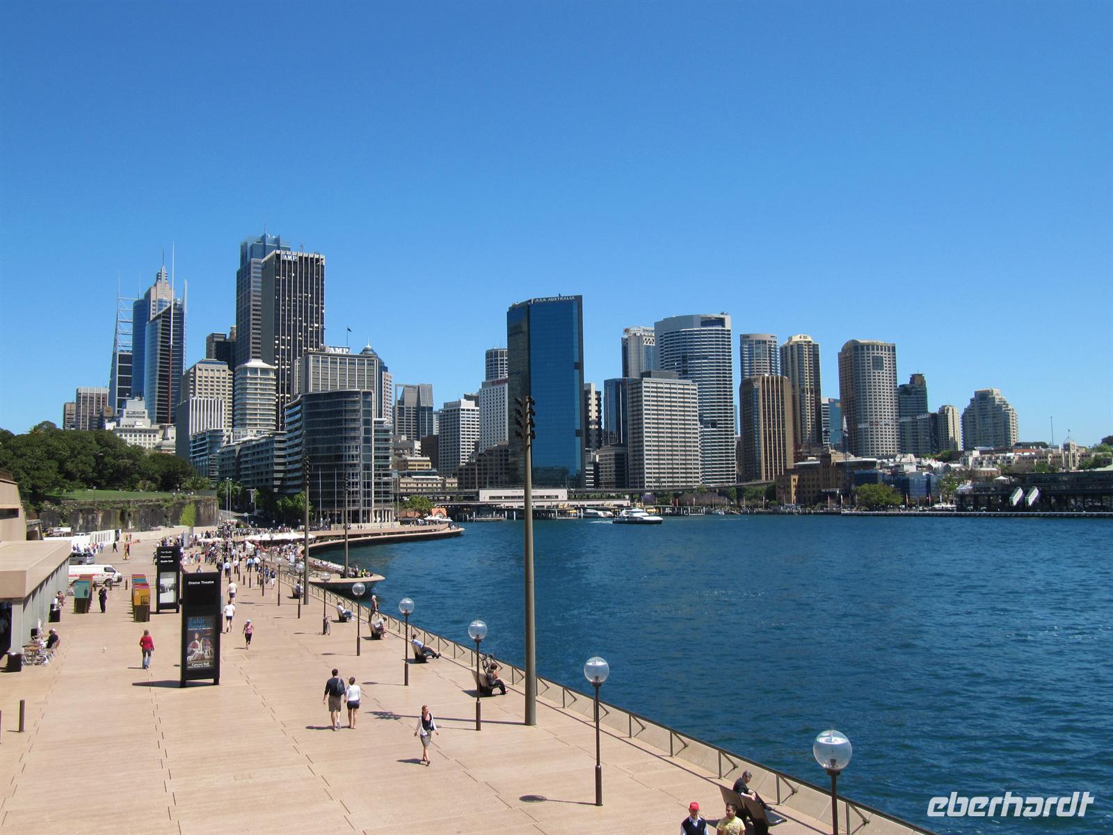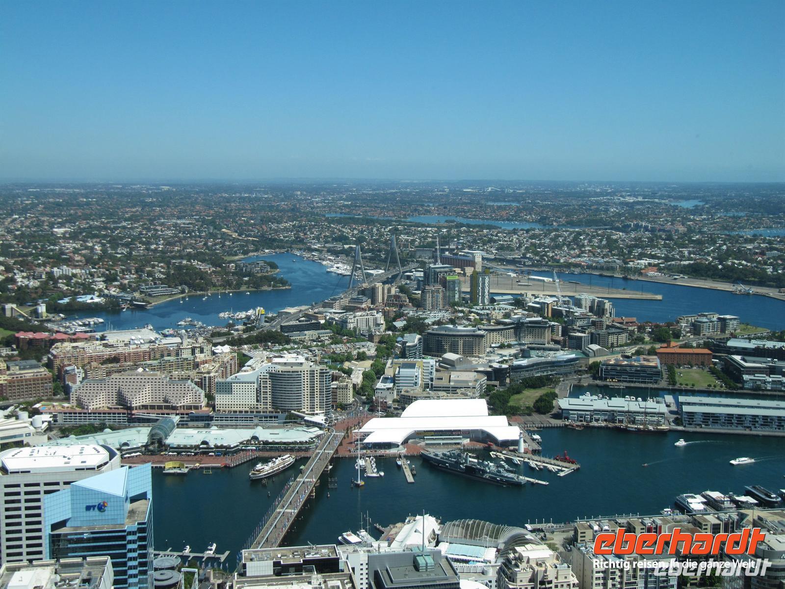 Genauso quirlig wie die Stadt begann auch unser Tag. Nach dem Frühstück spazierten wir entlang des Fährhafens zum Darling Harbour. Hier stiegen wir in die Monorail ? eine Hochbahn, welche sich durch das Innere Sydney schlängelt. Vorbei am Convience Center, über das bunte Chinatown durch das pulsierende Herz der Stadt zum Westfield Tower. Auf diesem Einkaufscenter ragt der 305 Meter hohe Sydney Tower. Von der Plattform blicken wir über den Hyde Park, zum Fussballstadion, über den Darling Harbour, die Oper bis in der Ferne zu den Blue Mountains. Einfach eine grandiose Aussicht von der wir uns nur schwer trennen konnten. Doch wir hatten schon unsere nächste Attraktion auf dem Plan. Mit Udo, unserem örtlichem Reiseleiter, besichtigten wir das Wahrzeichen der Stadt ? ein Meisterwerk der Architektur und UNESCO Weltkulturerbe ? die Sydney Opera. Hier erfuhren wir in Wort und Film wie mühsam dieser Bau von der Planung bis hin zur Eröffnung durch Queen Elisabeth II gewesen ist. Nach 16 Jahre Bauzeit und fast 14 mal so teuer als veranschlagt zeigt sich uns das heutige Kulturzentrum mit weißen Segeln und großzügigen Kultursälen. Ohne Zweifel das heutige Lieblingsobjekt vor unserer Kameralinse. Auch als wir im Anschluss die einstündige Hafenrundfahrt auf einem Katamaran gemacht haben. Am Nachmittag hatten wir jeder ein bisschen freie Zeit, bevor wir am Abend in einem Fischrestaurant am Hafen zu Abend essen. Mit Blick auf die illuminierte Oper genoßen wir ein deliziöses 3-Gänge-Menü.