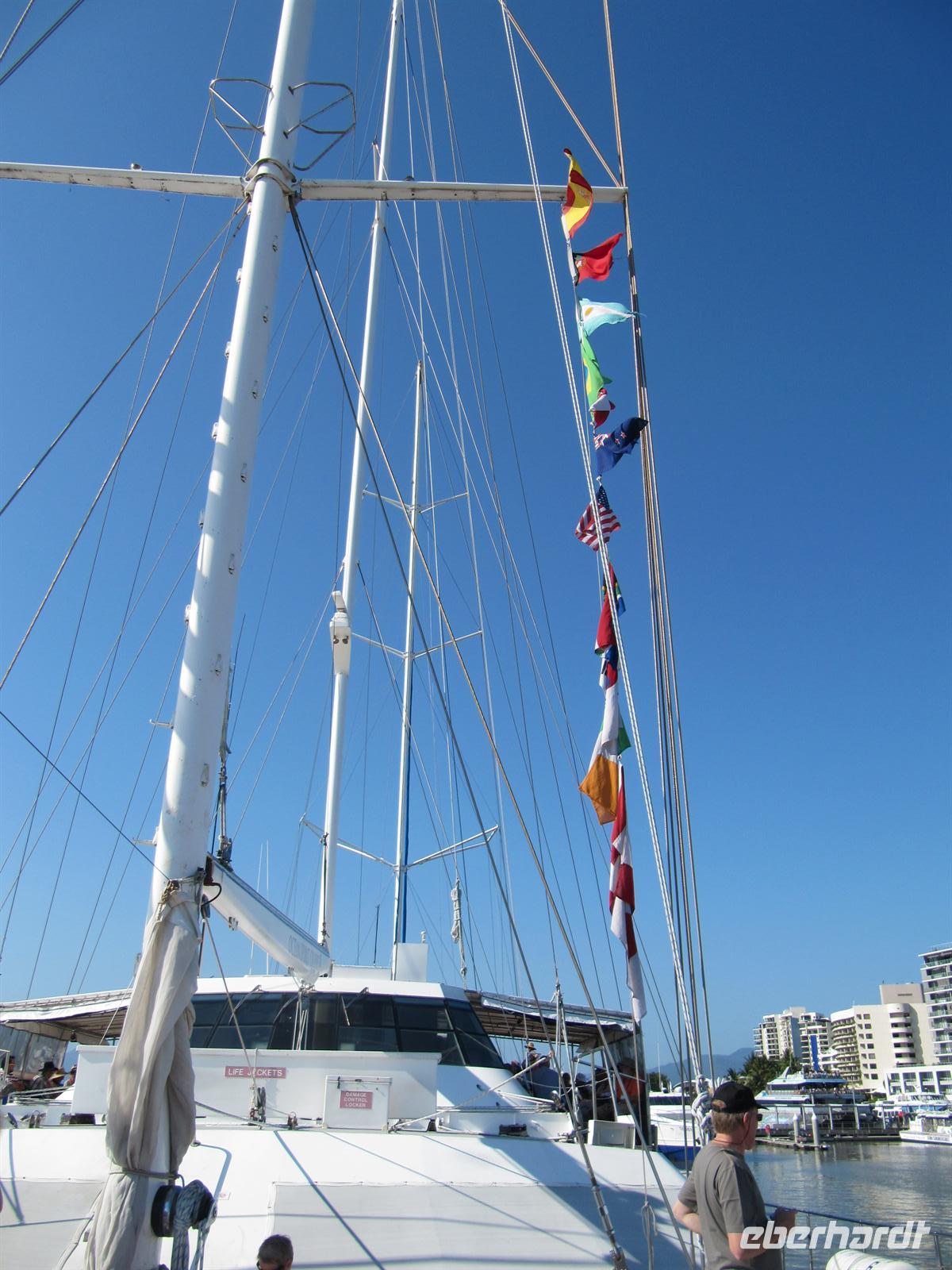 Nach einem umfangreichen Früchstück fuhren wir mit dem Bus zum Hafen Cairns. Hier startete unsere Katamaranfahrt zum Great Barriere Reef. Nach dem Start wurde der Hafen in Cairns immer kleiner und wir hatten einen fantastischen Blick auf die dahinterliegenden grünen Hügel. Gegen Mittag erreichten wir dann das Riff vor der Sandbank Michaelmans Bay. Hier stiegen wir dann in ein Glasbodenboot um, durch die besondere Bauweise saßen wir von Kopf bis Fuss unter Wasser und hatten so einen einmaligen Blick auf die Korallen und Fischwelt - Papageienfische, Clownsfische, Hirschgeweihkorallen und riesige Muscheln. Nach der halbstündigen Fahrt ging es wieder an Bord des Katamarans wo bereits ein schmackhaftes kalt-warmes Buffet auf uns wartete. Nach dem Essen konnten wir mit einem Boot zu der Sandbank fahren um im türkisblauen Wasser zu baden oder die Unterwasserwelt beim Schnorcheln zu entdecken. Am Nachmittag reichte man uns Kuchen und Kaffee und mit einer musikalischen Showeinlagen und Sekt beendeten wir unseren Aufenthalt im Riff. Am frühen Nachmittag waren wir wieder in Cairns angekommen und schlenderten durch die Hafenbucht zu unserem Hotel. Am Abend wurden wir wieder kulinarisch verwöhnt.