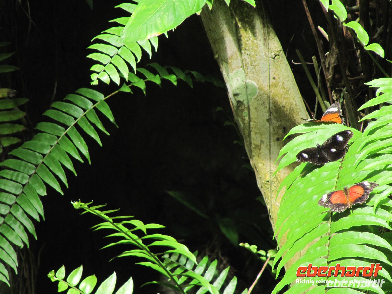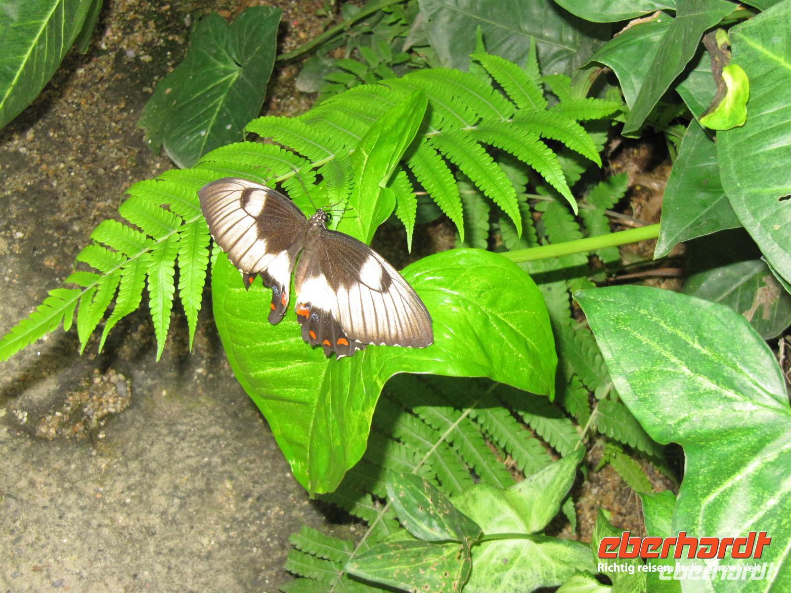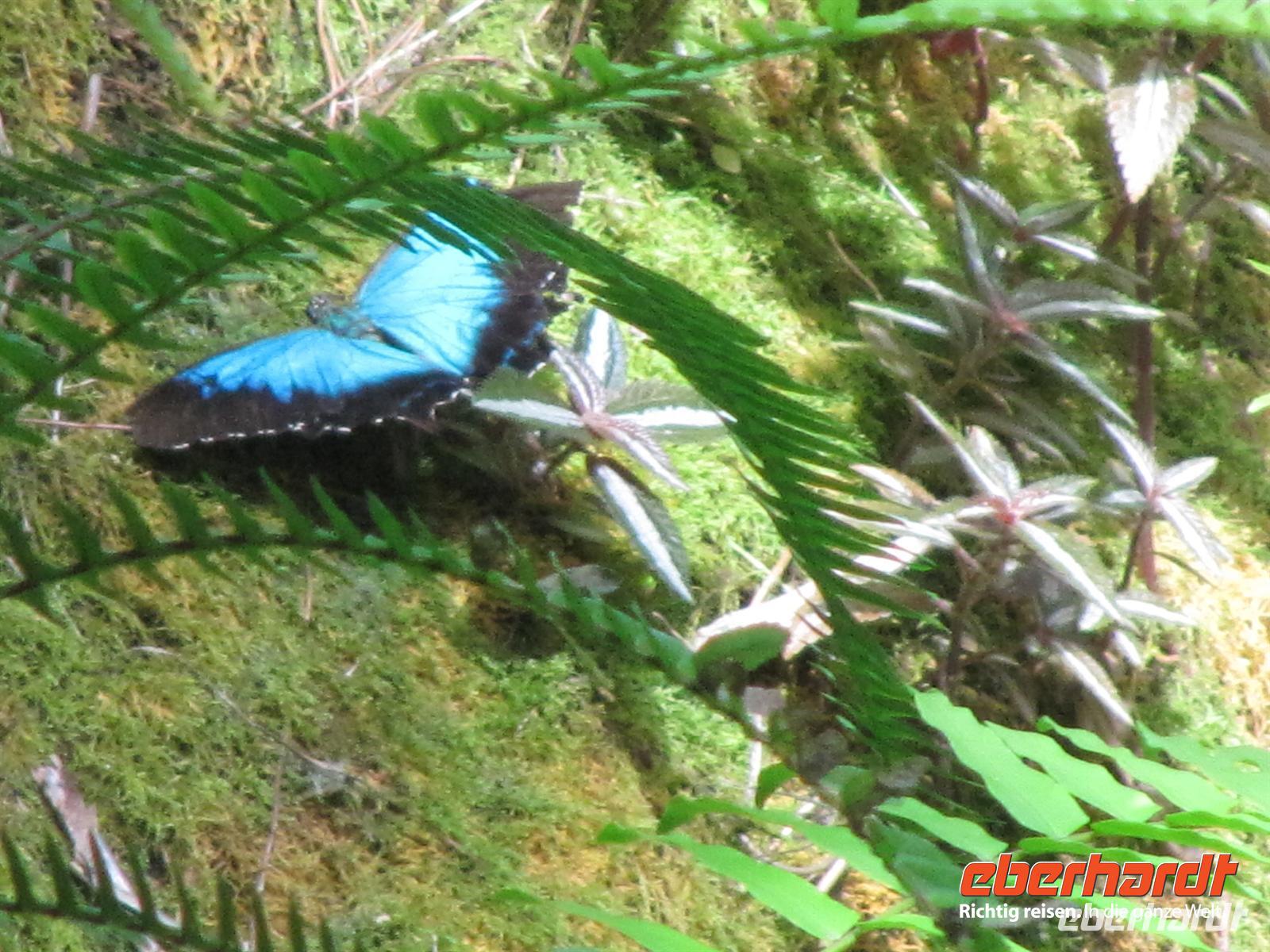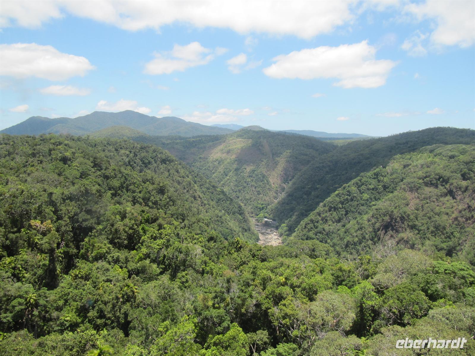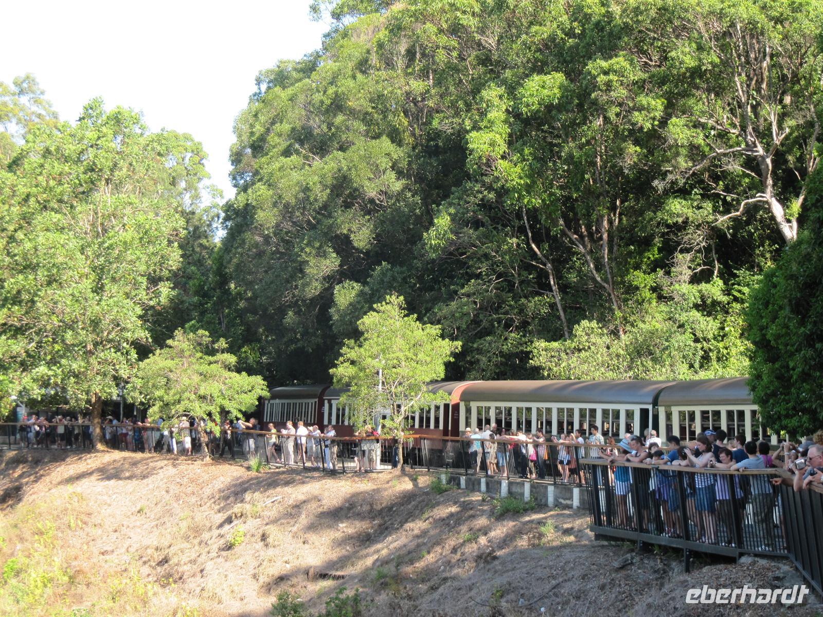 Auch heute verschaffte uns das leckere Frühstücksbuffet einen guten Start in den Tag. Den Vormittag widmeten wir wieder der Kultur der Ureinwohner. Im Kulturzentrum der Aboriniges hörten wir den Klängen des Didergidoospielers. Anschließend besuchten wir ein visuell, raffiniert gemachtes Theaterstück, welches die Entstehungsgeschichte Australiens aus dem Blickwinkel der Ureinwohner zeigt. In der Außenanlage des Kulturzentrums erwartete uns eine Show mit traditionellen Tänzen. Bei dem Versuch einen Boomerang wieder zurück kommen zu lassen haben viele unserer Gäste Talent bewiesen. Wäre unsere Sippe jedoch auf die Beute der Sperrwerfer angewiesen, wäre es nicht so gut um uns bestellt. Nach einem eindrucksvollen und heiteren Vormittag im Aborigines Kultuzentrum fuhren wir mit der weltweit längsten Gondelbahn über die Dächer des Regenwaldes nach Kuranda. 7,5 Kilometer lang eröffnete sich uns ein einmaliger Blick über die Flora des Regenwaldes, die Schluchten und die hügelige Landschaft. Im Bergdorf Kuranda angekommen spazierten wir entlang der Hauptstrasse des Örtchens - gesäumt von vielen Cafés, Restaurants, Souvenirsläden und bunten Gallerien. Hier verbrachten wir etwas Freizeit bevor wir die größte Schmetterlingsfarm des südlichen Hemisphäre besuchen würden. Am frühen Nachmittag fuhren wir mit der Kuranda Scenic Railway hinab ins Tal. Die Aussichtsbahn fuhr entlang des Barron Flusses, des Barron Wasserfalles durch zahlreiche Tunnel hinunter nach Cairns. Nach einem leckeren Abendessen im Hotel spazierten wir zum Nachtmarkt von Cairns. Bis 23.00 Uhr werden hier allerlei Waren aus der Umgebung, Souvenirs, Schmuck und Kunsthandwerk angeboten.