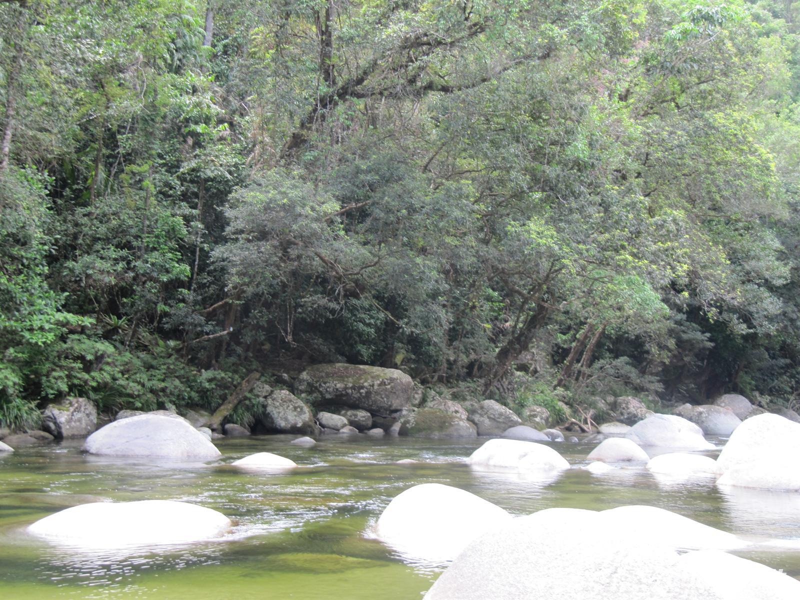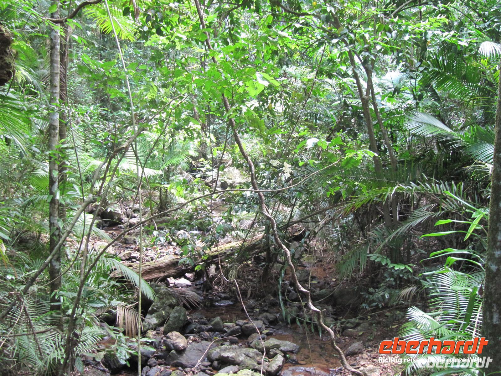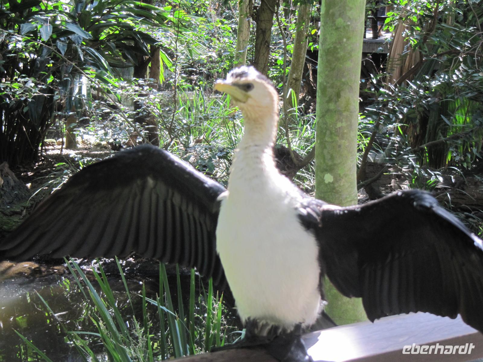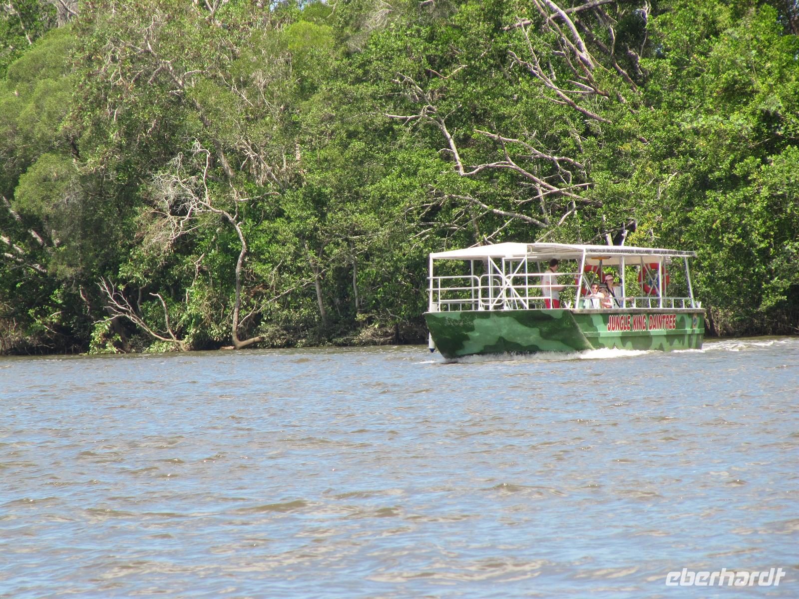 Natur pur steht heute auf dem Programm - wir fahren in den Daintree Nationalpark. Am Vormittag besuchen wir einen Tierpark der die ansässigen Tiere und Pflanzen beherbergt. Bei der Suche nach den Krokodilen, dem Füttern und streicheln der Wallabies und dem bestaunen der bunten Vögel hatten wir viel Freude. Unser nächster Halt war in der Region des Moosman Georgs, wo wir eine kleine Wanderung entlang des Flusses durch den Regenwald unternahmen. Zu Mittag fuhren wir tief in den Regenwald hinein, bis wir an einem kleinen beschaulichen Teehaus ankamen. In familiärer Atmosphäre servierte man uns die Spezialität des Hauses: Baramundifilet mit exotischen Früchten der Umgebung. Noch nie gesehene Früchte landeten auf unserem Teller und nach ausführlicher Erklärung durch den Gastwirt auch in unserem Mund. Nach der Stärkung fuhren wir zum Daintree River um auf Krokodilbeobachtung zu gehen. In einem kleinen Boot fuhren wir entlang der Mangrovenwälder in der Hoffnung das ein oder anderen Krokodil zu entdecken - was uns im Übrigen auch gelungen ist. Am Nachmittag erkunden wir auf einer kleinen Wanderung dann die Heimat des Comodoran, den hiesigen Regenwald. Bevor wir im Hotel ankamen lud uns unser Reiseleiter Michael noch auf einen kurzen Spaziergang am Meer ein. Am Abend bedienten wir uns vom reichhaltigen Buffet. Nachdem wir den leckeren Nachtisch verzehrten konnten wir die Reise noch mal Revue passieren lassen. Bei einer Bildershow und einem Gläschen Sekt erfreuten und lachten wir über gemeinsam erlebte Ereignisse.