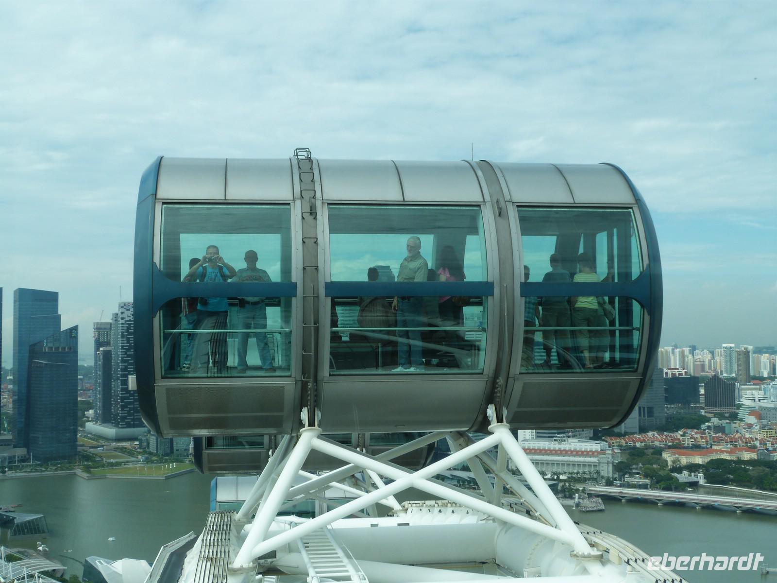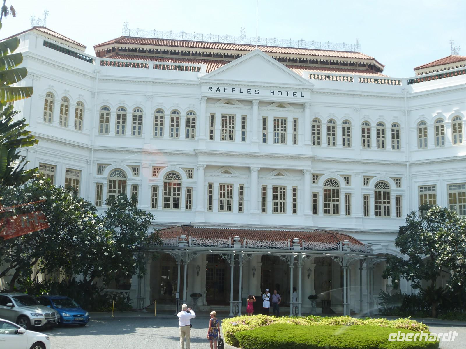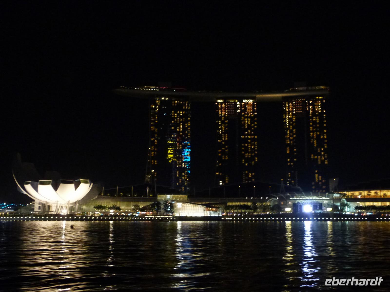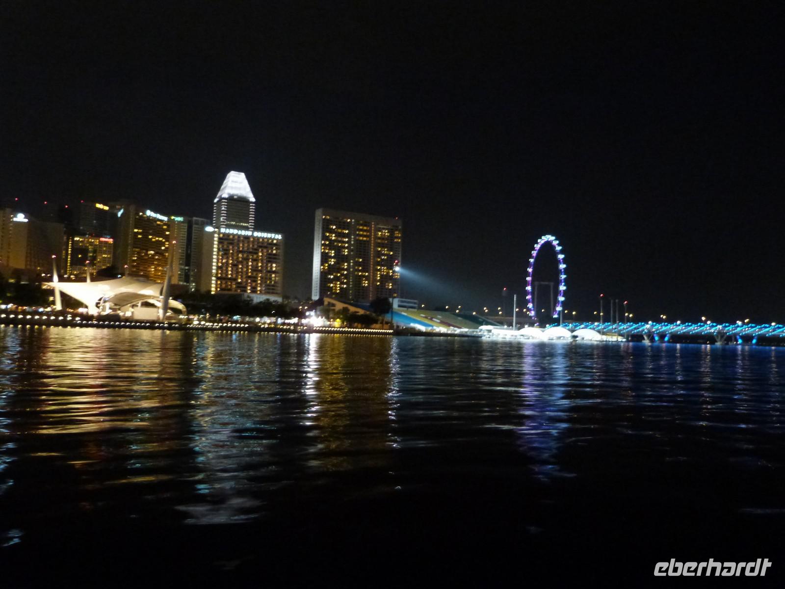 Am Nachmittag kamen wir nach ca. 11 Stunden Flug in Singapur an und die Stadt nahm uns mit tropischen Temperaturen in Empfang. Wir trafen auf unsere Reiseleiterin Martine in der Empfangshalle des Flughafens und wir fuhren in unser Hotel „Grand Plaza City Hall". Die großräumigen Zimmer mit geschmackvoller Einrichtung luden zum Verweilen ein. Nach einer kleinen Pause trafen wir uns alle an der Rezeption und liefen zum Singapur River, wo wir in einem kleinen asiatischen Restaurant zu Abend essen. Während des Abendessens wurde es immer dunkler und wir entschieden uns noch eine Bootsfahrt auf dem Singapur River zu unternehmen. Die herrliche Beleuchtung der Stadt gab dieser einen ganz besonderen Glanz. Unsere Bootsfahrt führte am „Merlion", dem Wahrzeichen der Stadt, vorbei. Die Figur „Merlion" ist ein Fabelwesen bestehend aus dem Körper eines Fisches und dem Kopf eines Löwen. Die beleuchtete Skyline der Stadt gab ein schönes Fotomotiv ab. Mit vielen schönen Eindrücken liefen wir zurück zum Hotel und gingen zu Bett.