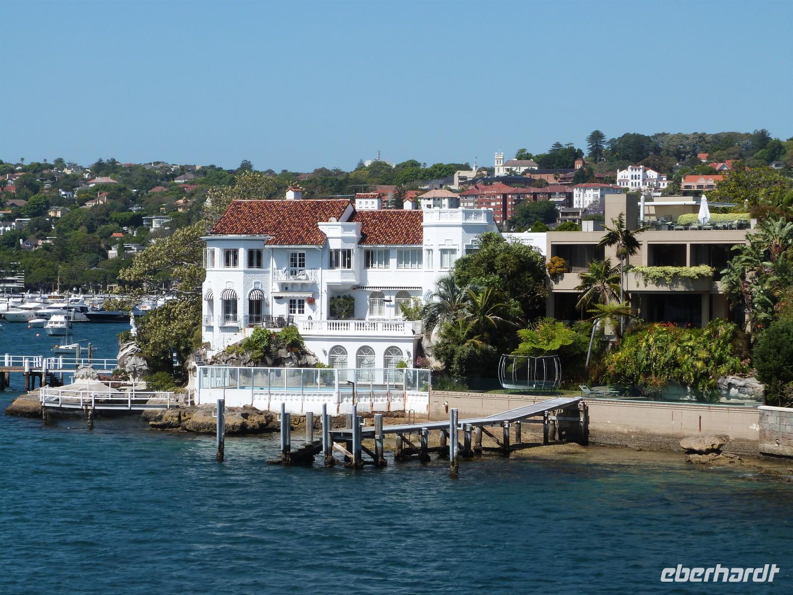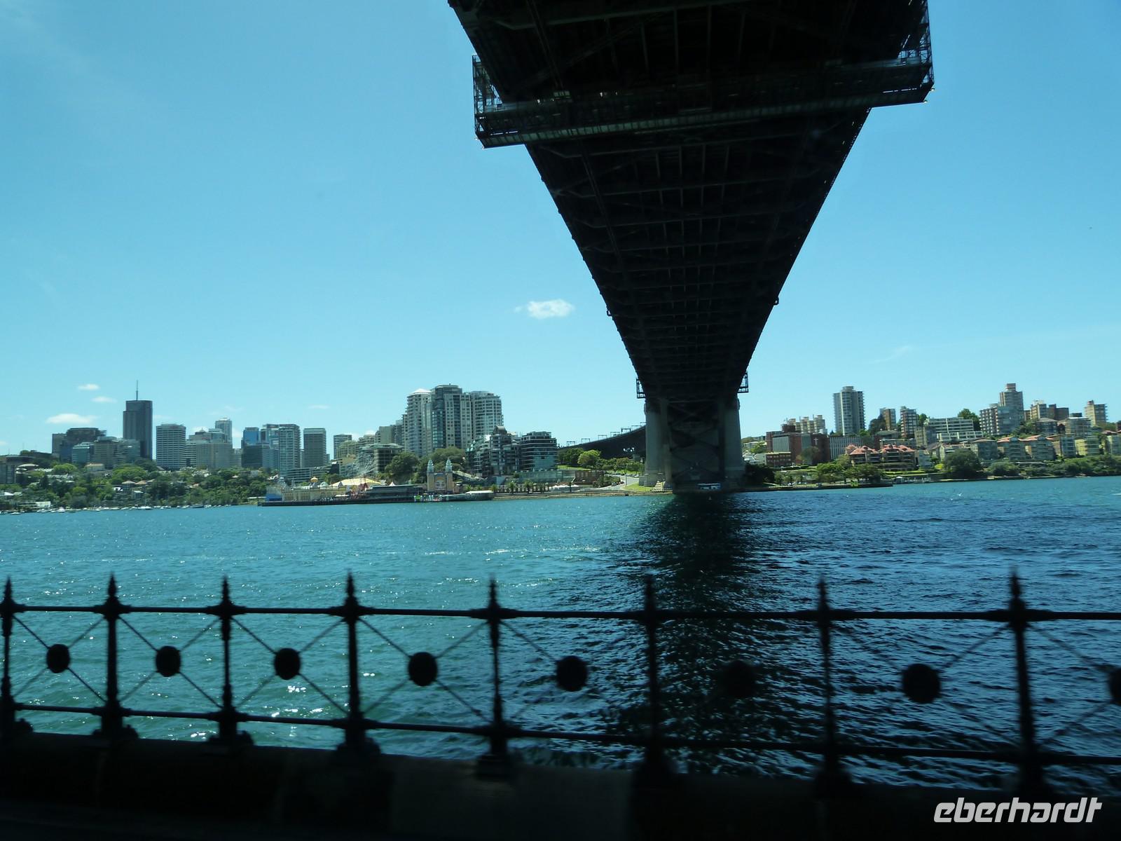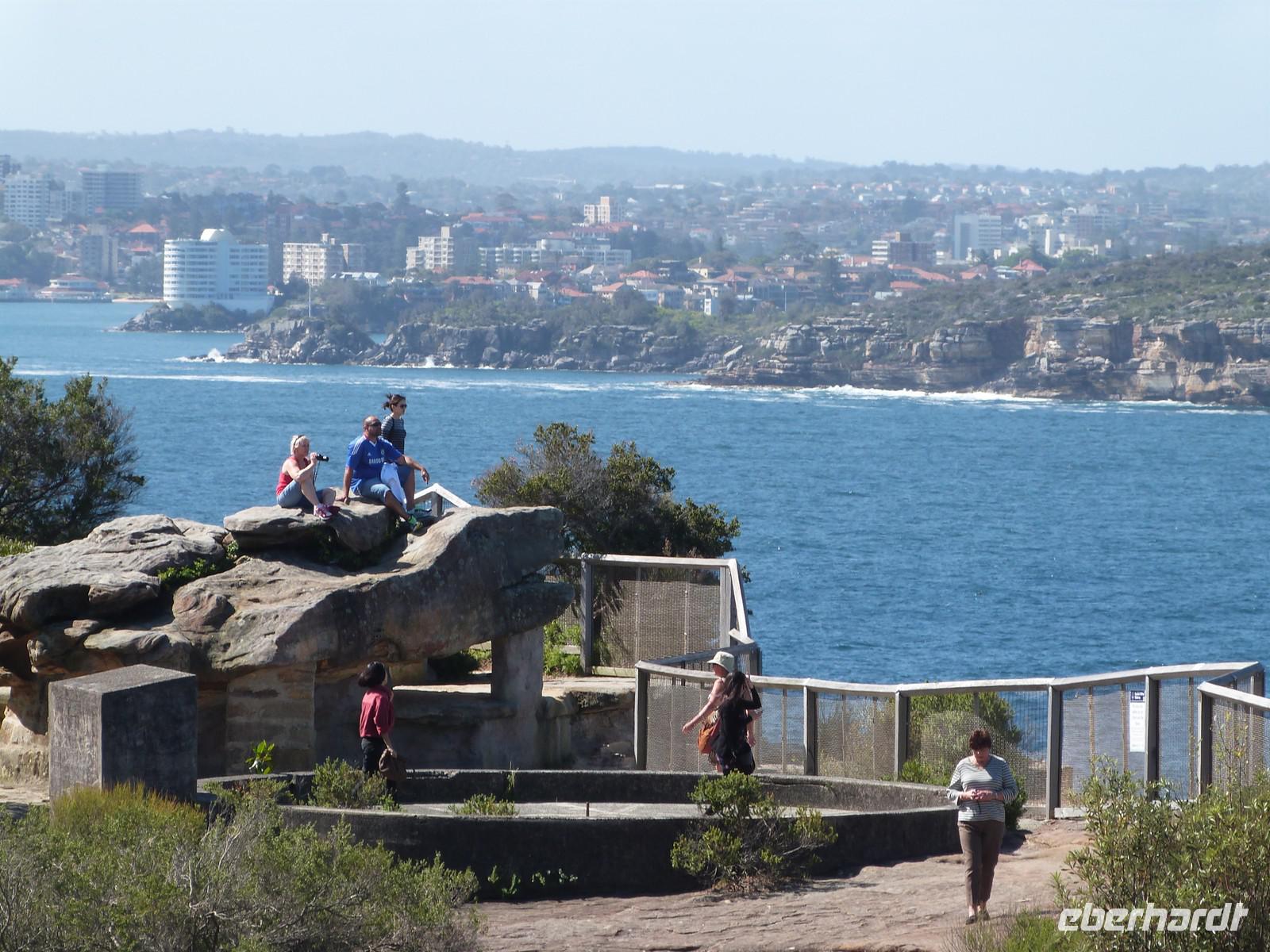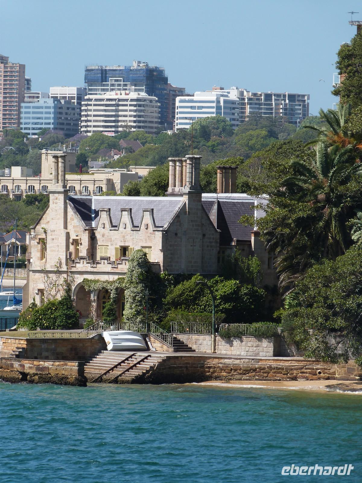Nach einem köstlichen Frühstück trafen wir uns mit Bernd in der Hotellobby. Heute entdeckten wir die „Höhepunkte Sydneys". Unser Tag begann mit dem Spaziergang zum Hügel der Sternenwarte, von wo aus wir einen tollen Blick auf die Harbour Bridge hatten. Danach liefen wir durch das Vergnügungsviertel „The Rock´s", welches erst am Abend richtig lebt. Kleine englische Bar´s und Restaurants laden dort zum Verweilen ein. Entlang der kleinen Promenade kamen wir zum „Circular Quay", dem Abfahrtspunkt unserer Hafenrundfahrt. Als Bernd die Tickets holte, lief ich mit der Gruppe noch zum ältesten Haus der Stadt, dem Cadman´s Cottage. Nicht ohne Grund wird Sydneys Hafen als der „schönste Hafen der Welt" bezeichnet. Dieser besticht durch seine vielen kleinen Buchten, die einen ganz besonderen Charme der Stadt verleihen. Zu den Buchten gehören z.B. „Elizabeth Bay" oder „Double Bay". Aber auch die kleine Bucht „Shark Bay". Bei herrlichem Sonnenschein konnten wir die Fahrt auf dem Schiff genießen und sahen die Stadt von der Wasserseite aus. Nach einer