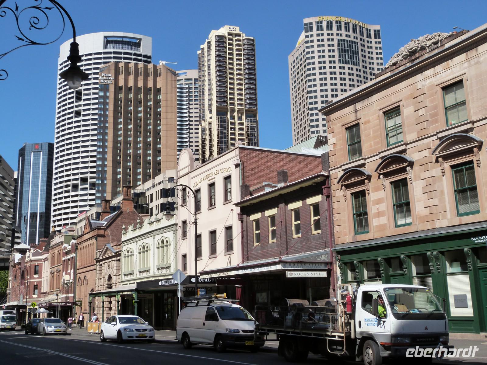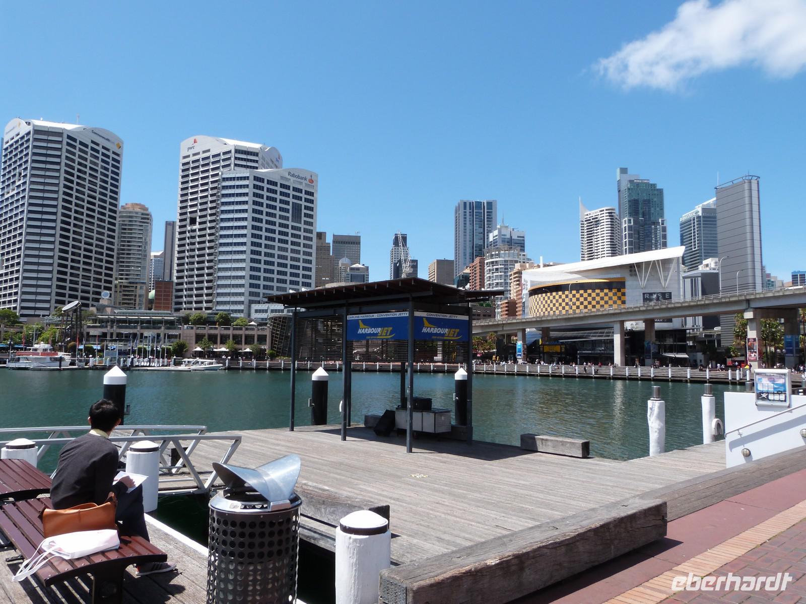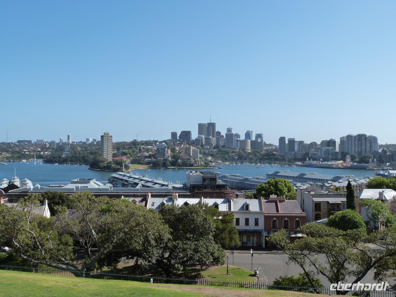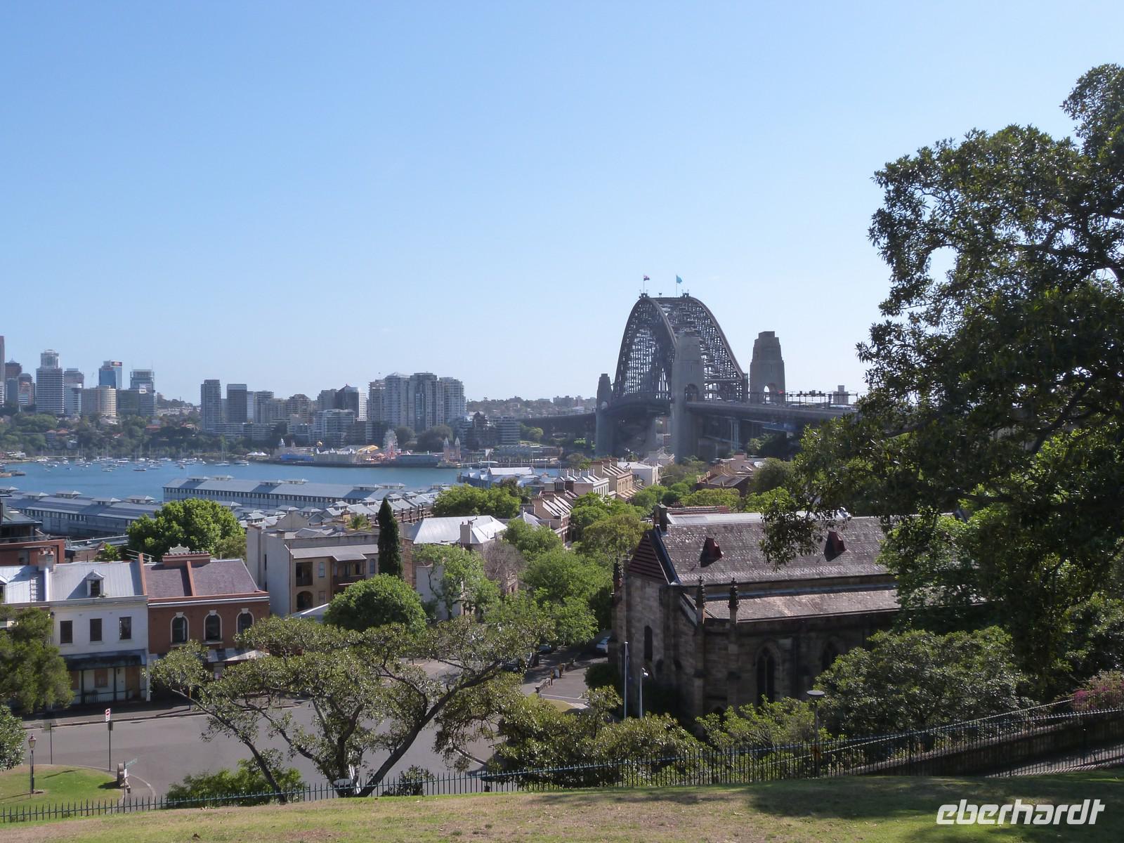 Nach einem köstlichen Frühstück trafen wir uns mit Bernd in der Hotellobby. Heute entdeckten wir die „Höhepunkte Sydneys". Unser Tag begann mit dem Spaziergang zum Hügel der Sternenwarte, von wo aus wir einen tollen Blick auf die Harbour Bridge hatten. Danach liefen wir durch das Vergnügungsviertel „The Rock´s", welches erst am Abend richtig lebt. Kleine englische Bar´s und Restaurants laden dort zum Verweilen ein. Entlang der kleinen Promenade kamen wir zum „Circular Quay", dem Abfahrtspunkt unserer Hafenrundfahrt. Als Bernd die Tickets holte, lief ich mit der Gruppe noch zum ältesten Haus der Stadt, dem Cadman´s Cottage. Nicht ohne Grund wird Sydneys Hafen als der „schönste Hafen der Welt" bezeichnet. Dieser besticht durch seine vielen kleinen Buchten, die einen ganz besonderen Charme der Stadt verleihen. Zu den Buchten gehören z.B. „Elizabeth Bay" oder „Double Bay". Aber auch die kleine Bucht „Shark Bay". Bei herrlichem Sonnenschein konnten wir die Fahrt auf dem Schiff genießen und sahen die Stadt von der Wasserseite aus. Nach einer