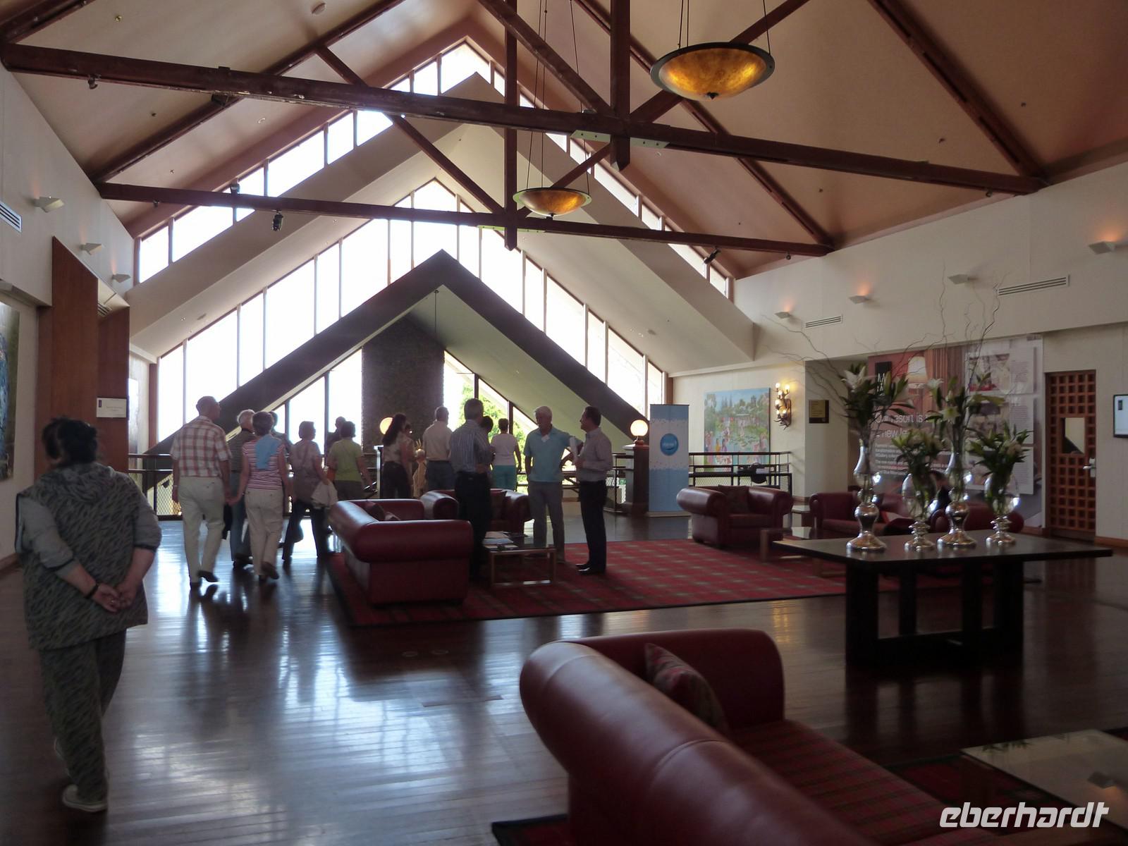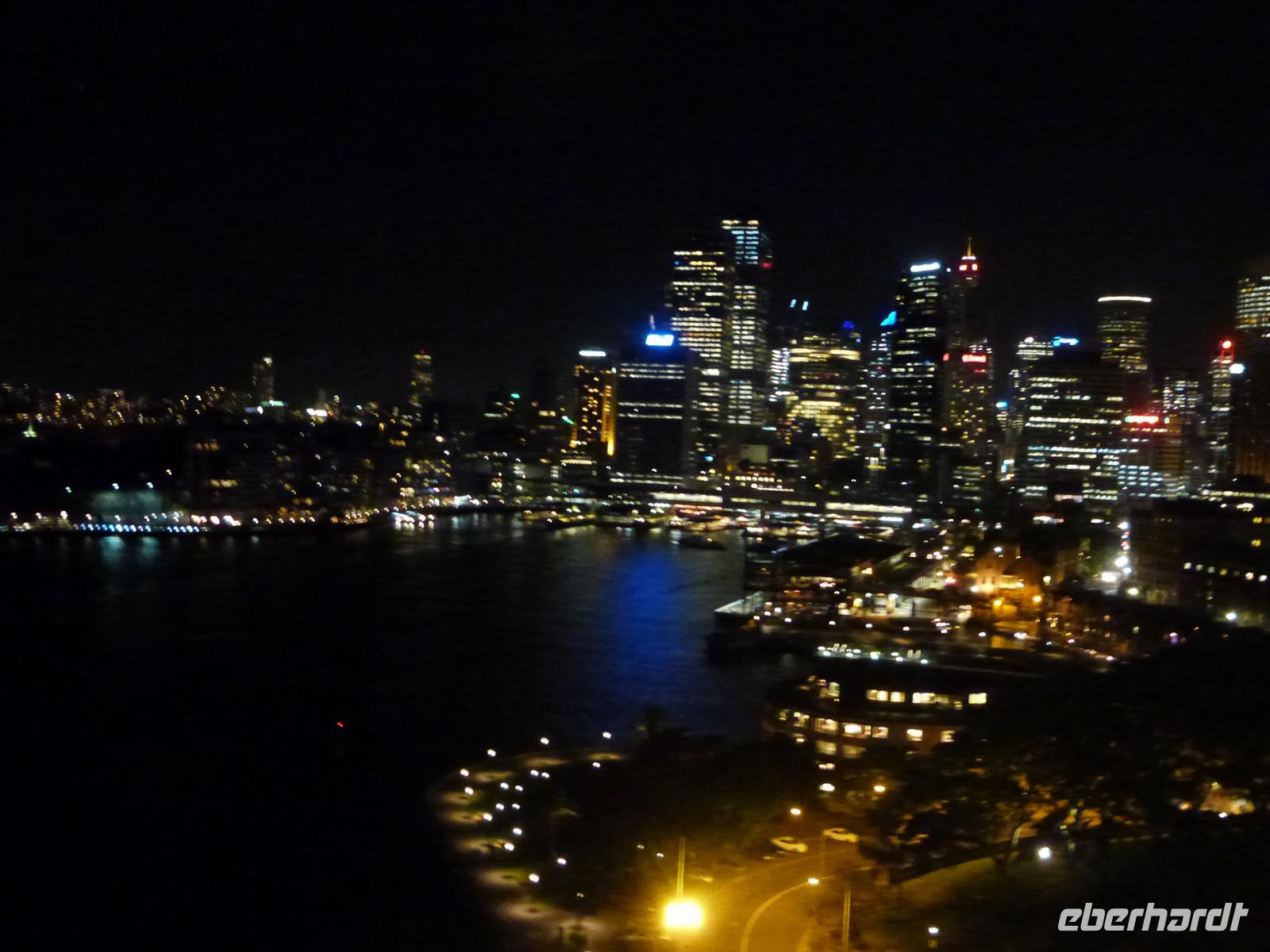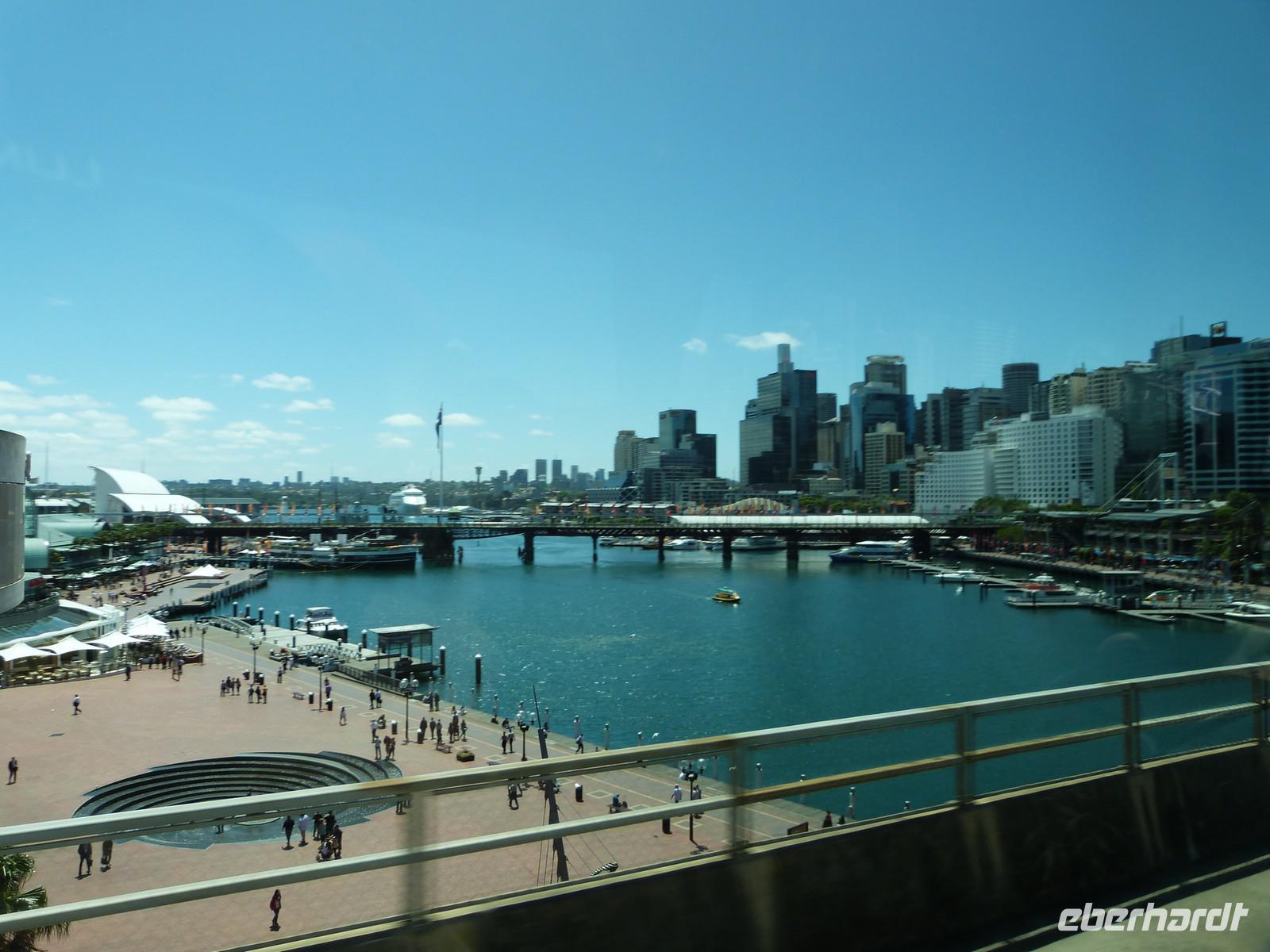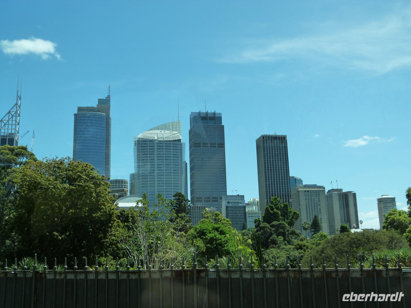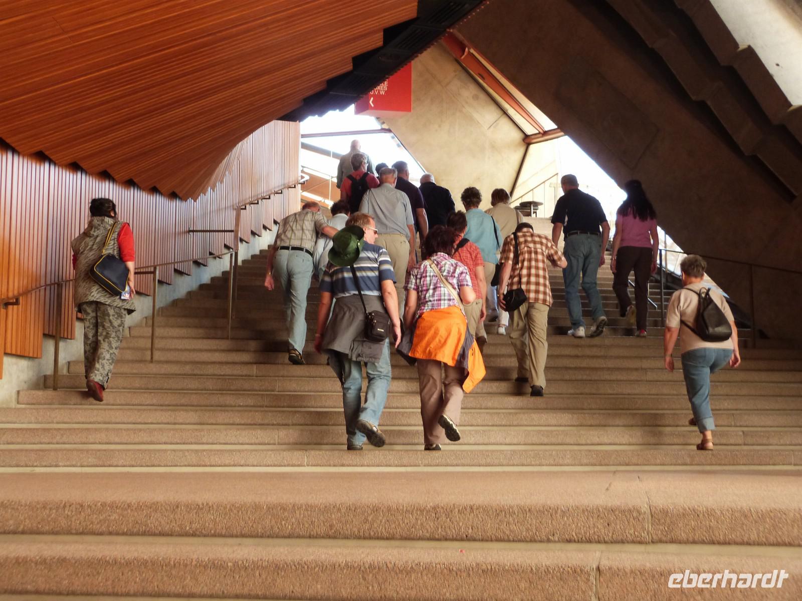 2- stündigen-Fahrt hatten wir wieder Land unter den Füßen und wir liefen zum legendären Opernhaus. 1957 gewann der dänische Architekt Jörn Utzon den Wettbewerb zur Gestaltung des Opernhauses. Während der ersten Jahre entstanden jedoch technische Probleme, die die Bauzeit verlängerten und die Kosten explodieren ließen. Nach 7 Jahren Bauzeit stieg Jörn Utzon aus dem Projekt aus und verließ Australien. Mittels einer Opernhaus-Lotterie wurden zusätzliche Spendengelder aufgebracht und das Architekturwunder konnte nach 14 Jahren und ca. 102 Mio. Australische Dollar beendet werden. 2004 wurde nach Plänen vom Architekt Jörn Utzon die Eingangshalle gestaltet. Das Opernhaus heute ist kein reines Opernhaus, sondern beinhaltet neben dem „Opera Theater" auch noch die „Konzerthalle", das „Drama Theater", das „Playhouse" und verschiedene Musikstudios. Bei einer interessanten Führung konnten wir uns die verschiedenen Säle ansehen. Am Nachmittag hatten wir Freizeit und die Mehrheit der Gruppe lief mit mir durch den „Königlichen Botanischen Garten", entlang des Palmenhauses und weiter vorbei an australischen Pflanzen. Verschiedene Farne und Palmen sowie Bananenstauden begleiteten uns auf unserem Weg. Als wir am Ende des Gartens ankamen, liefen wir am „Sydney Tower" vorbei und kamen zu den Einkaufsstraßen George Street und Pitt Street. Dort flanierten wir an edlen Boutiquen vorbei und kamen am Bankenviertel der Stadt vorbei. Am Wolkenkratzer „Summit O" hielten wir und fuhren in das dortige Drehrestaurant hinauf. Von da aus hatten wir einen ganz tollen Blick auf die Stadt Sydney und genossen den Ausblick bei einer Tasse Kaffee. Unser Abendessen nahmen wir heute an der Waterfront in Sydney ein im gleichnamigen Restaurant. Uns wurde Baramundi-Fisch gereicht, einer der Speisefische Australiens. Sehr lecker! Den Abend ließen wir dann bei einem Spaziergang auf der beleuchteten Harbour Bridge ausklingen.