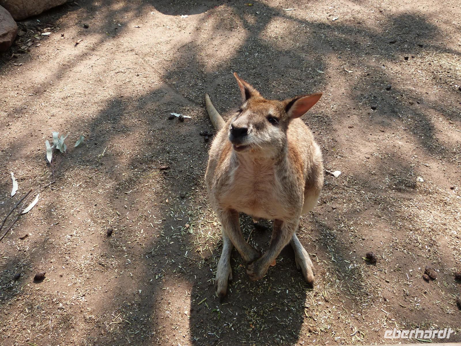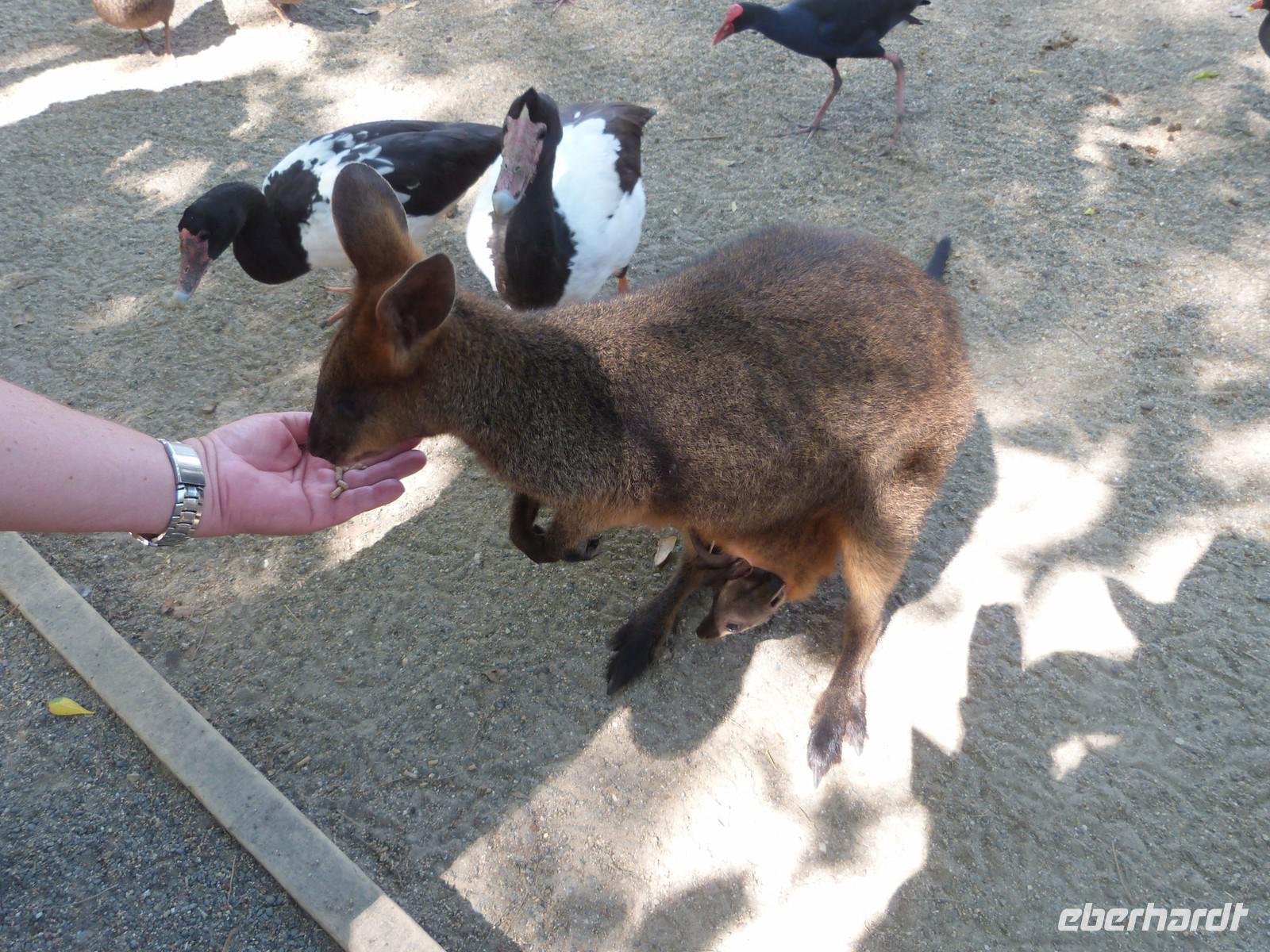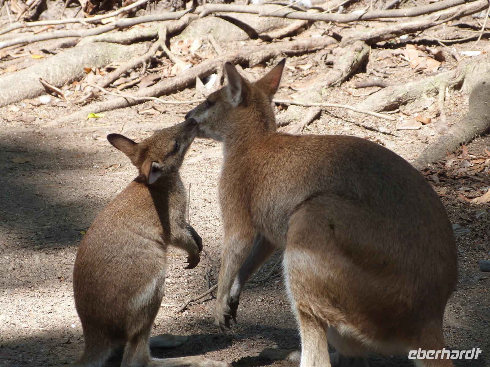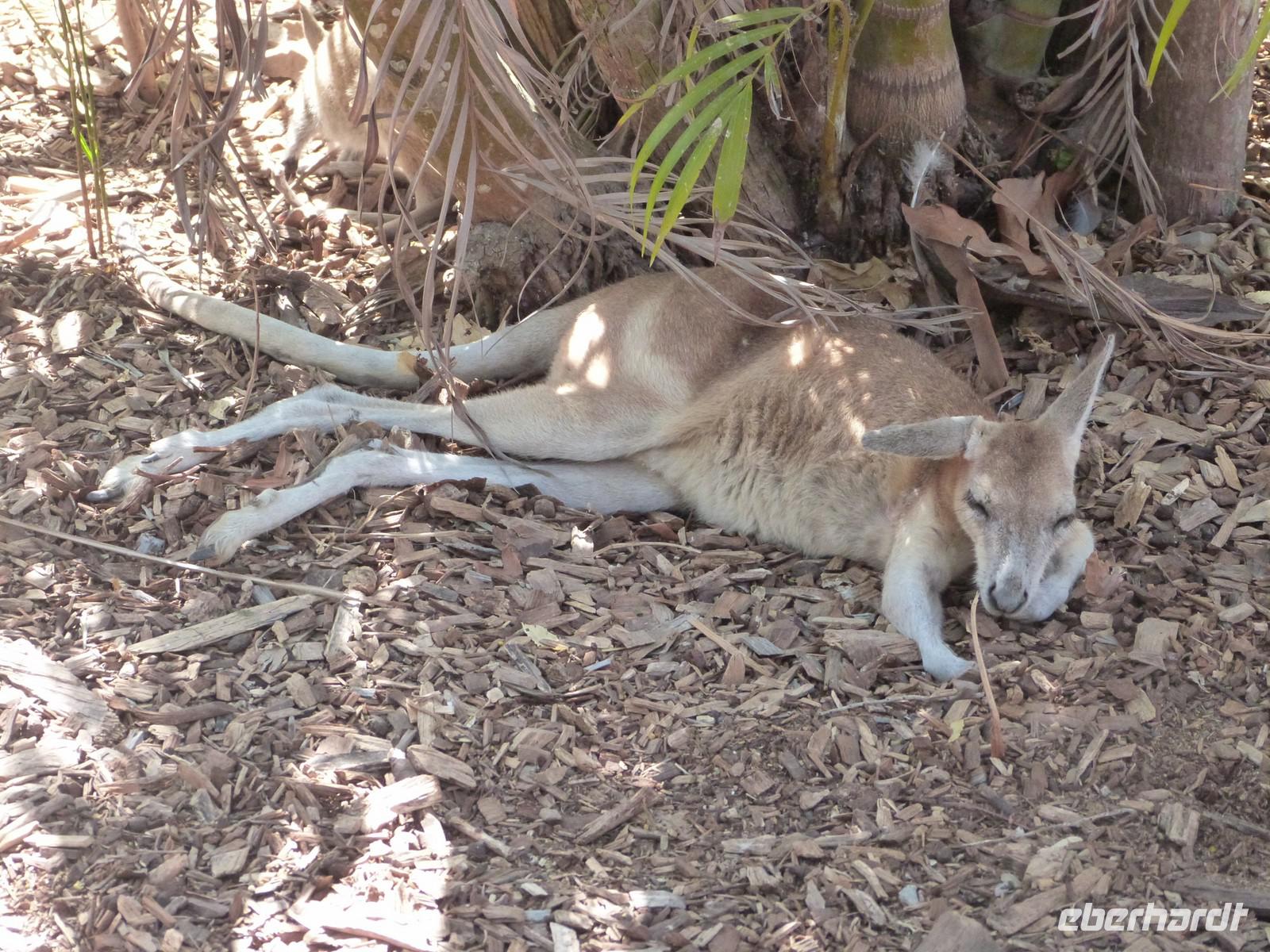 Heute war unser letzter Besichtigungstag in Australien und wir hatten noch einmal einen ganz tollen Tag. Karin holte uns nach dem Frühstück im Hotel ab und wir fuhren in den „Habitats Wildlife Park", einem Tierpark. Dort konnten wir uns von Koalas, Wallabys und Kängurus persönlich verabschieden, in dem wir sie fütterten und streichelten. Eine tolle Erfahrung die Tiere hautnah zu sehen. Für alle von uns ein weiterer Höhepunkt der Reise. Am Mittag ging es dann zum Erfrischen zu Mossman Gorge, wo wir im eiskalten Wasser unsere Füße abkühlen konnten. Im Ort Mossman aßen wir im „Mossman Tea House" zu Mittag und der Besitzer des Lokals erläuterte uns die Pflanzen des Regenwaldes. Für was sie alles gut waren und ob sie essbar waren. Nach dem Essen fuhren wir an Zuckerrohrfeldern vorbei und kamen zum Daintree River, wo wir auf „Krokodilsafari" gingen. Bei unserer Bootsfahrt sahen wir ein Salzwasserkrokodil im Wald liegen und erfuhren Wissenswertes über das Ökö-System Regenwald in Australien. Die Mangroven und die Ruhe in diesem Gebiet werden uns in guter Erinnerung bleiben. Am Abend packten wir unsere Koffer, denn am nächsten Tag traten wir unsere Heimreise nach Deutschland an.