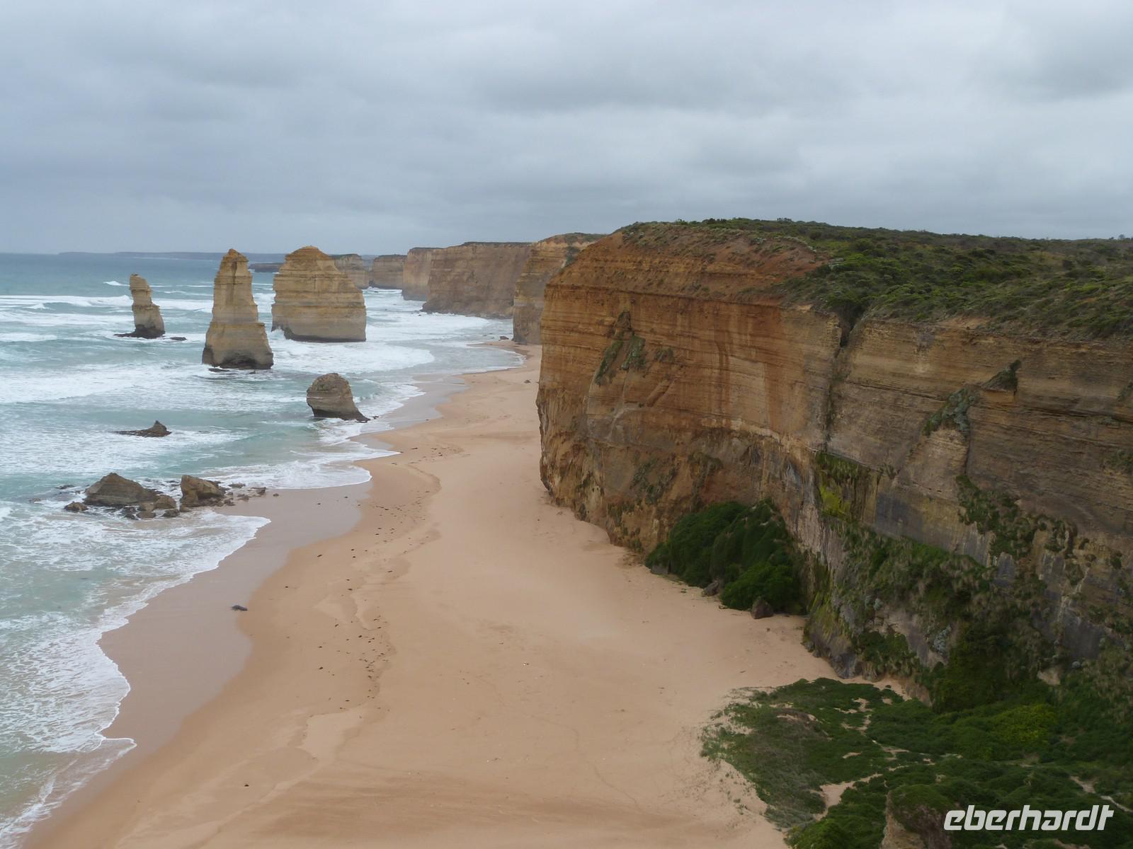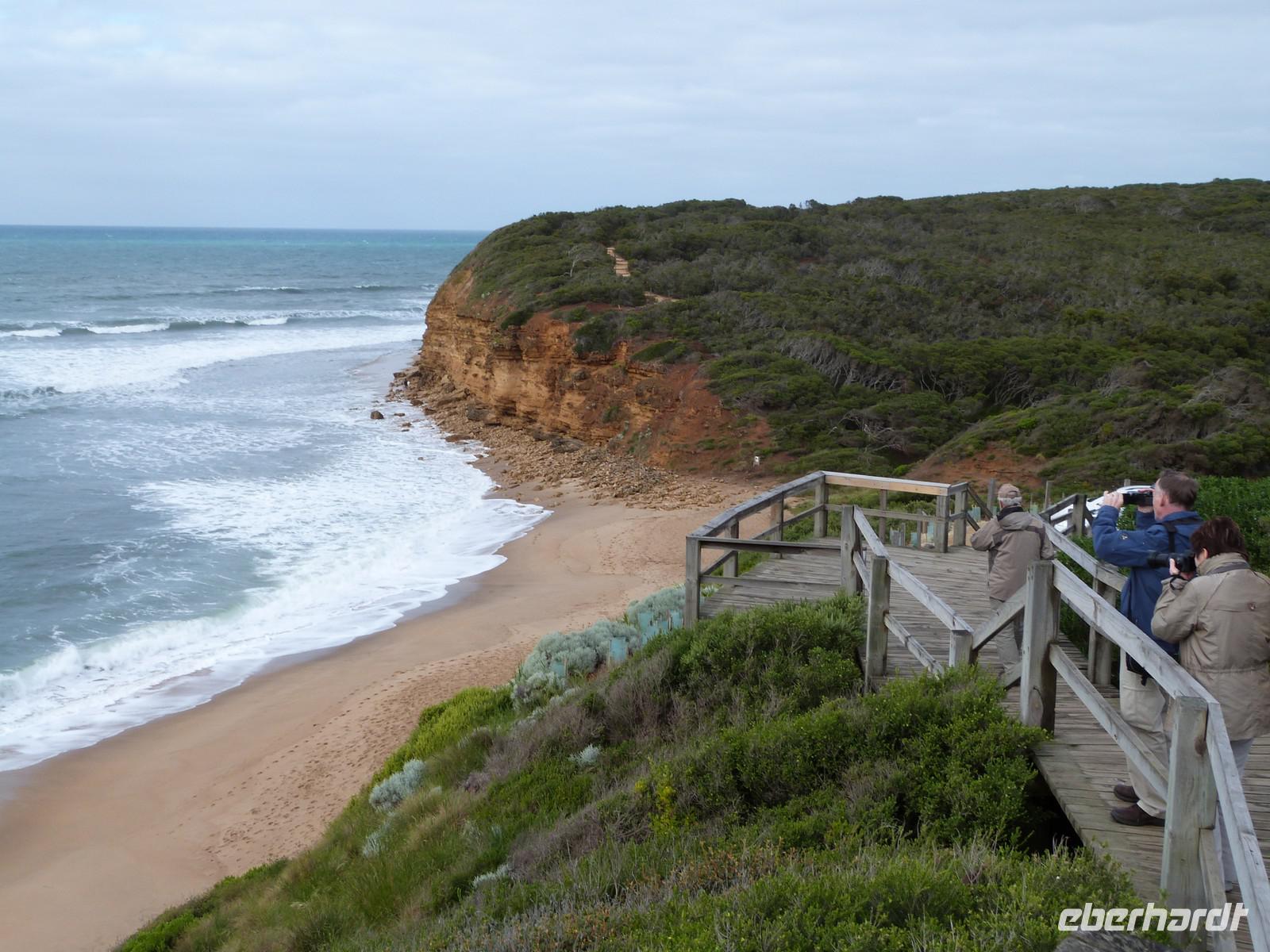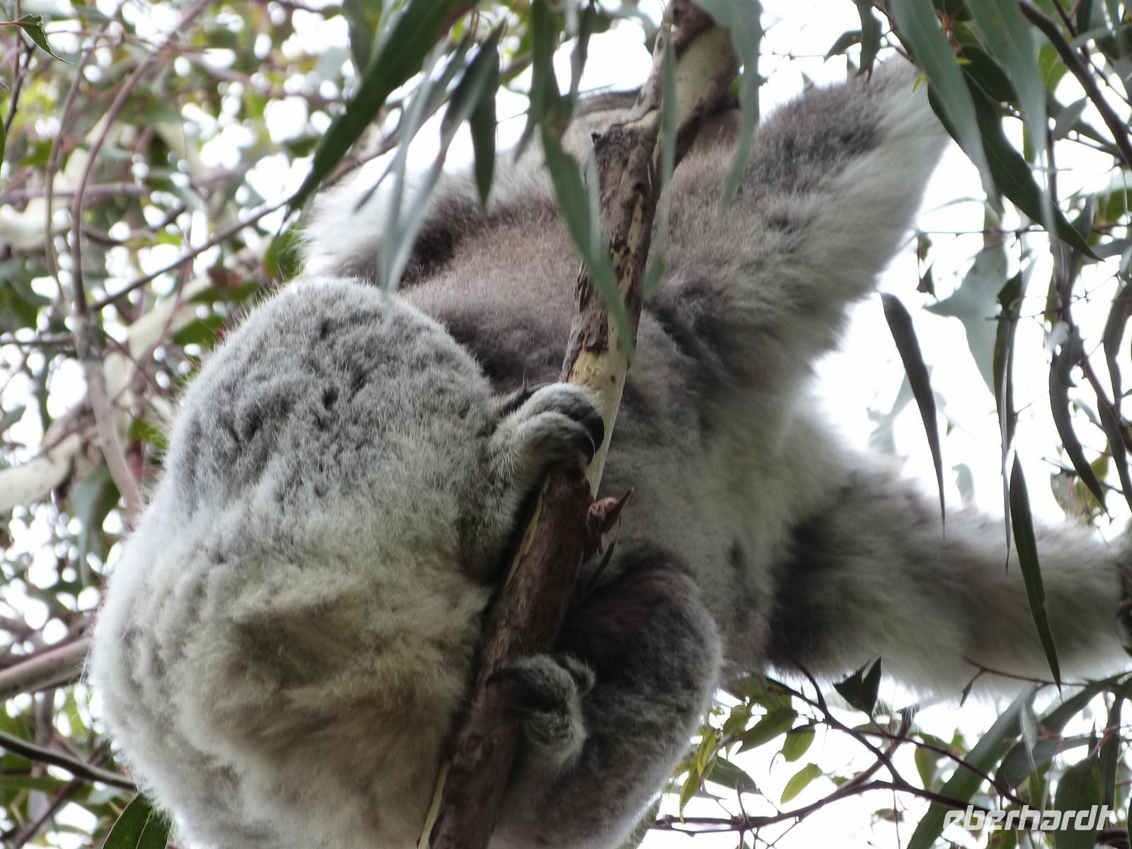 Nach dem es die ganze Nacht in Melbourne geregnet hatte, hofften wir auf besseres Wetter. Wir hatten Glück und an der Great Ocean Road erwartete uns zwar Wind, aber es hörte wenigstens auf zu regnen. Wir fuhren mit Rainer aus Melbourne heraus und konnten einen Eindruck vom australischen Landleben bekommen. Viele kleine Farmen sahen wir unterwegs. Die Great Ocean Road zählt zu den schönsten Panoramastraßen der Welt und besticht mit seiner Länge von 320 Kilometern. Vorbei an Bells Beach, dem schönen Örtchen Lorne und Apollo Bay, sahen wir unterwegs kleine Ortschaften im typischen maritimen Stil, herrliche Buchten mit Sandstränden und Klippen. Ein wahres Paradies! Auf dem Weg zu den legendären „12 Aposteln" hielten wir am Straßenrand an und konnten wildlebende Koalas in den Bäumen sitzen sehen. Wussten Sie, dass Koalas 20 Stunden am Tag schlafen? Oder das die Koalas nur an der Süd-Ostküste und an der Ostküste Australiens leben? All diese spannenden Informationen erfahren Sie bei dieser Reise!
