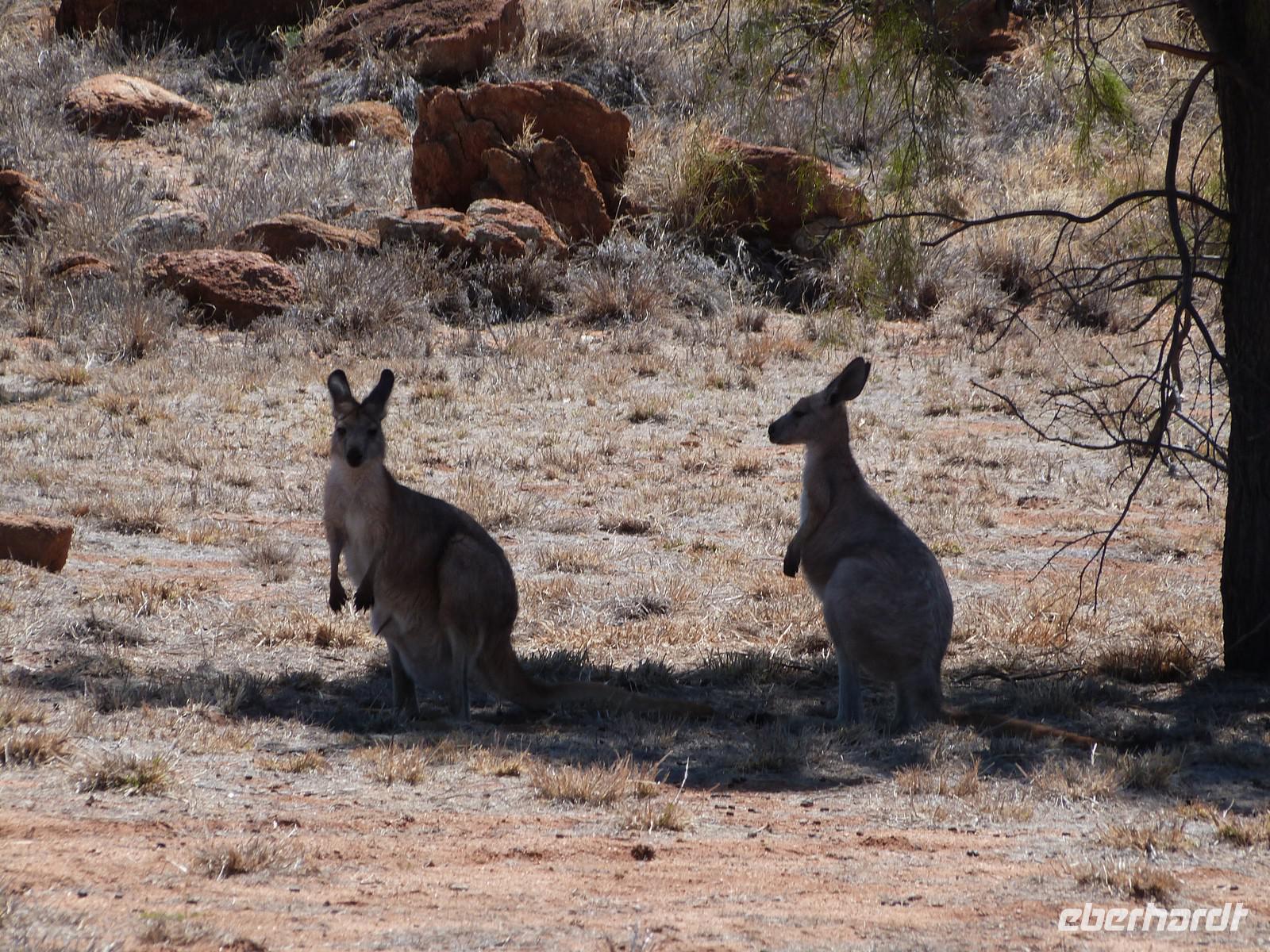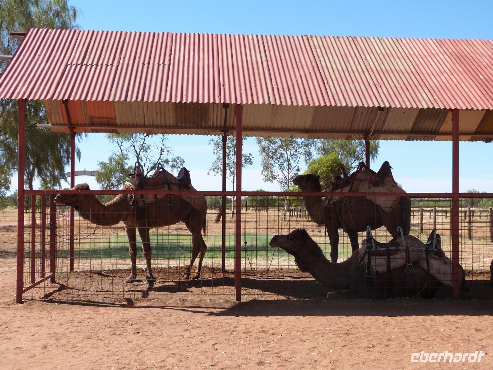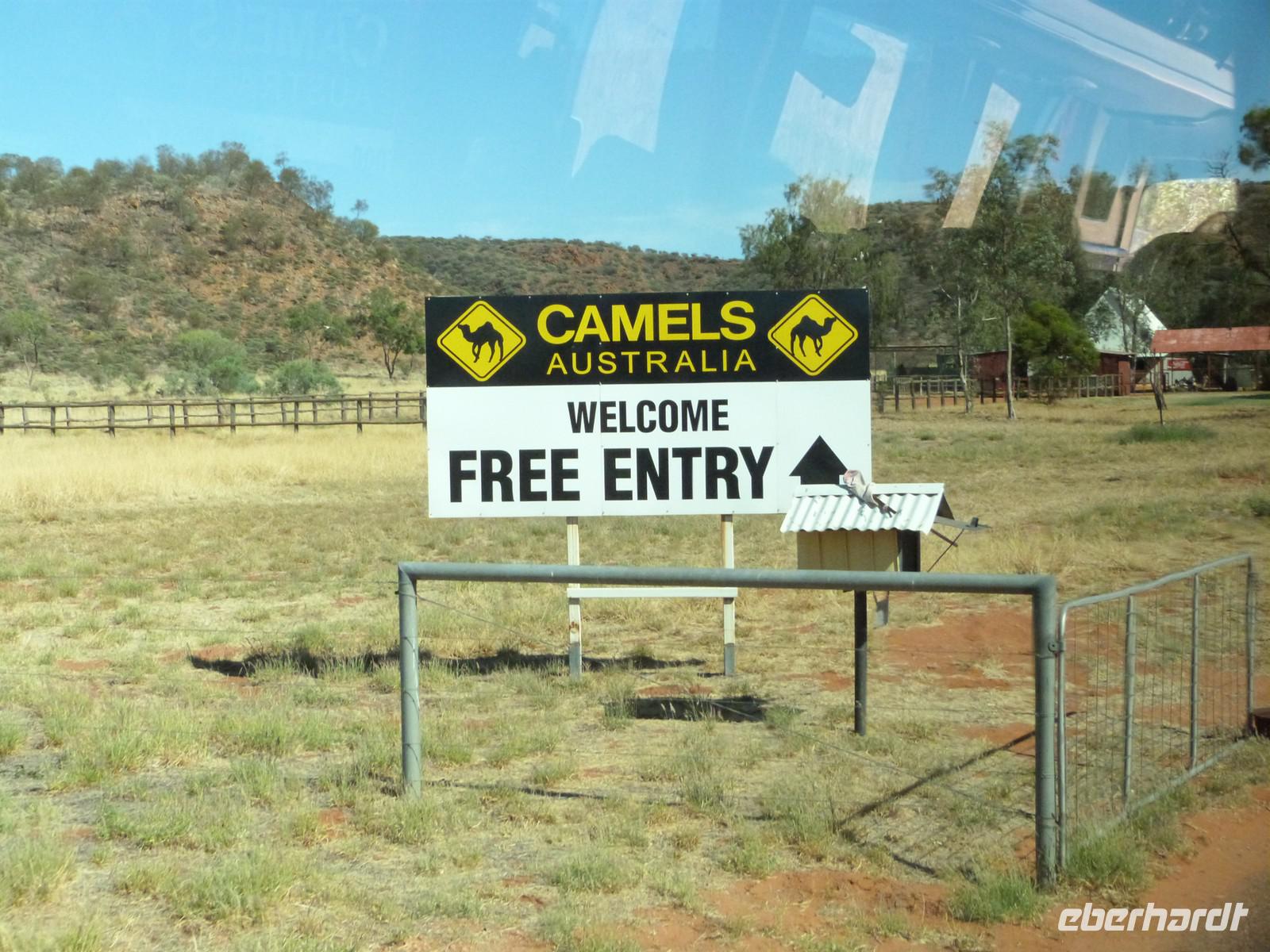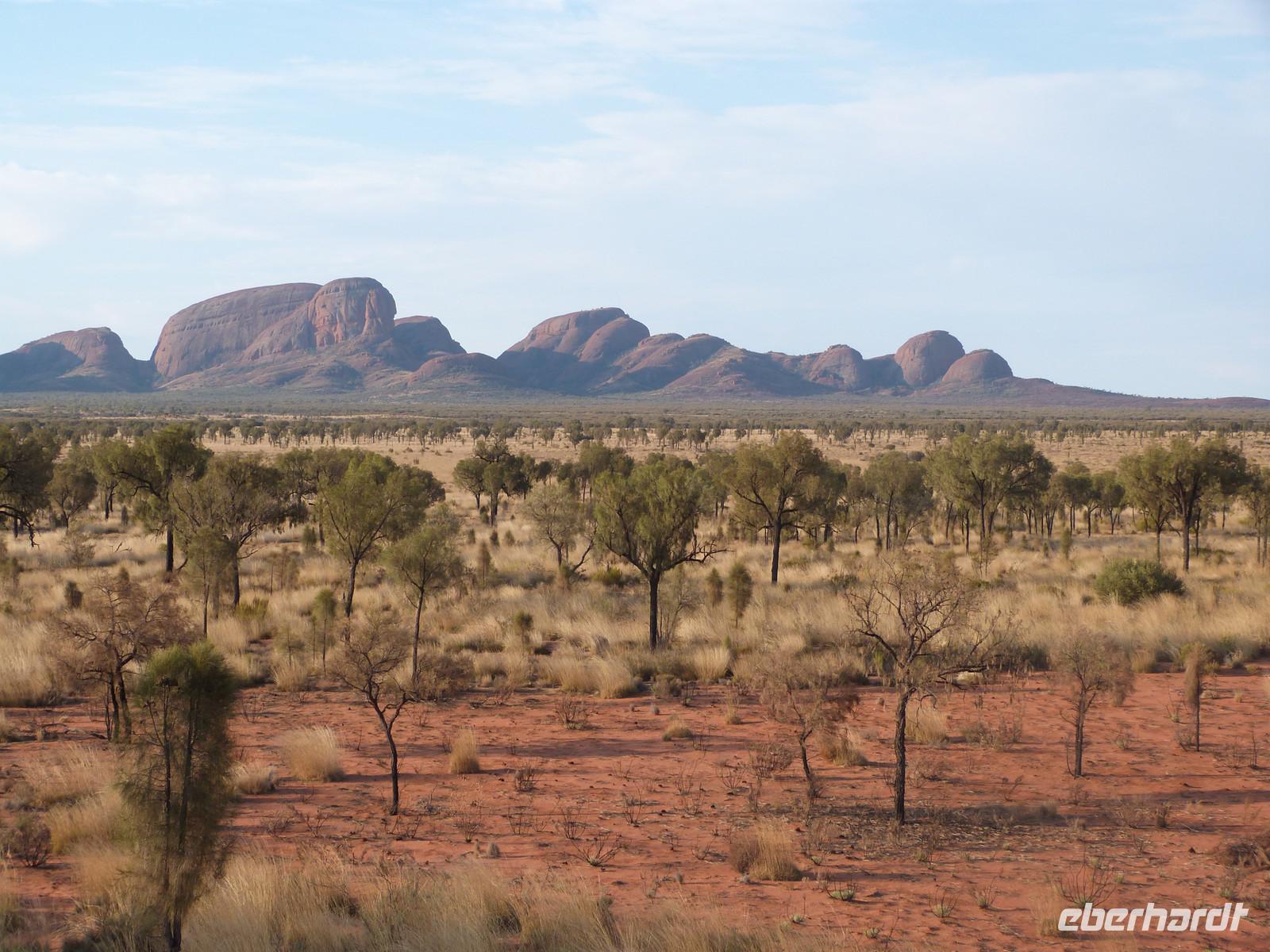 Nach einer ruhigen Nacht im Outback traten wir heute unsere Weiterfahrt in das Zentrum des roten Kontinents an. Alice Springs ist zwar der geografische Mittelpunkt Australiens aber wir wollten ja noch die heiligen Berge der Aborigines sehen. Es erwarteten uns an dem Tag der „Uluru" (Ayers Rock) und die „Kata Tjuta´s" (die Olgas). Wir fuhren am Morgen in Alice Springs los und es ging auf dem Stuart Highway südlich. Unterwegs stoppten wir an einer Kamelfarm und sahen einen Dingo. Danach ging unsere Abenteuerreise weiter und um uns herum die herrliche tiefrote Erde. Die Landschaft glich einer Wüste und Steppe, nur harte Gräser und besondere Tiere konnten hier überleben. Zu den Tieren zählen Kängurus, Kamele, verschiedene Schlangenarten, Echsen, Spinnen und Termiten.