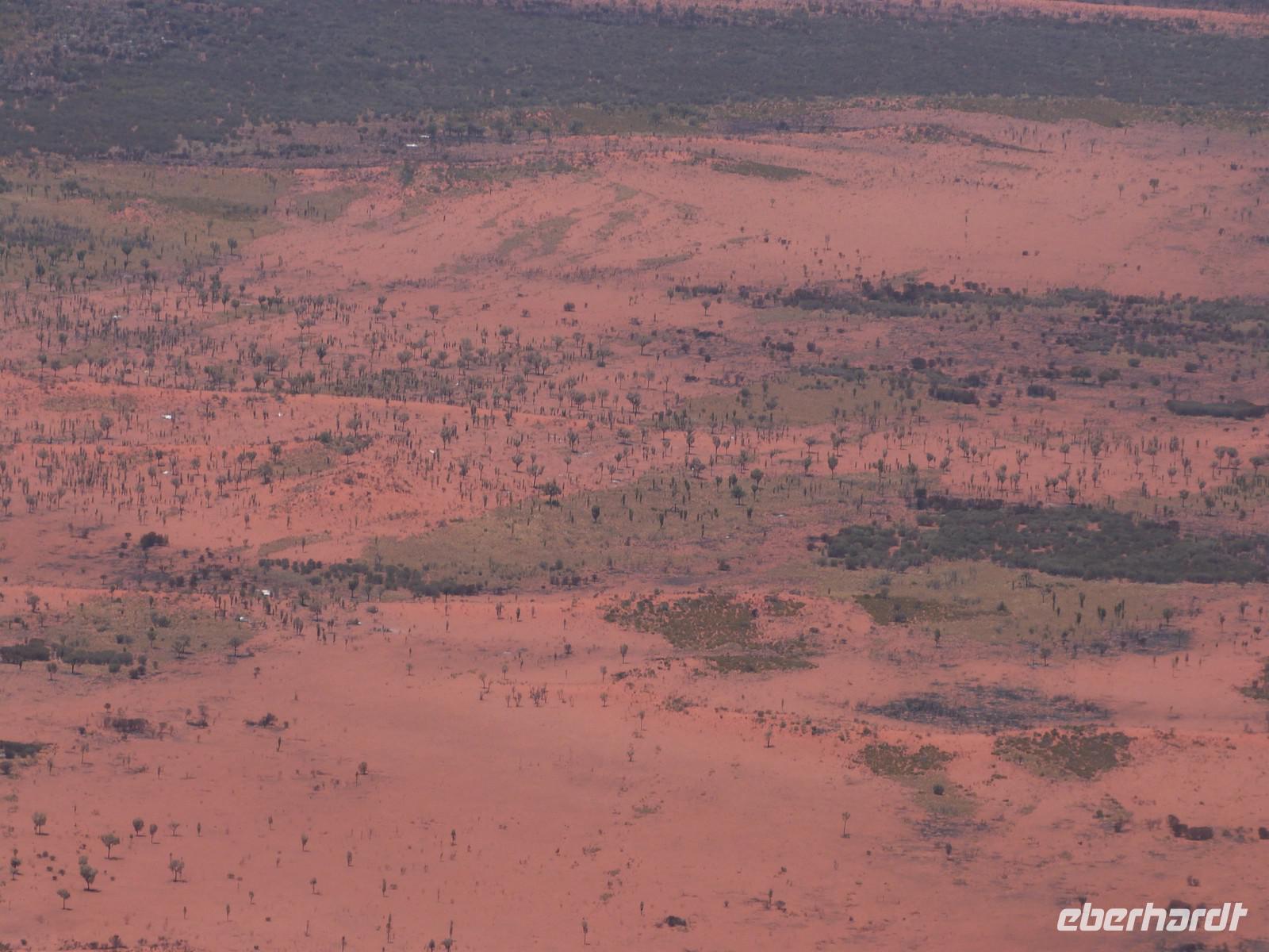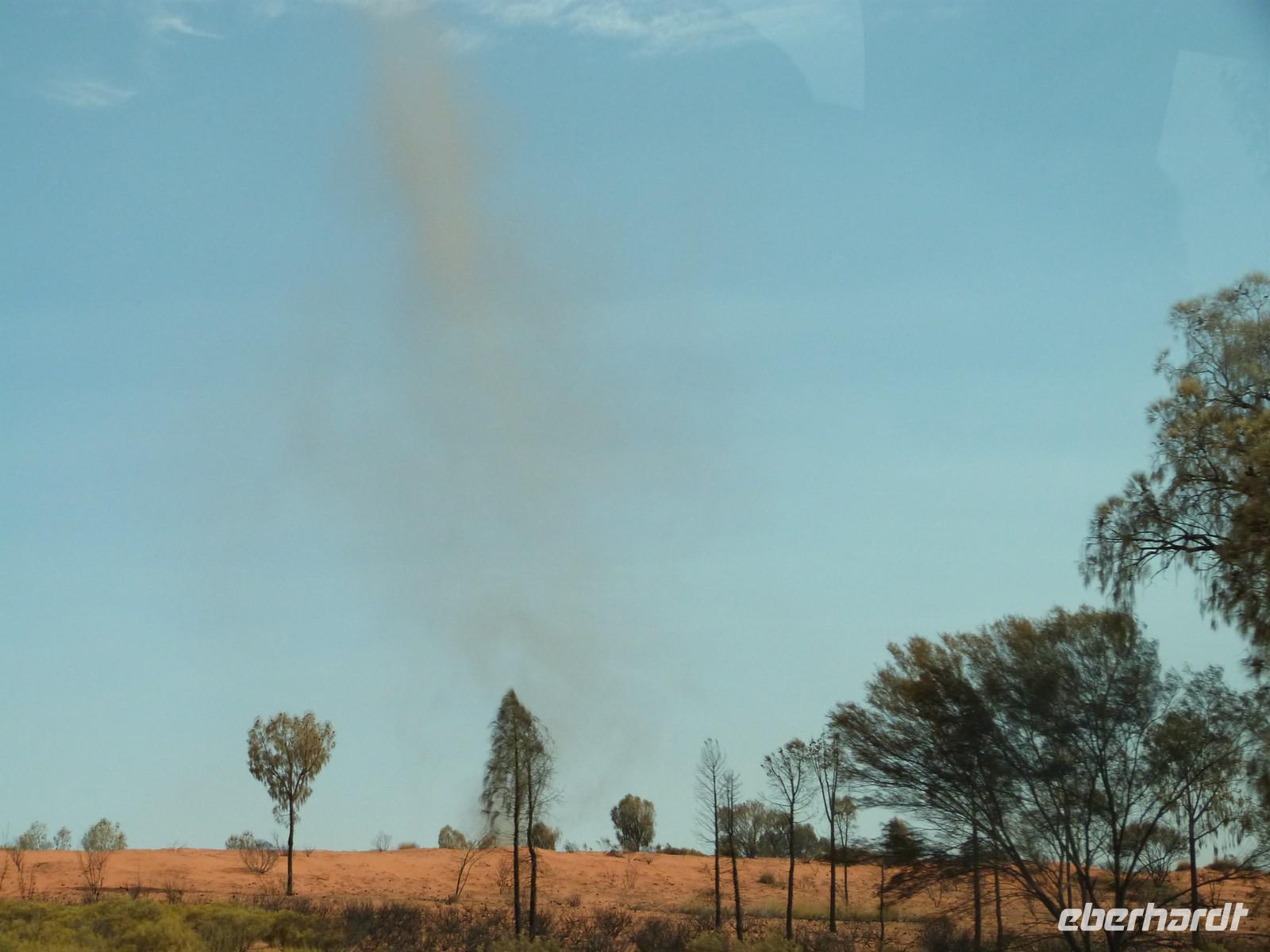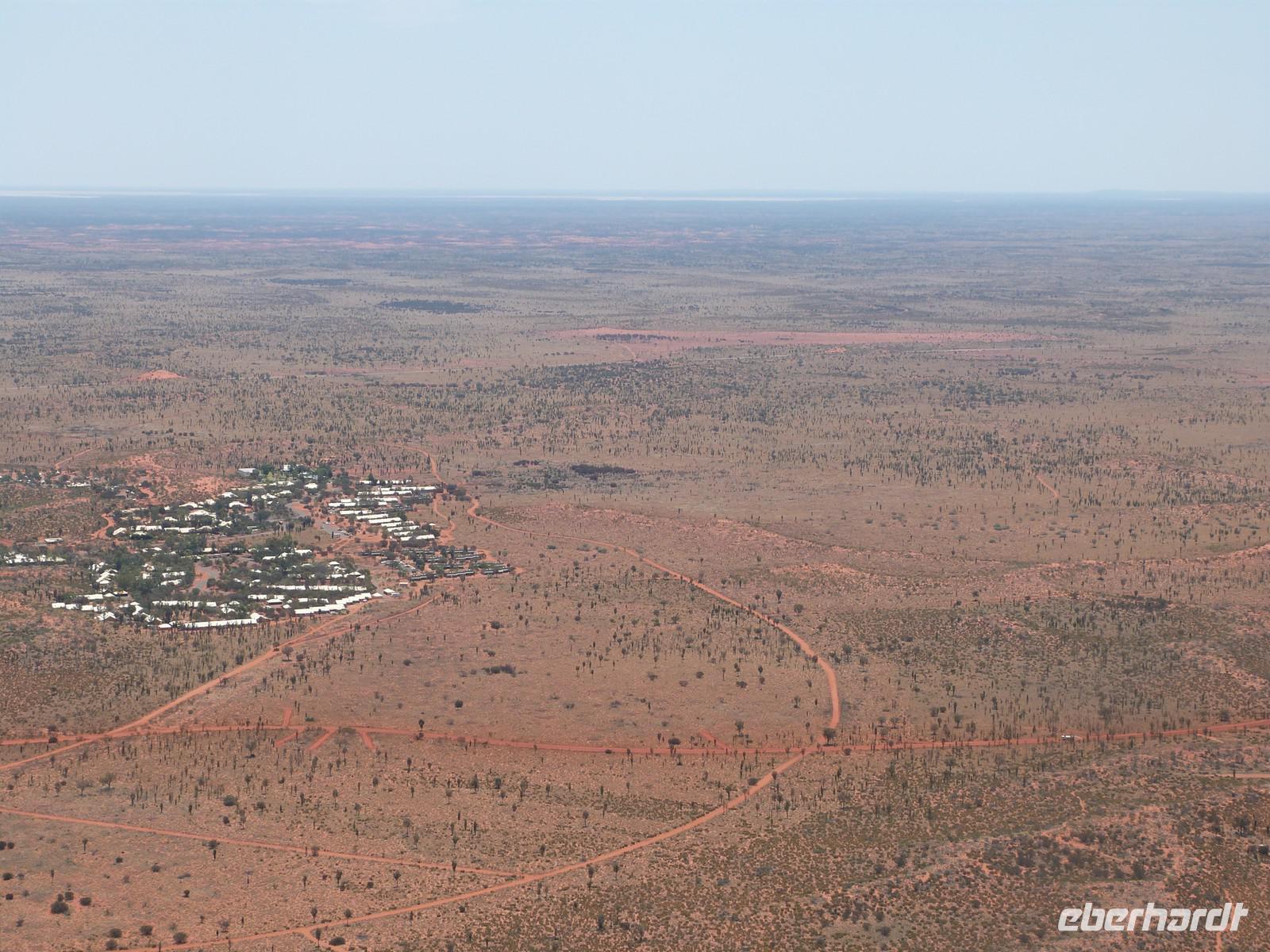 Nach einer ruhigen Nacht im Outback traten wir heute unsere Weiterfahrt in das Zentrum des roten Kontinents an. Alice Springs ist zwar der geografische Mittelpunkt Australiens aber wir wollten ja noch die heiligen Berge der Aborigines sehen. Es erwarteten uns an dem Tag der „Uluru" (Ayers Rock) und die „Kata Tjuta´s" (die Olgas). Wir fuhren am Morgen in Alice Springs los und es ging auf dem Stuart Highway südlich. Unterwegs stoppten wir an einer Kamelfarm und sahen einen Dingo. Danach ging unsere Abenteuerreise weiter und um uns herum die herrliche tiefrote Erde. Die Landschaft glich einer Wüste und Steppe, nur harte Gräser und besondere Tiere konnten hier überleben. Zu den Tieren zählen Kängurus, Kamele, verschiedene Schlangenarten, Echsen, Spinnen und Termiten.